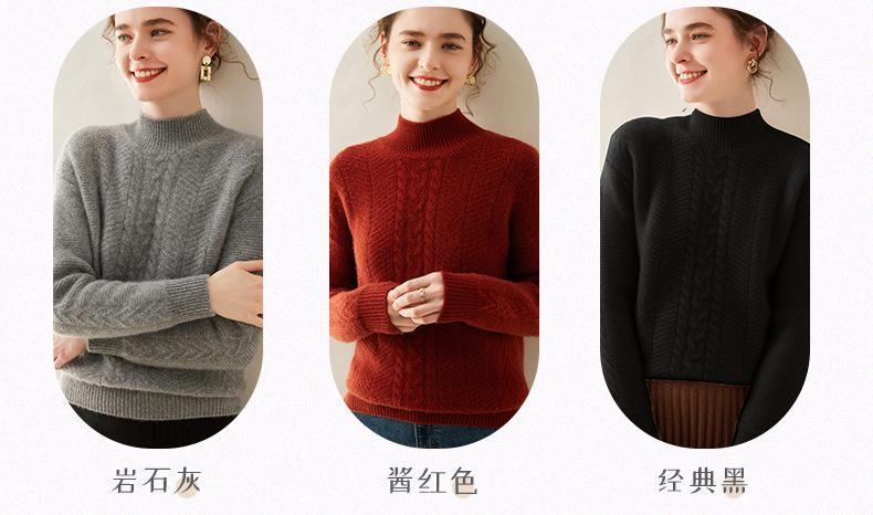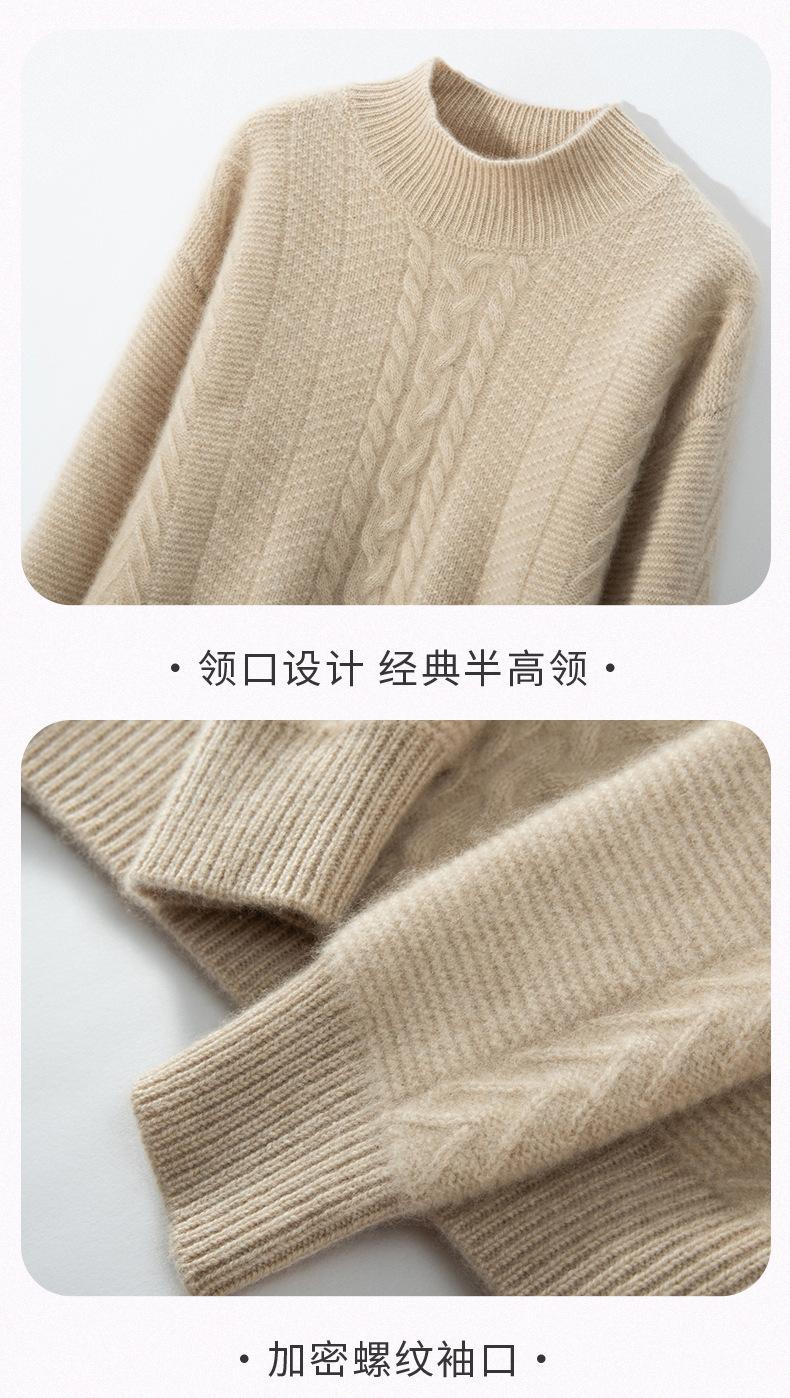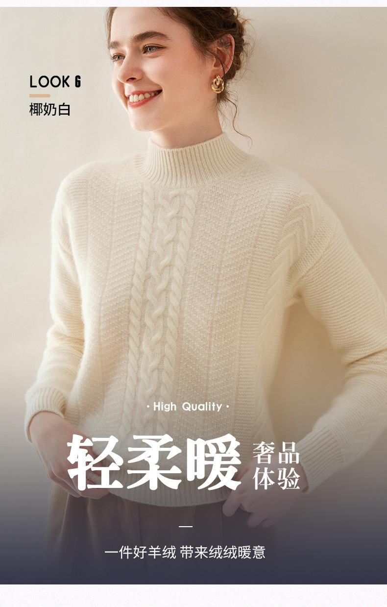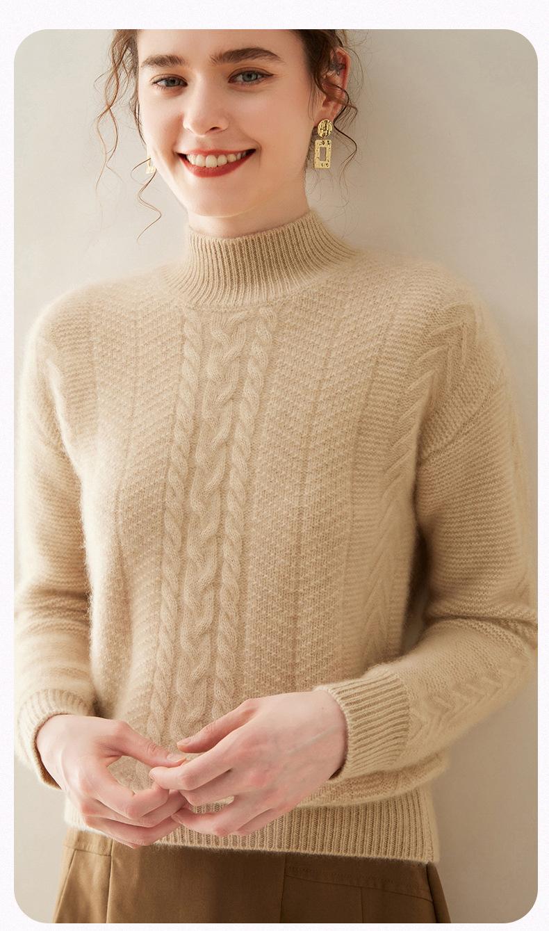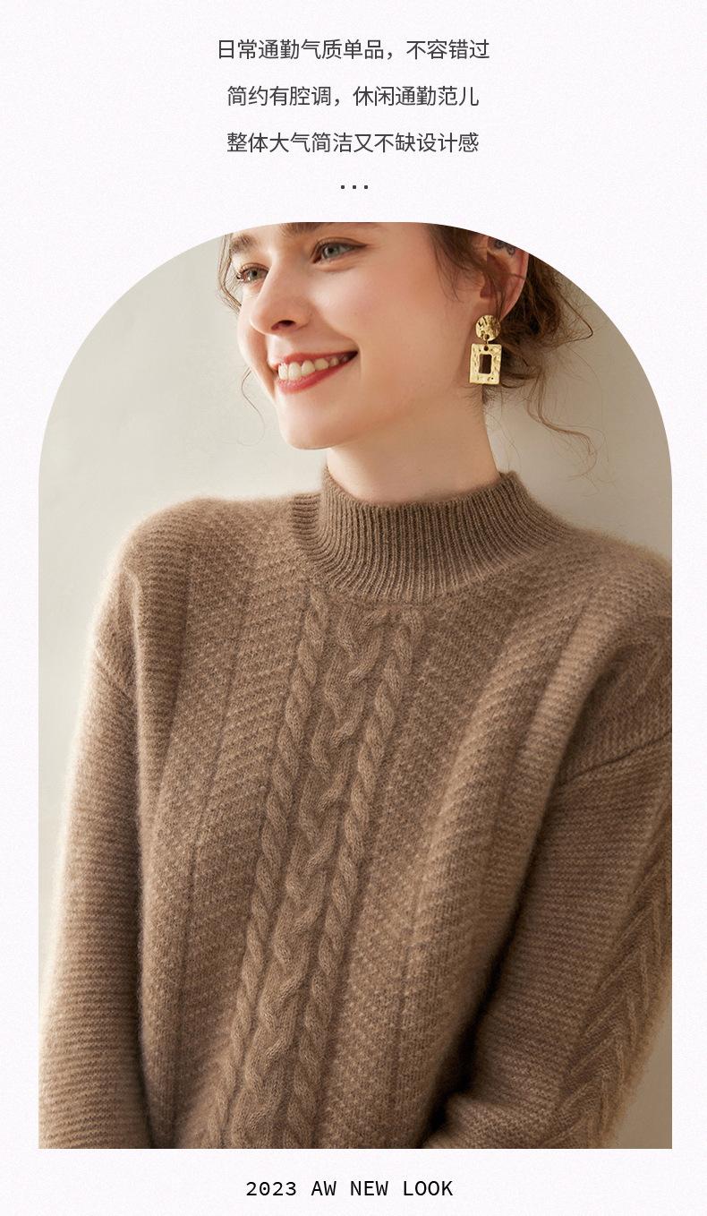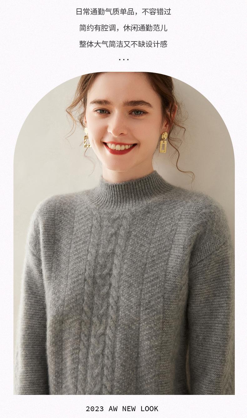 Suéter de Cachemira Grueso para Mujer 24 Otoño e Invierno Nuevo Color Puro Trenzado Cuello Alto Medio Jersey Estilo Holgazán Suéter Tejido Versátil