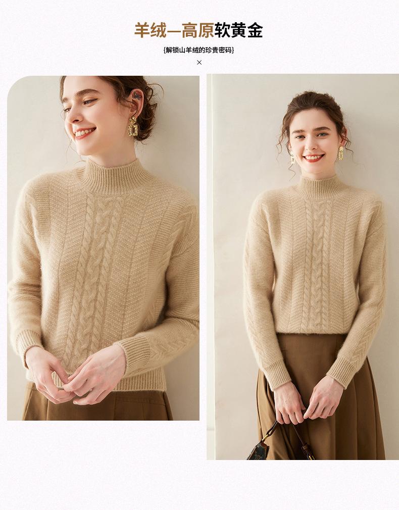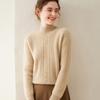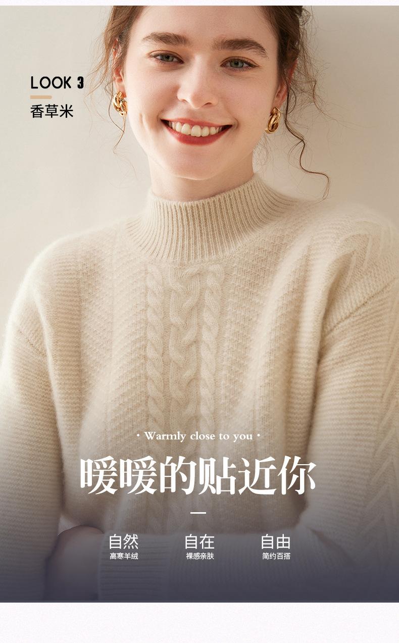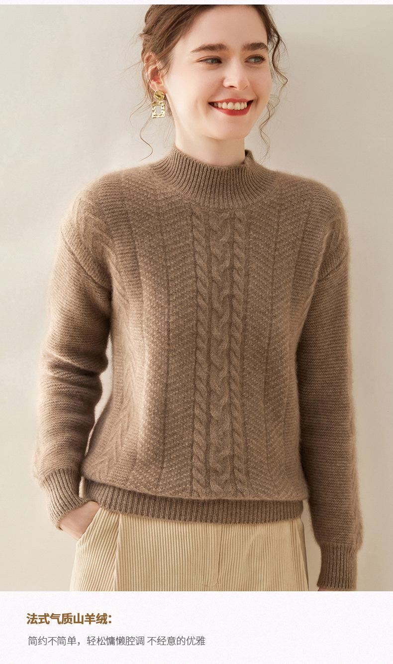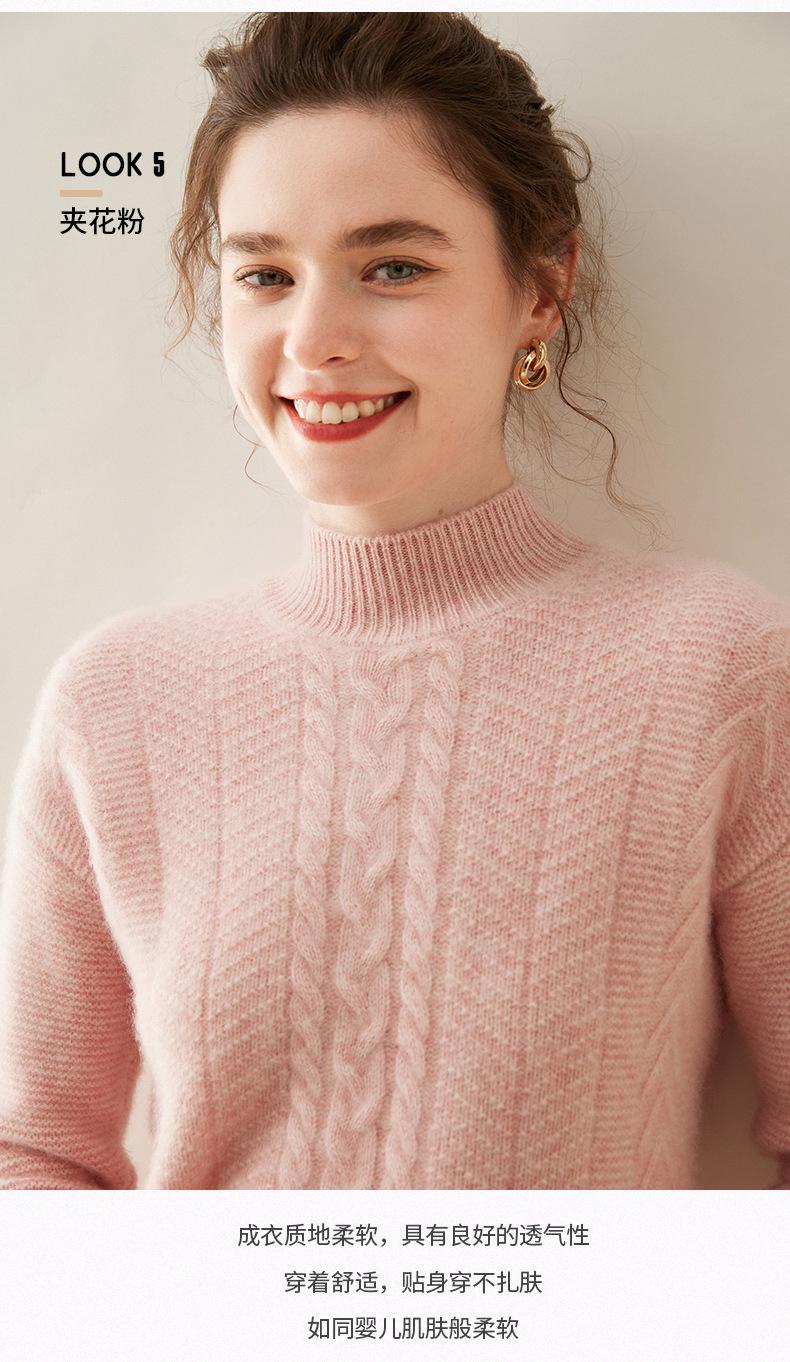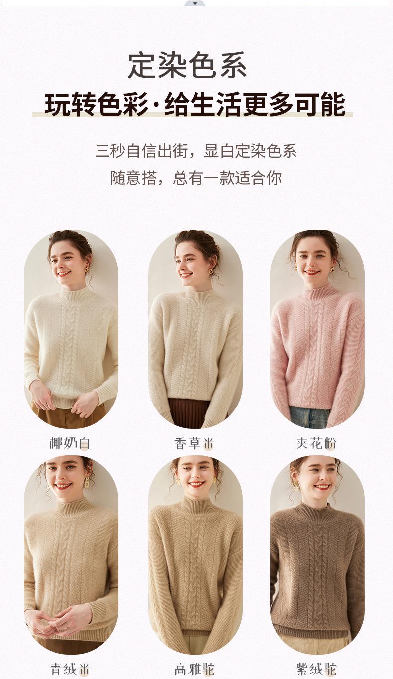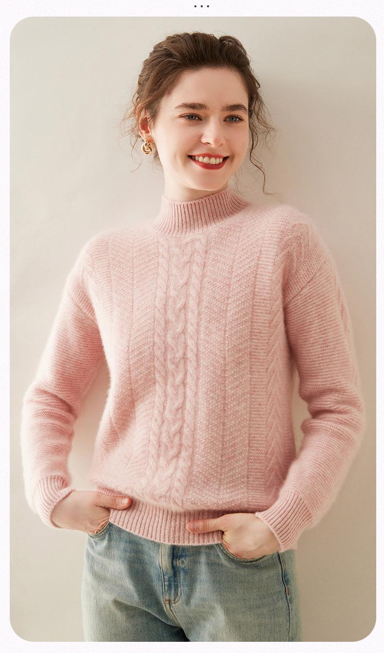 Suéter de Cachemira Grueso para Mujer 24 Otoño e Invierno Nuevo Color Puro Trenzado Cuello Alto Medio Jersey Estilo Holgazán Suéter Tejido Versátil