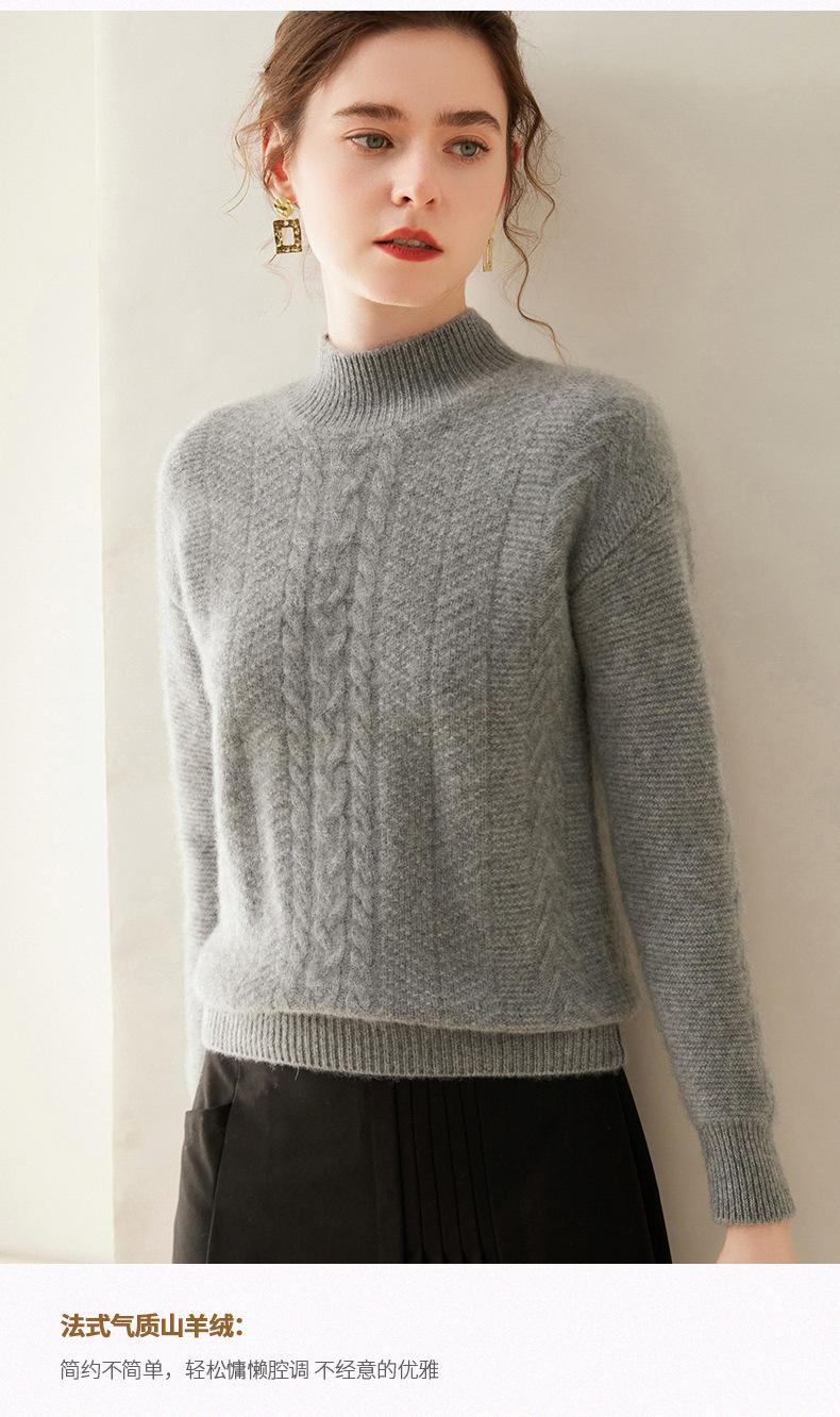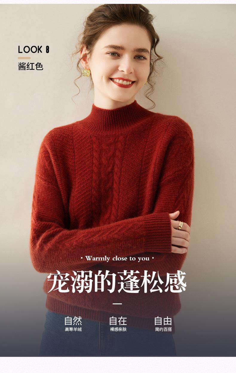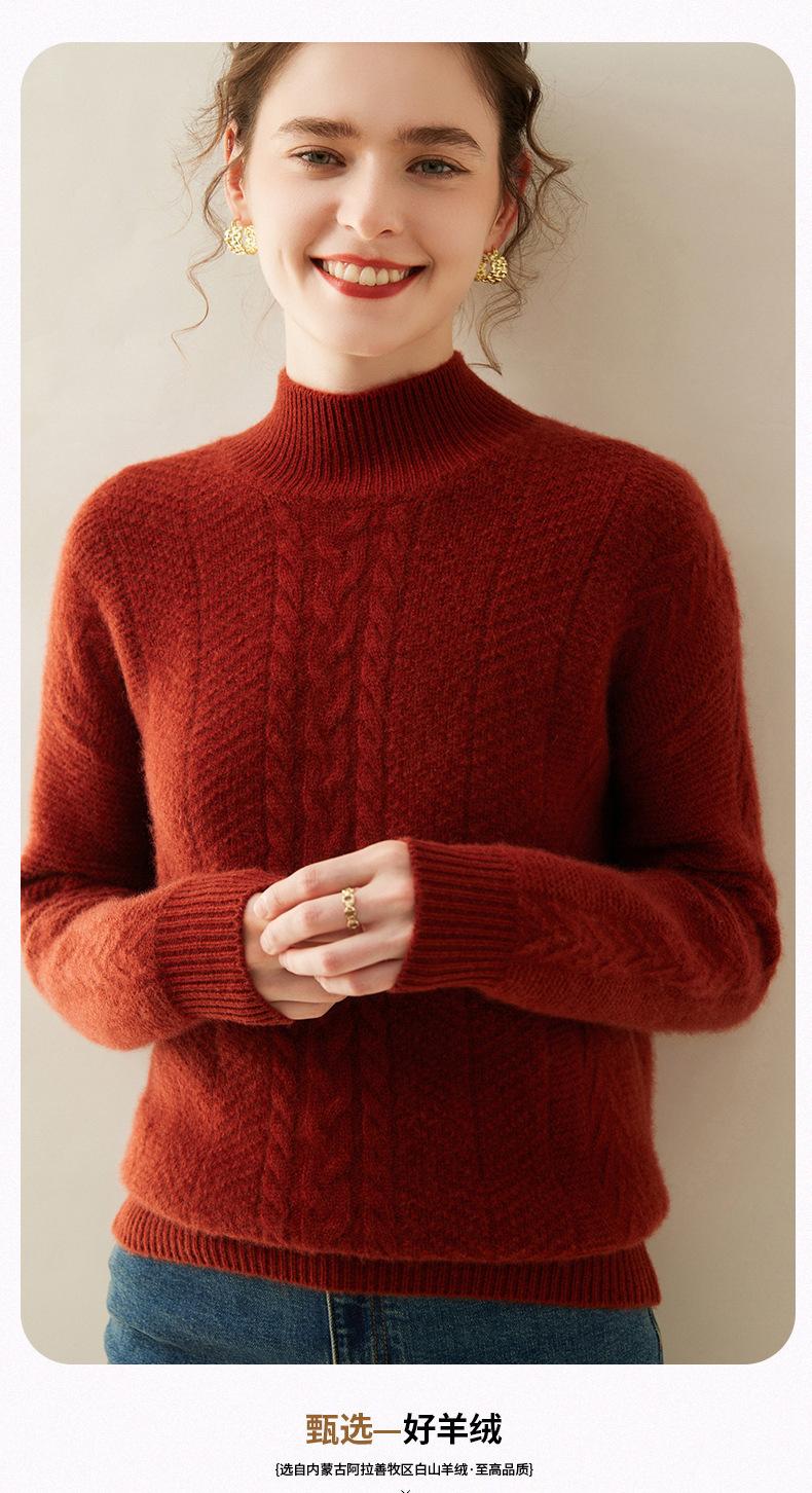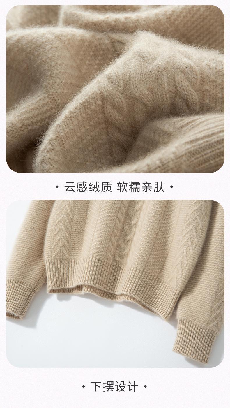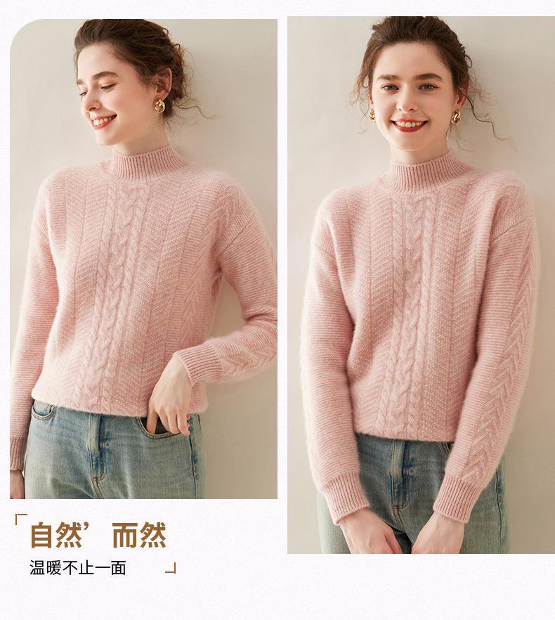 Suéter de Cachemira Grueso para Mujer 24 Otoño e Invierno Nuevo Color Puro Trenzado Cuello Alto Medio Jersey Estilo Holgazán Suéter Tejido Versátil
