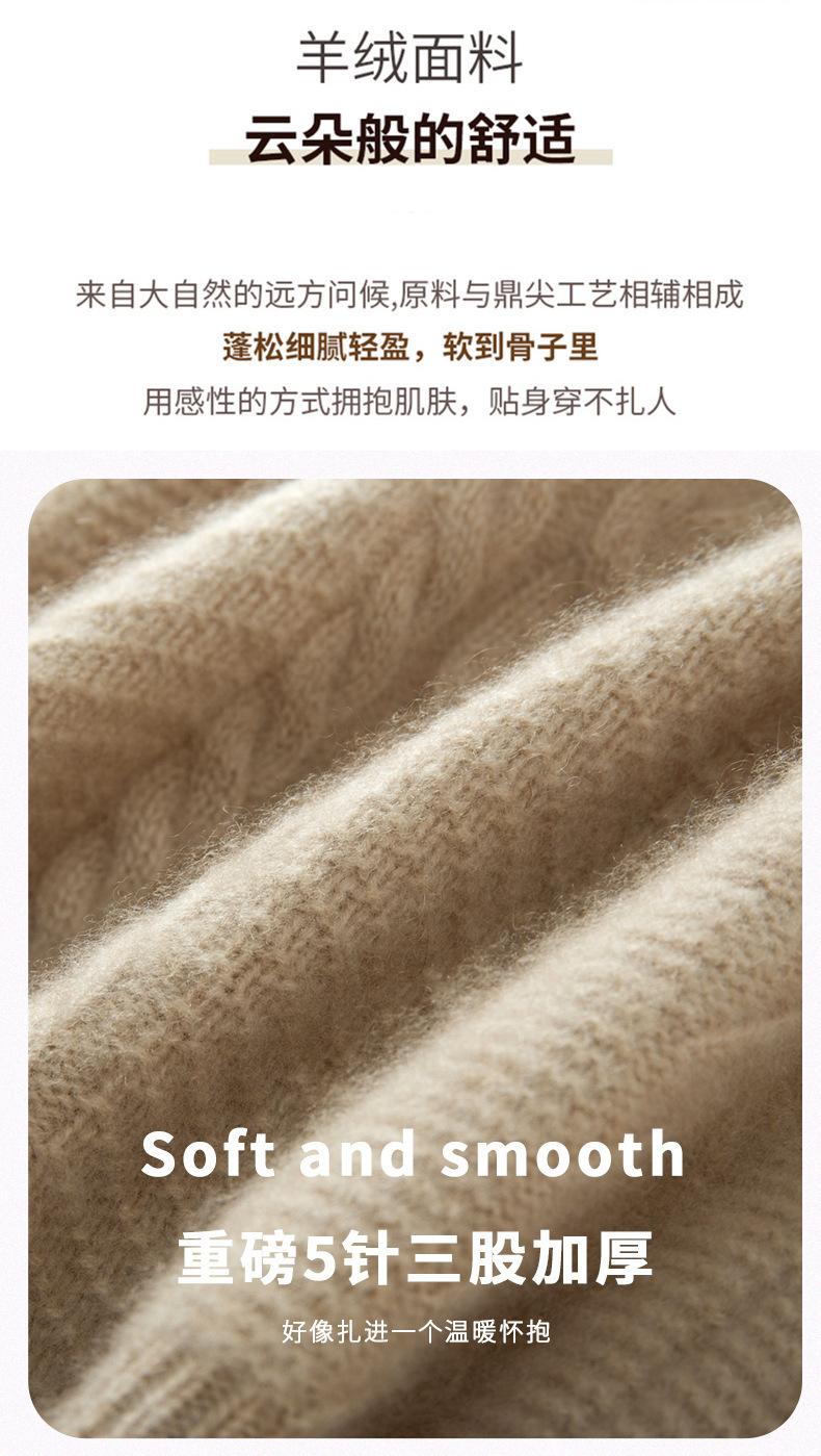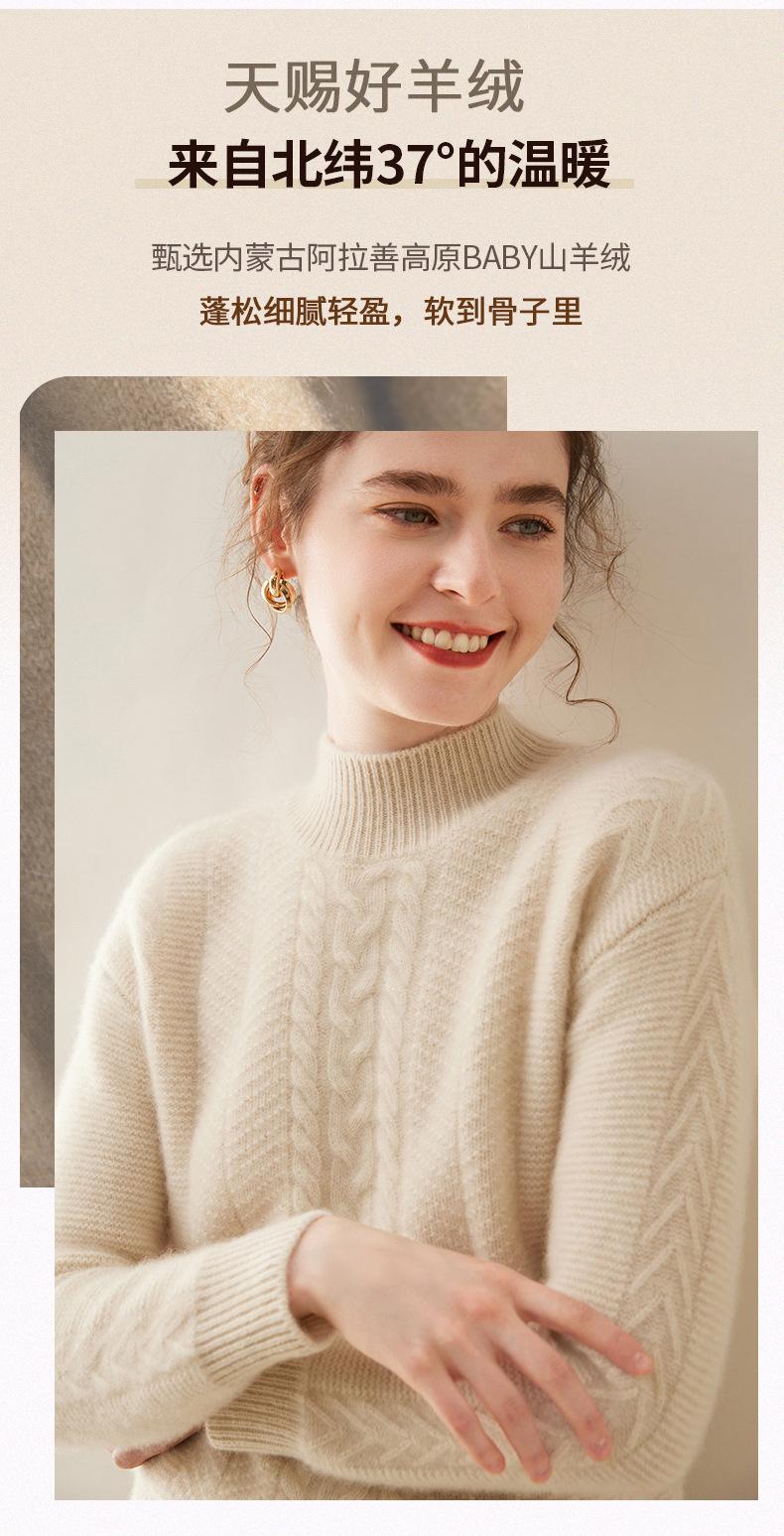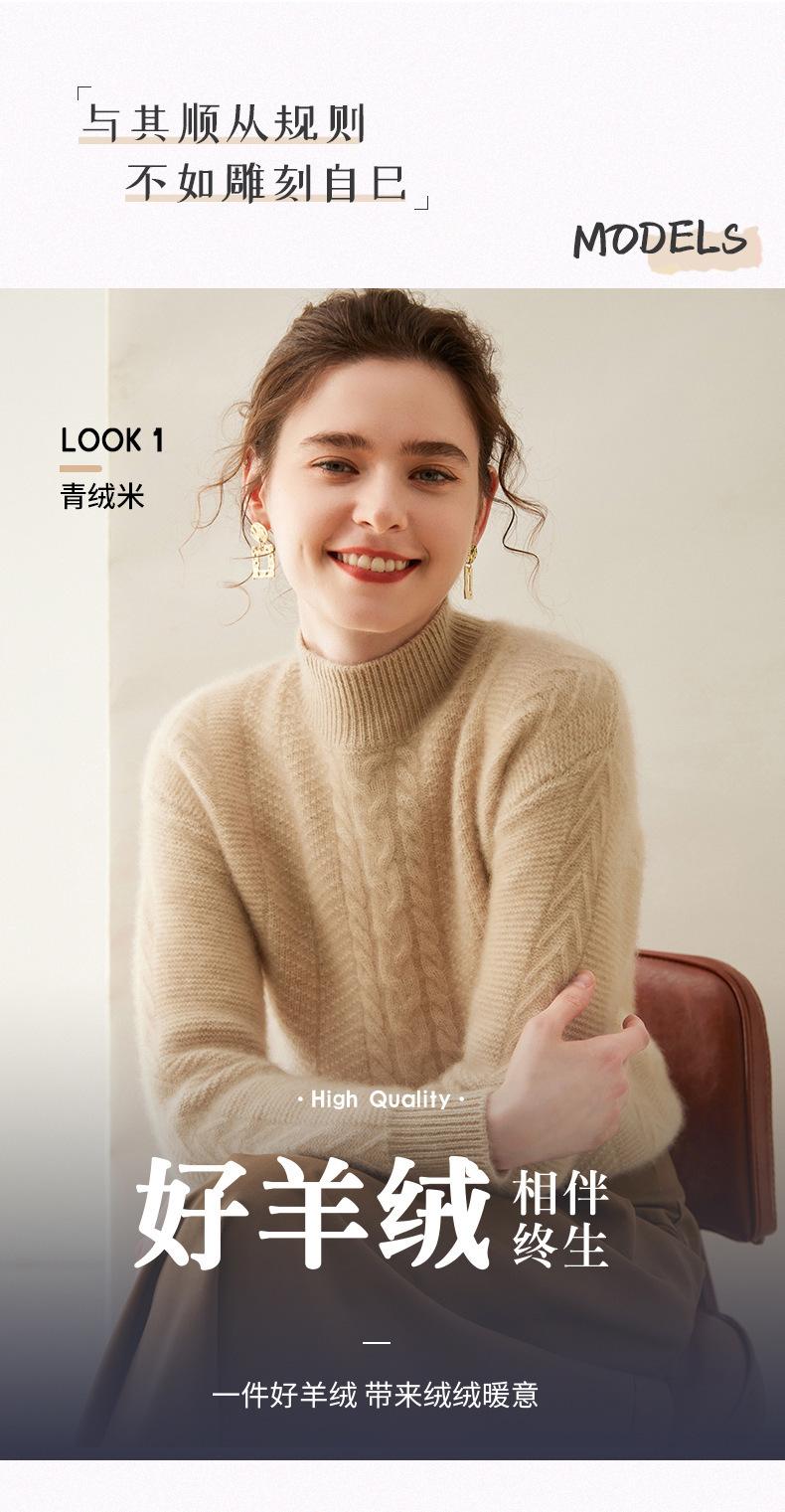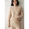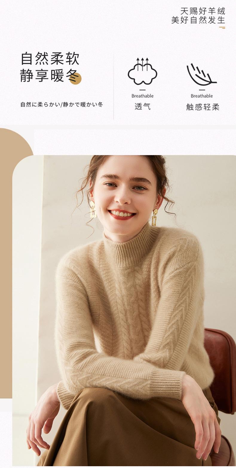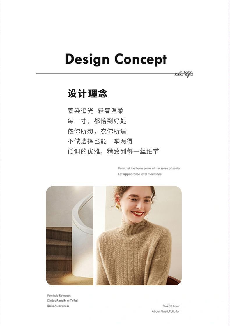 Suéter de Cachemira Grueso para Mujer 24 Otoño e Invierno Nuevo Color Puro Trenzado Cuello Alto Medio Jersey Estilo Holgazán Suéter Tejido Versátil
