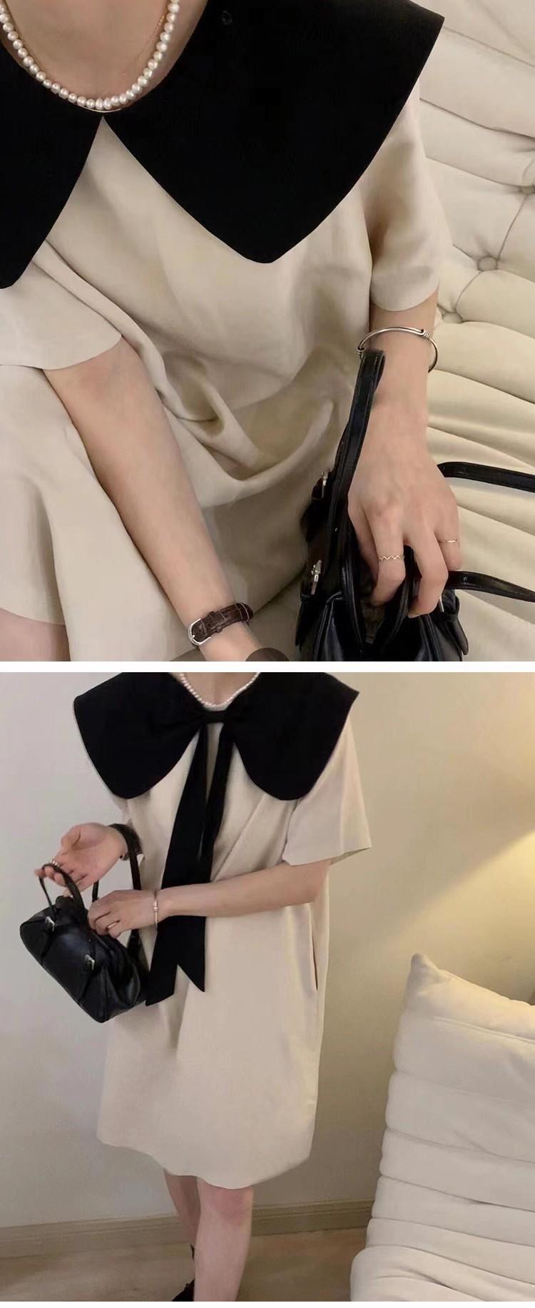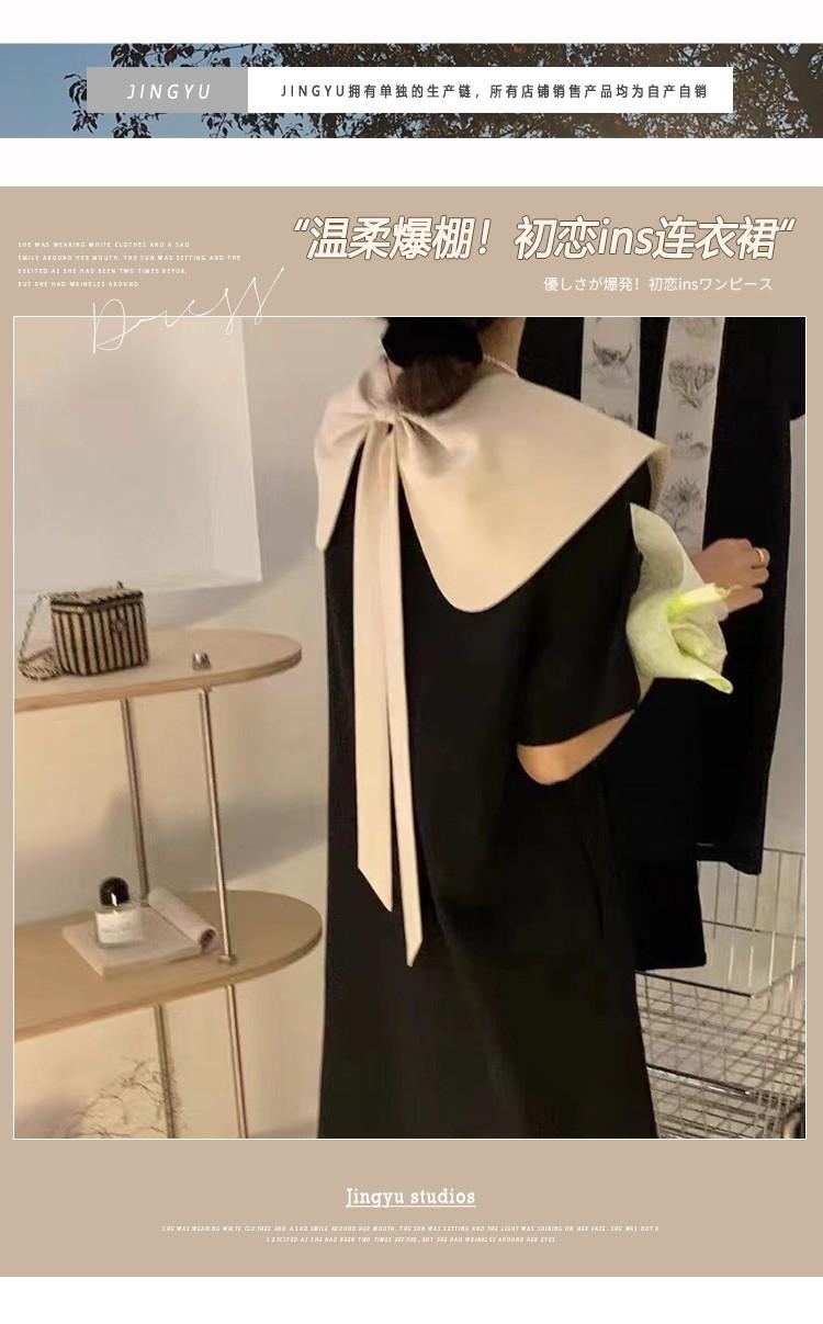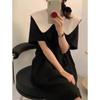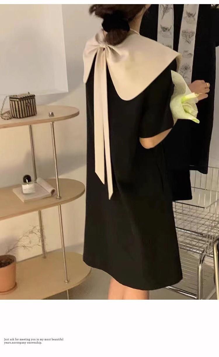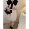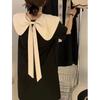 Entrega Directa de Fábrica Verano 2025 Vestido con Cuello de Muñeca Francesa que Reduce la Edad Dulce Lazo Elegante Línea A Vestidito Negro