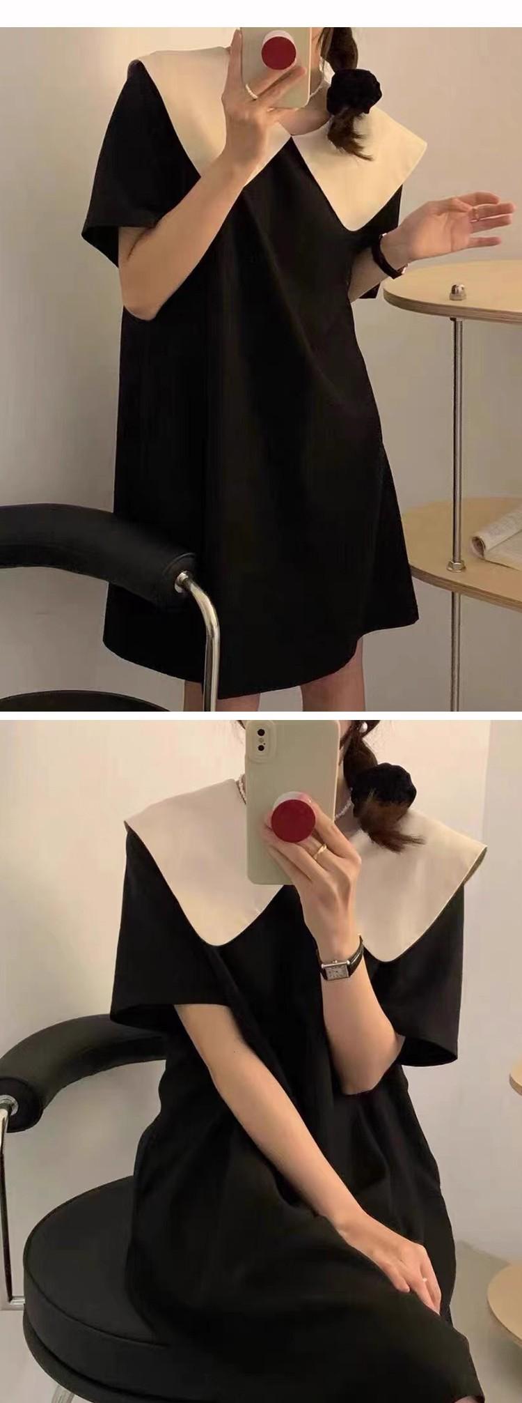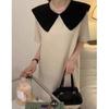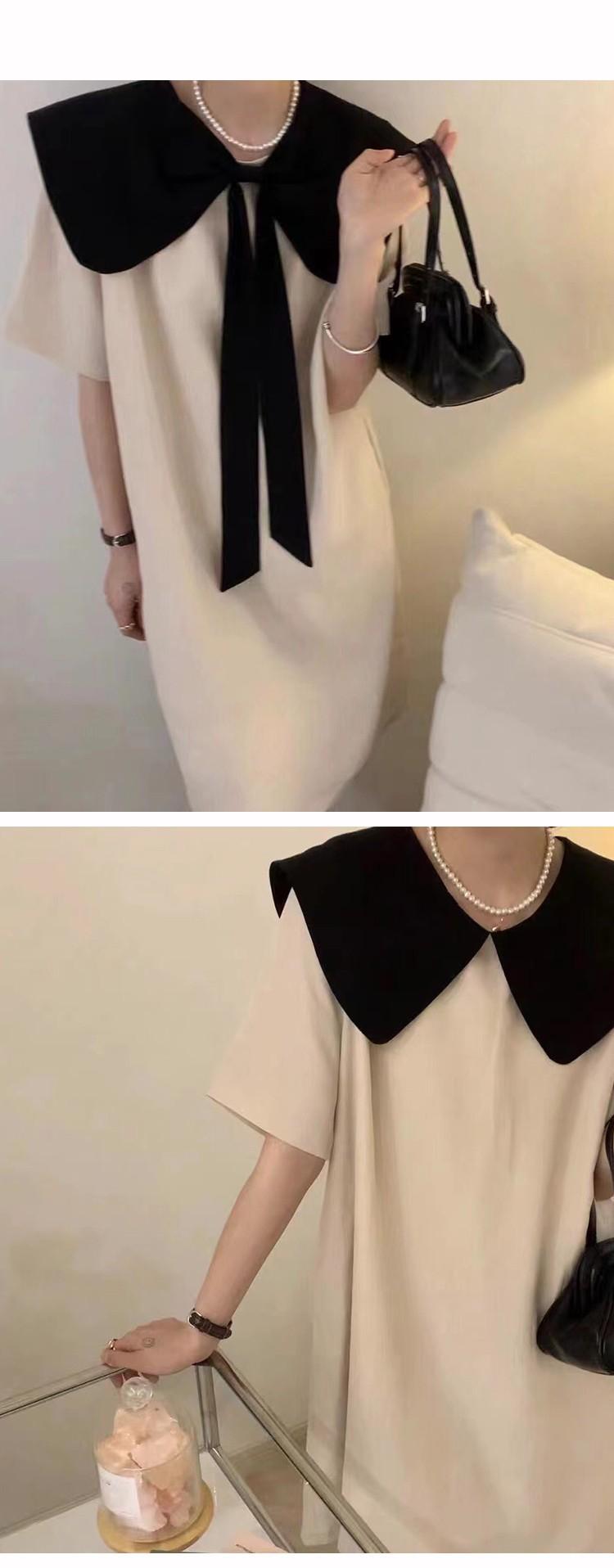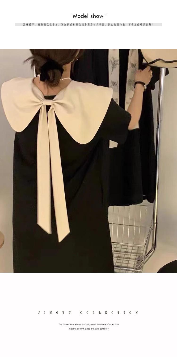 Entrega Directa de Fábrica Verano 2025 Vestido con Cuello de Muñeca Francesa que Reduce la Edad Dulce Lazo Elegante Línea A Vestidito Negro