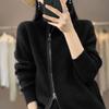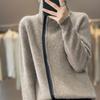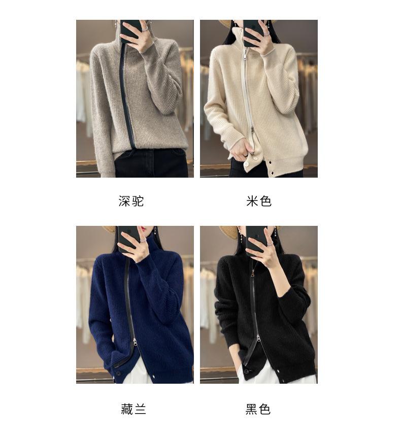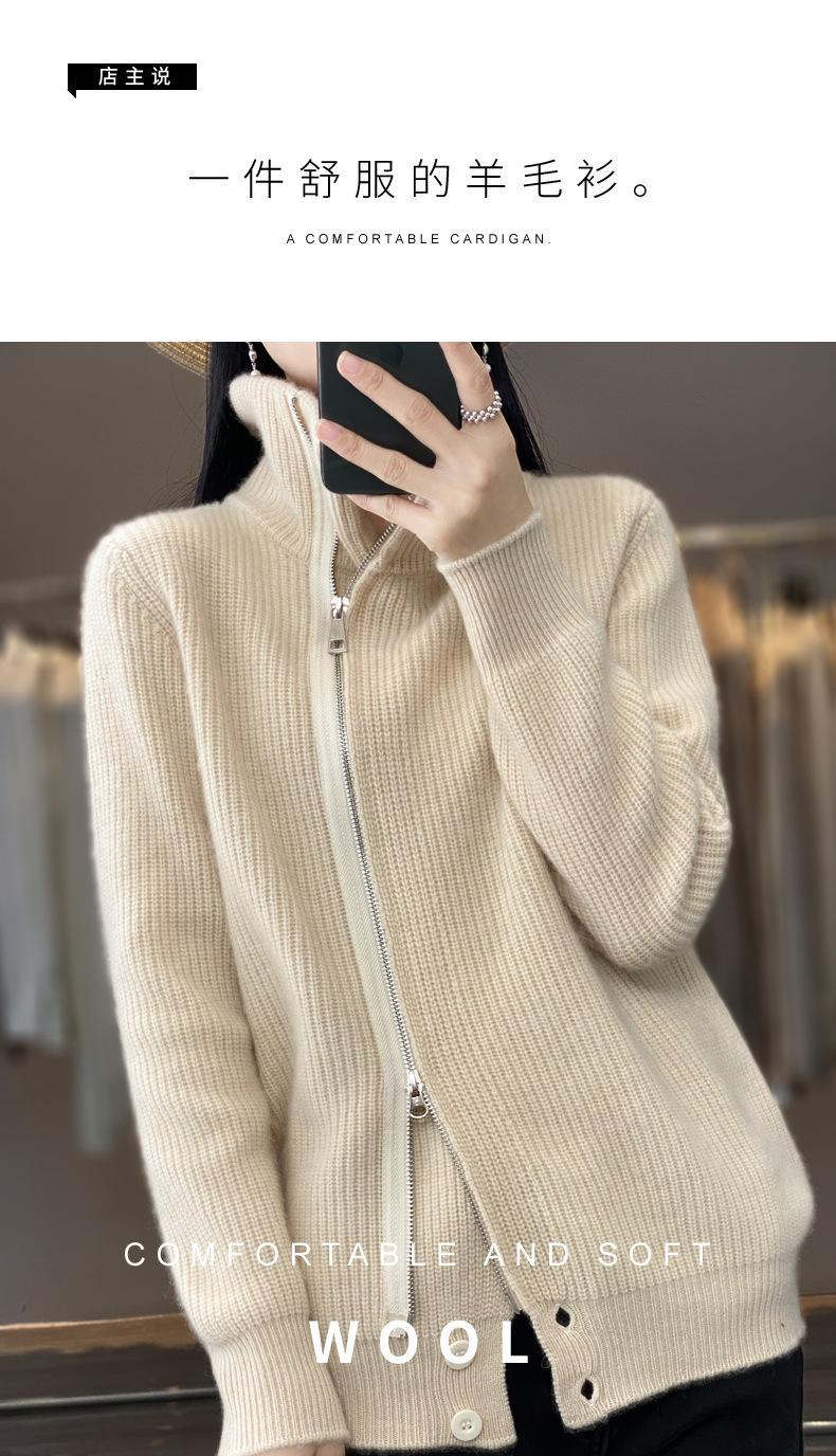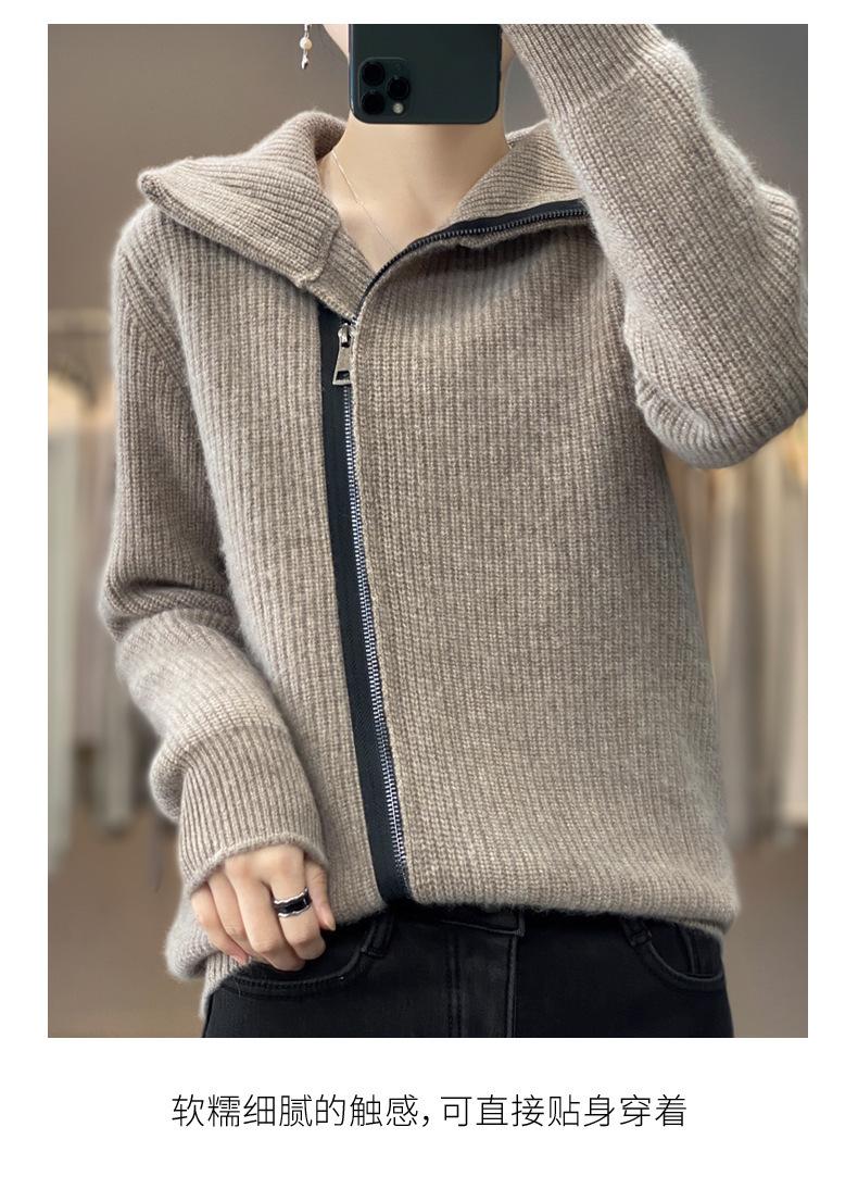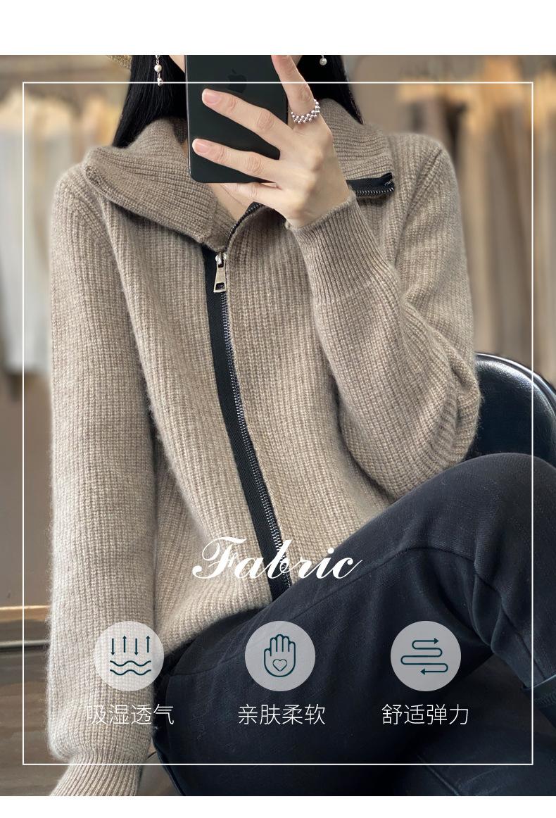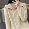 Otoño e Invierno 2025 Nuevo Cárdigan Suéter 100 Lana Pura para Mujer Suelto Slim Solapa Chaqueta con Cremallera Suéter de Moda Mujer