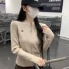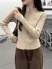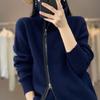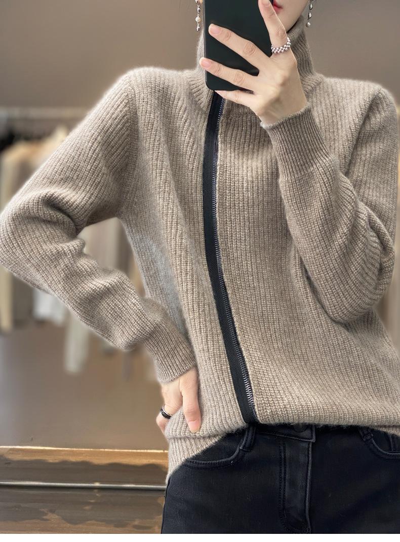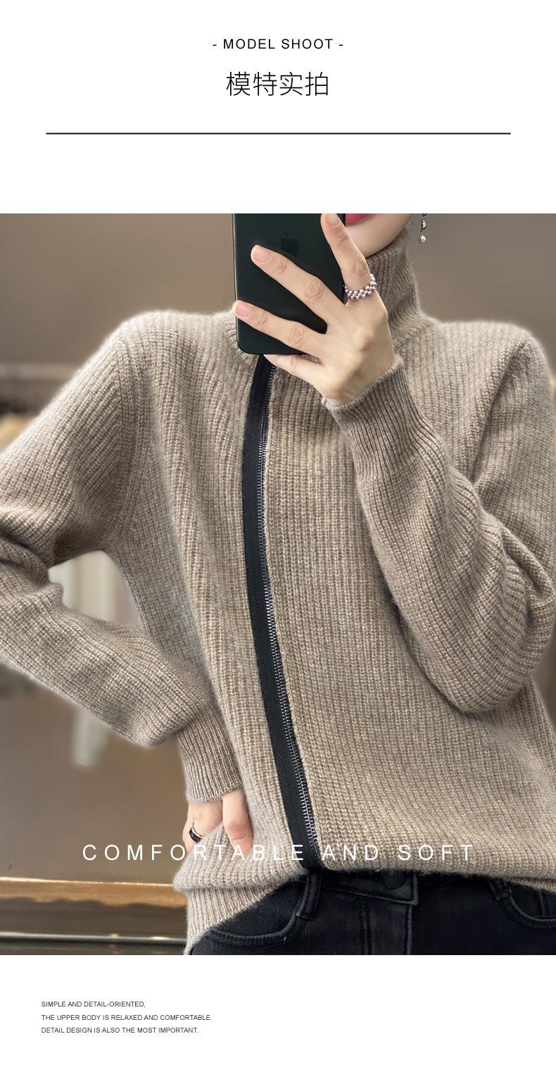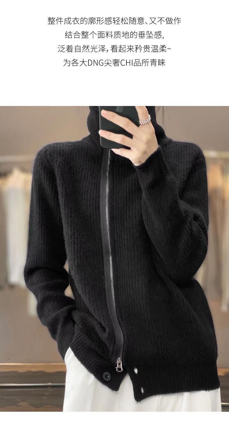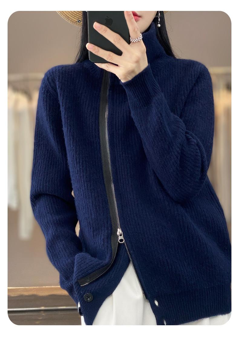 Otoño e Invierno 2025 Nuevo Cárdigan Suéter 100 Lana Pura para Mujer Suelto Slim Solapa Chaqueta con Cremallera Suéter de Moda Mujer