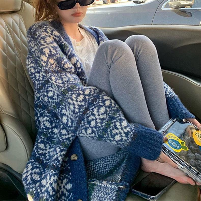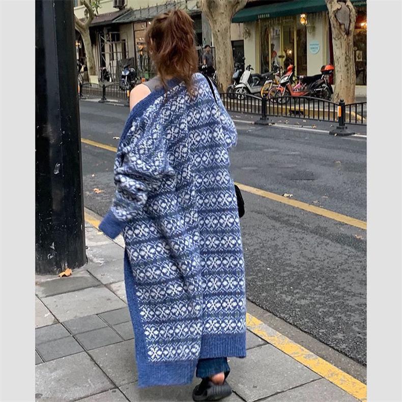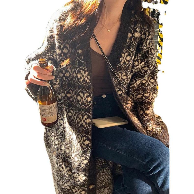 2025 Otoño e Invierno Nuevo Estilo Chic y a la Moda Estilo Étnico Suéter Largo Cárdigan Tejido Holgado Perezoso Chaqueta para Mujer
