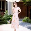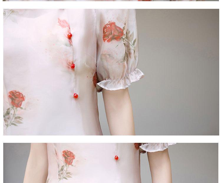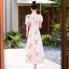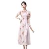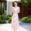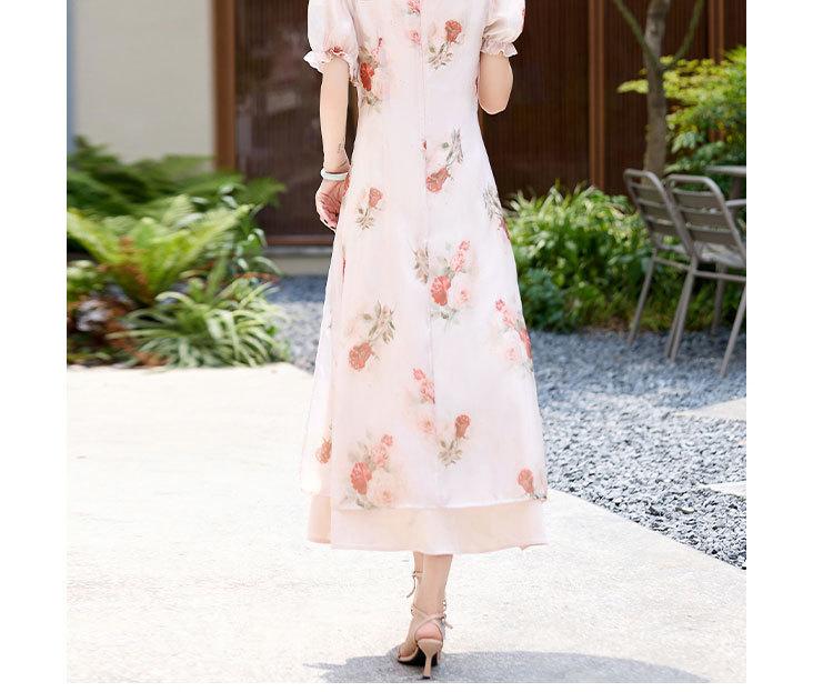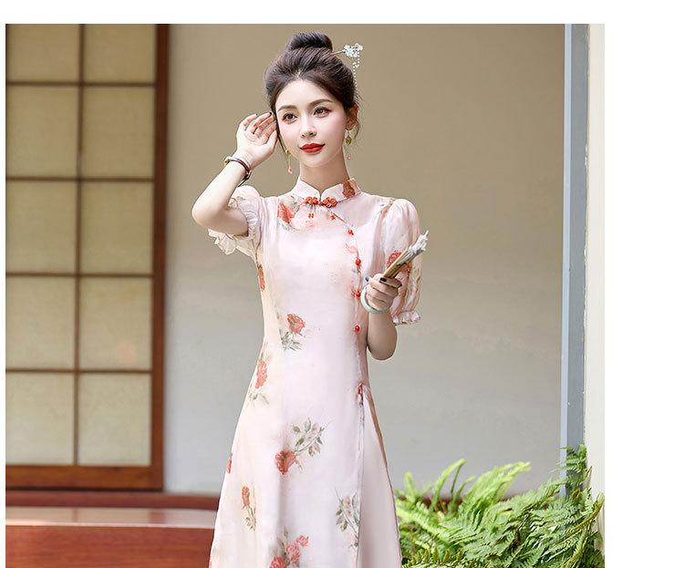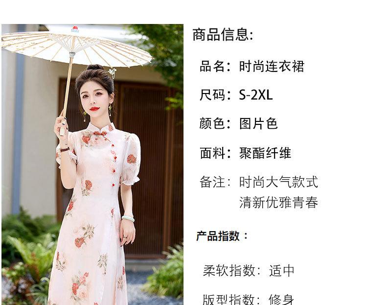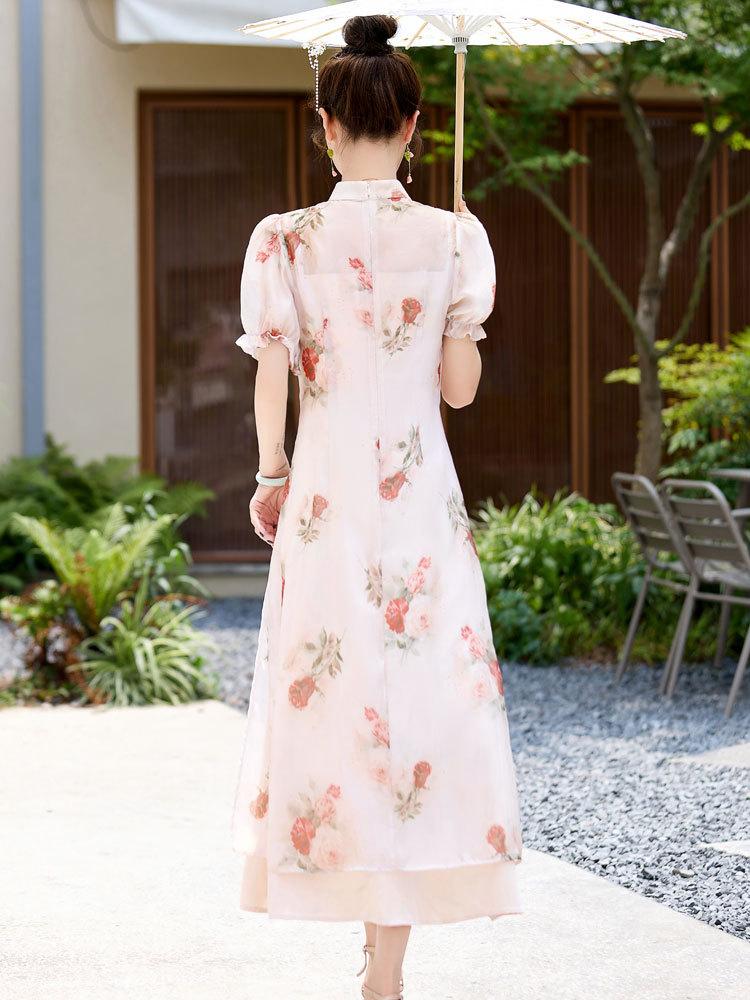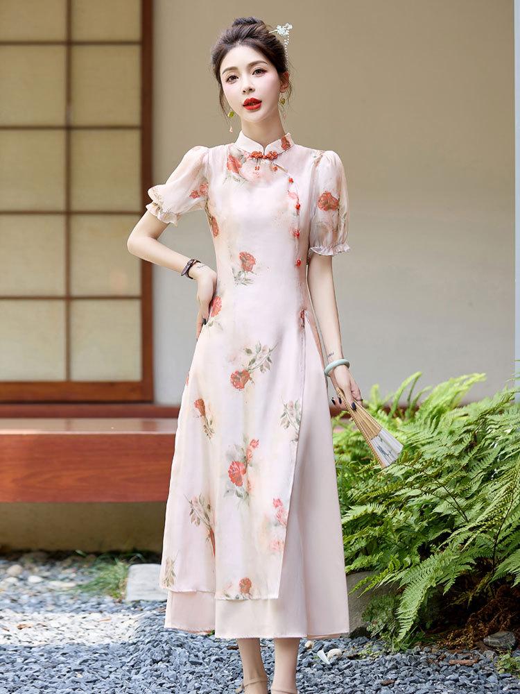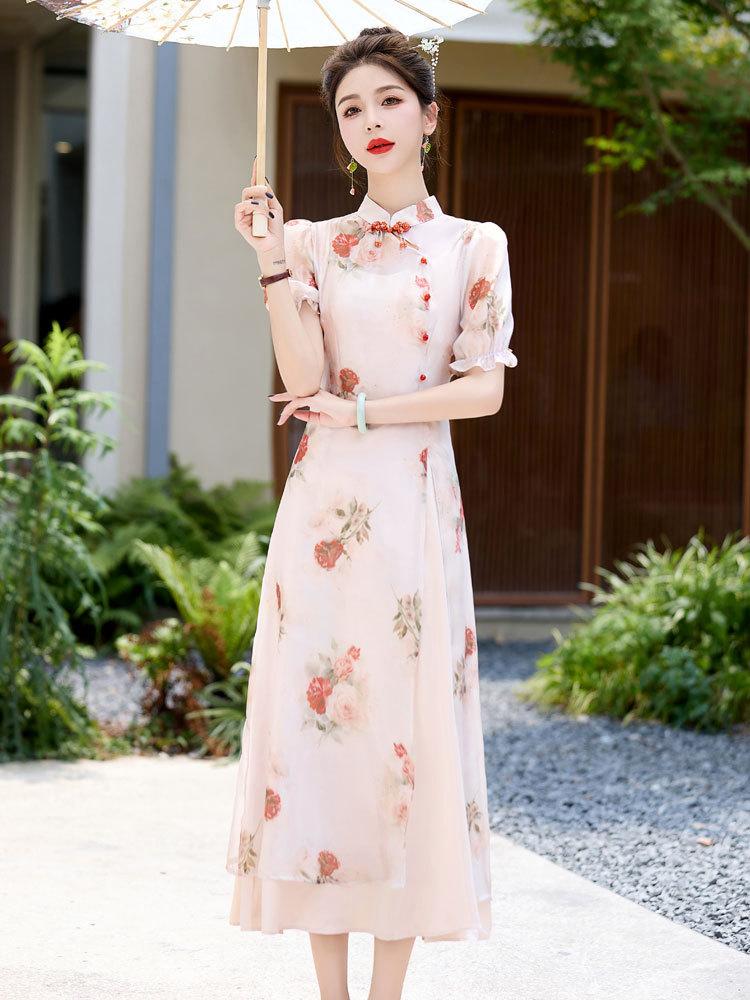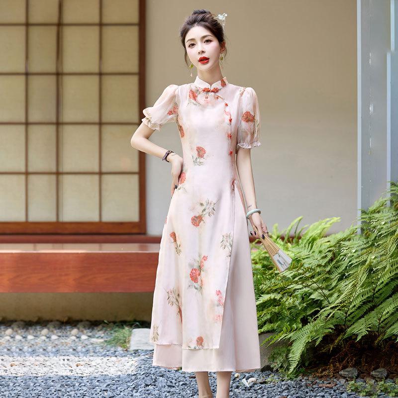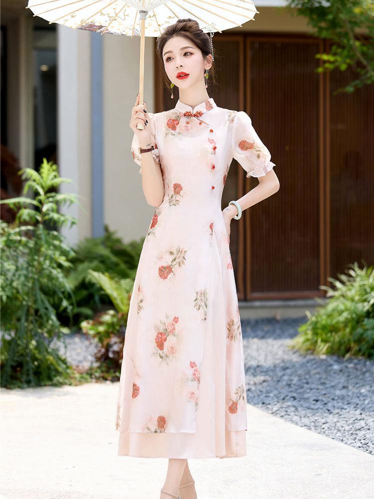 Nuevo vestido cheongsam de manga corta con cuello vertical estampado estilo chino, verano 2024, elegante, ajustado, estilo nacional, largo.