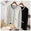 Suéter de Cuello Alto Estilo Coreano Relajado para Mujer Cárdigan de Punto de Color Sólido de Manga Larga con Botonadura Sencilla Abrigo de Largo Medio para Mujer Primavera y Otoño