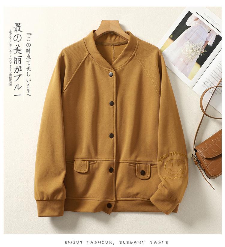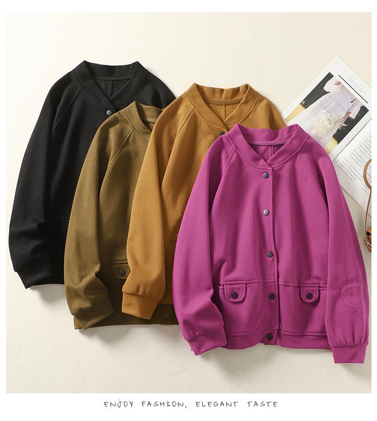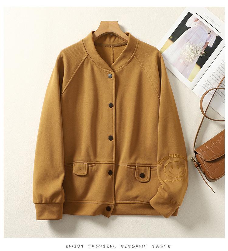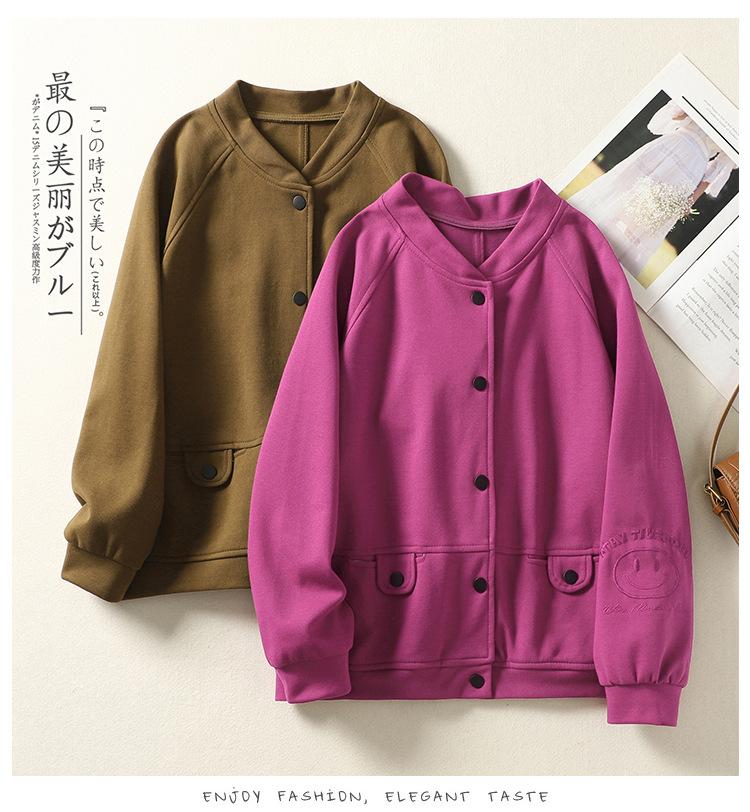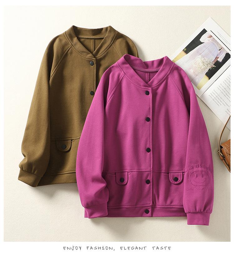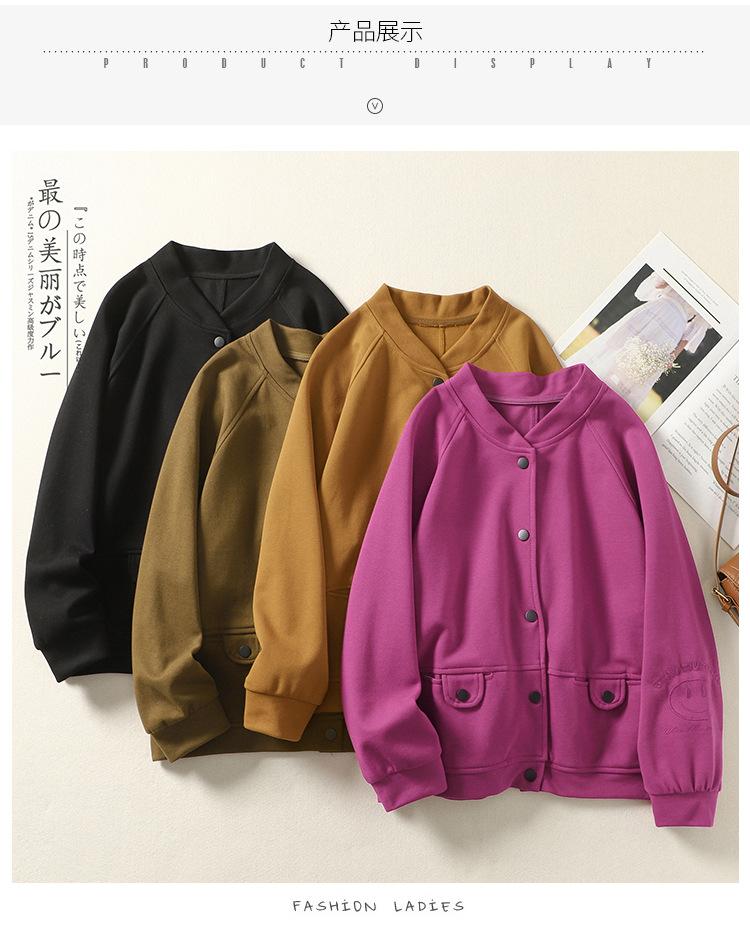 Chaqueta corta de otoño para mujer, uniforme de béisbol de algodón elástico, holgada, de color puro y sencillo, de tiro real, para principios de otoño