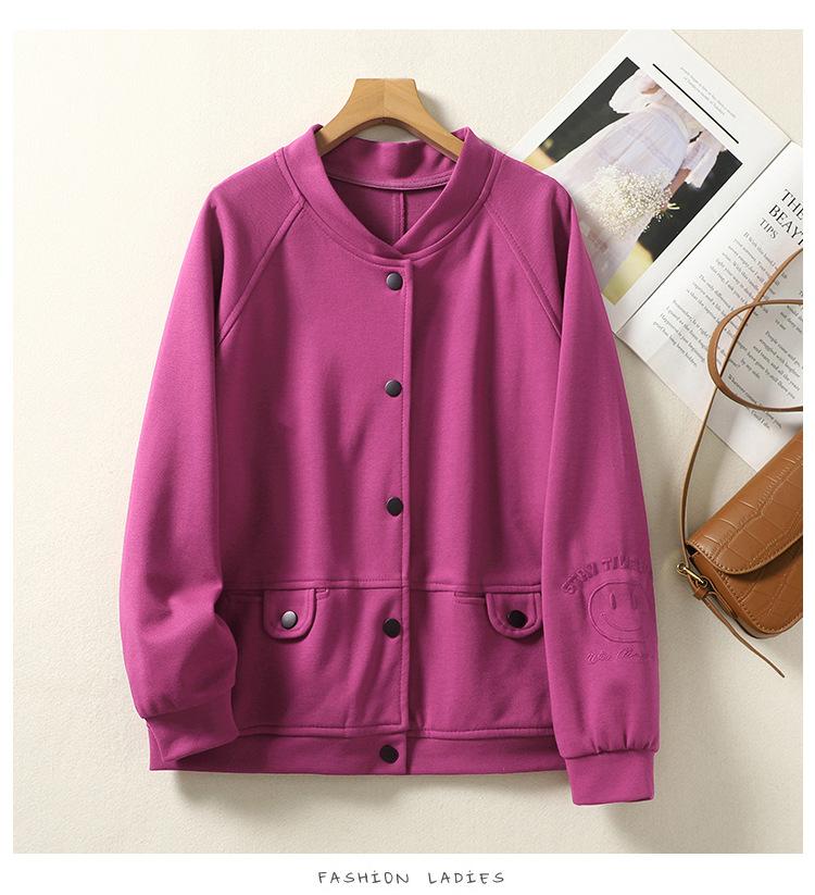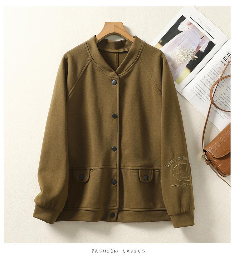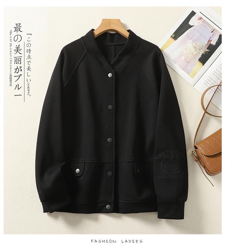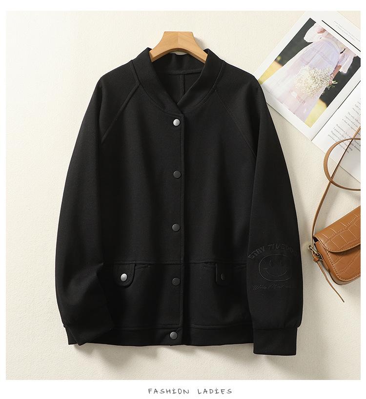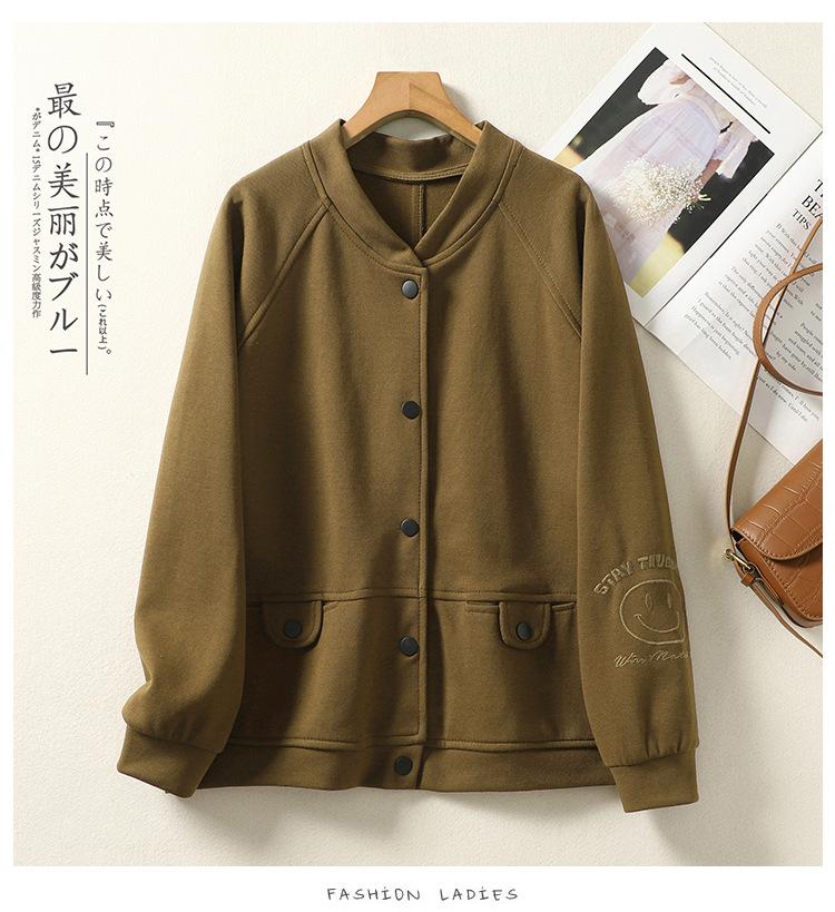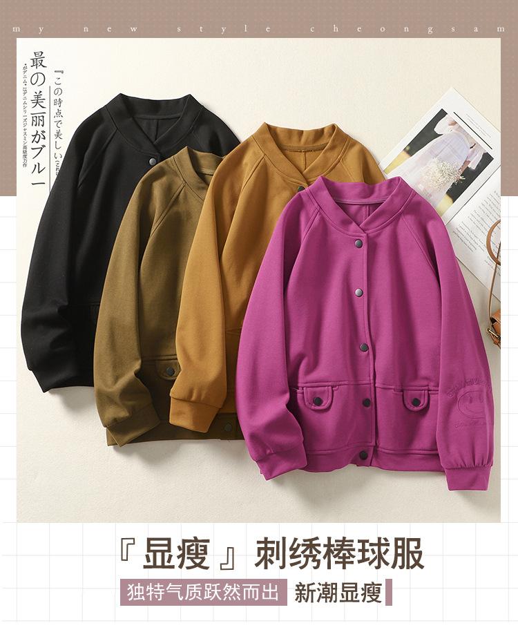 Chaqueta corta de otoño para mujer, uniforme de béisbol de algodón elástico, holgada, de color puro y sencillo, de tiro real, para principios de otoño