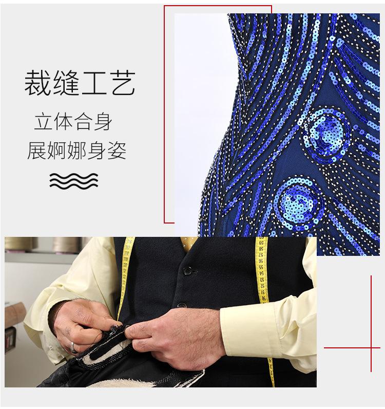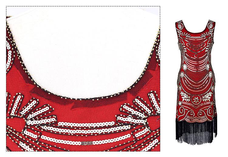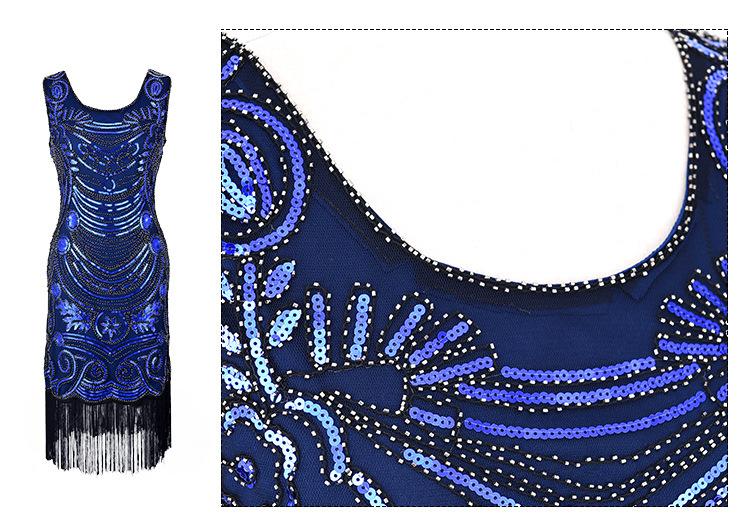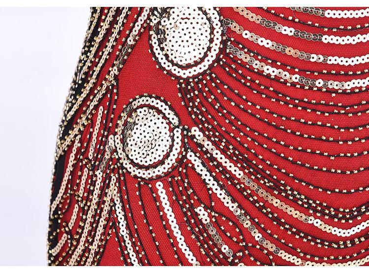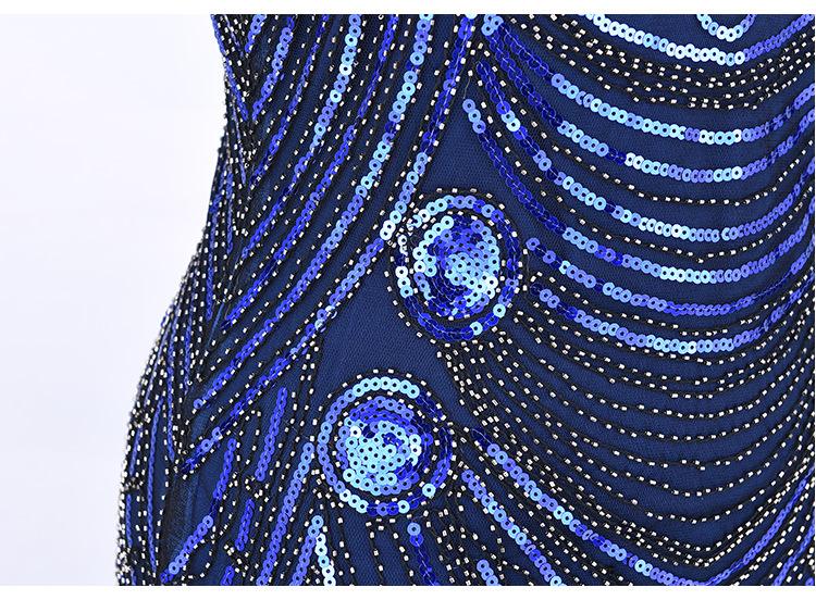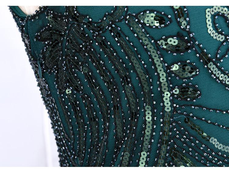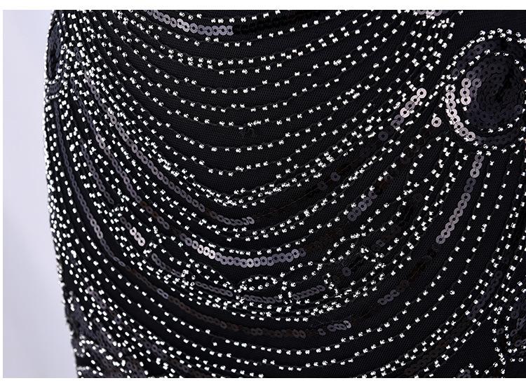 Vestido de Banquete Transfronterizo 2020 Venta al por Mayor Vestido Sin Mangas de Cuello Redondo Moda Europea y Americana Vestido de Malla con Lentejuelas para Mujer