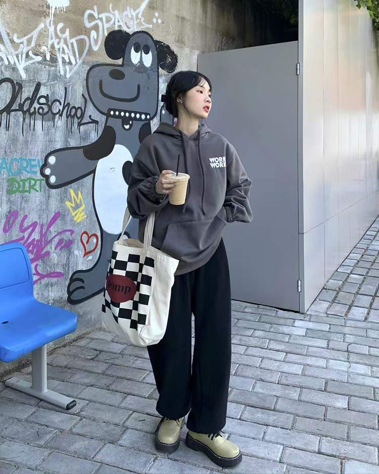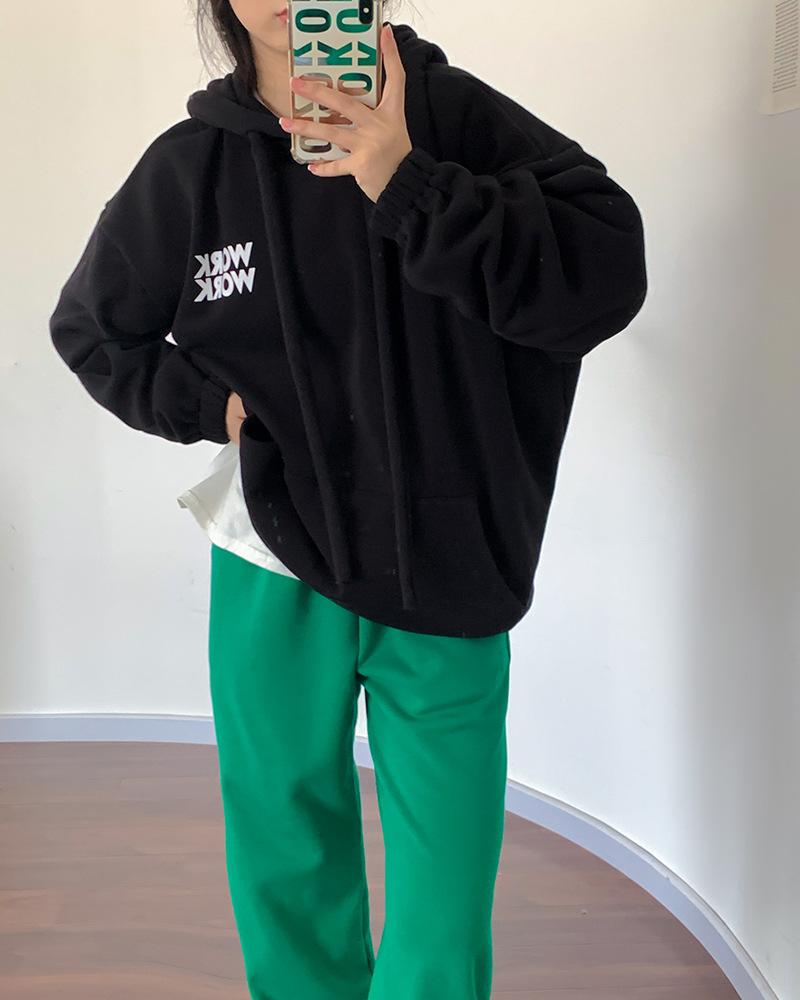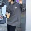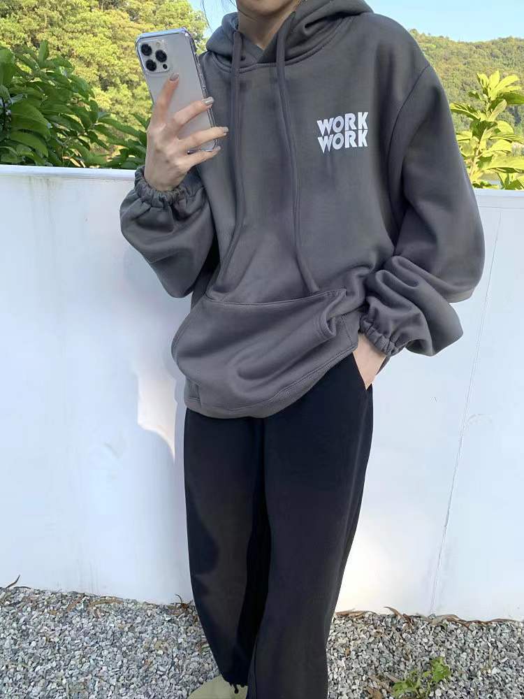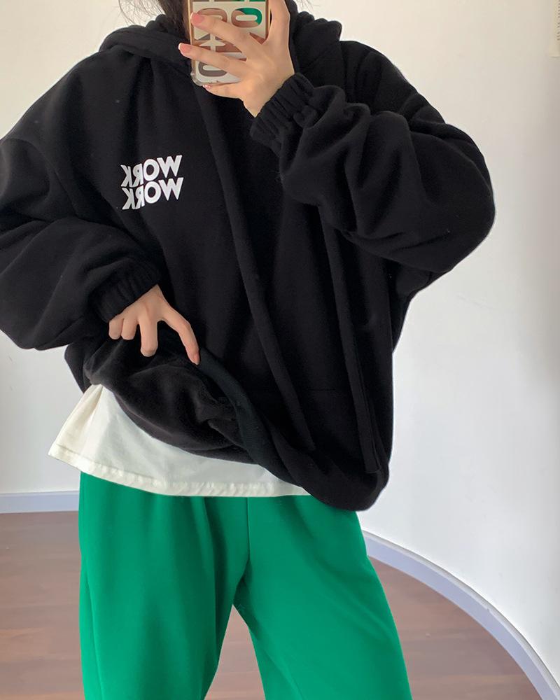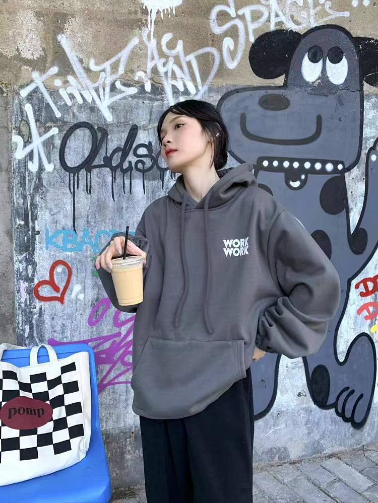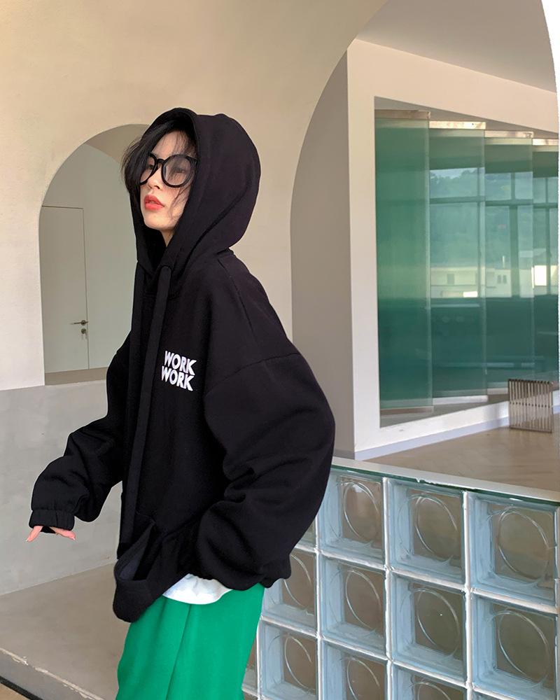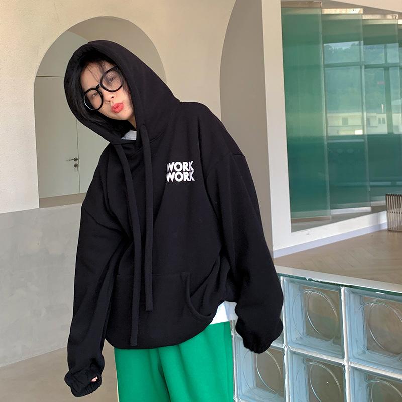 Sudadera retro de estilo americano con capucha y cordón para mujer, otoño e invierno, con forro polar grueso, estilo bf holgado, diseño de abrigo suelto, top