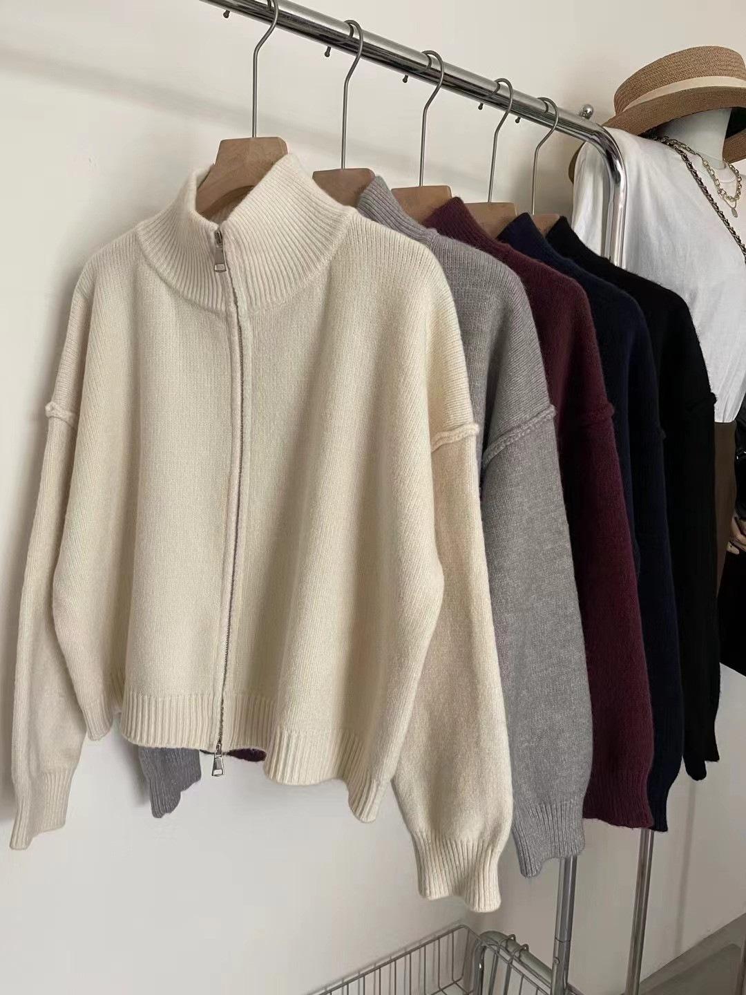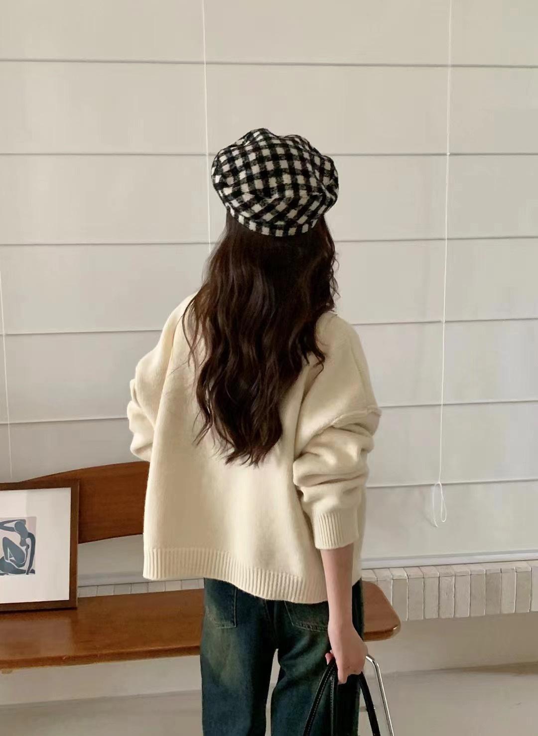 La talla se mide con el suéter extendido, sin estirar. Debido a su alta elasticidad, puede haber un margen de error de 3 a 5 cm al planchar los diferentes lotes.