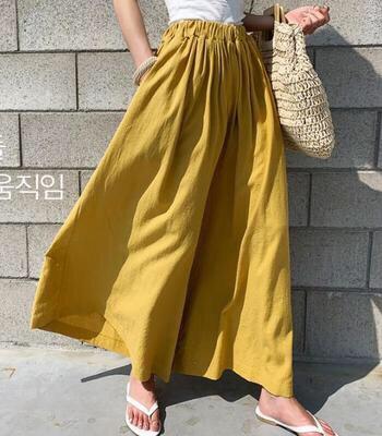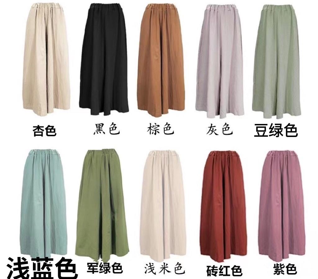 Ropa de verano para mujer, estilo chic coreano, pantalones anchos de cáñamo de color liso, pantalones casuales, pantalones largos, pantalones de mujer