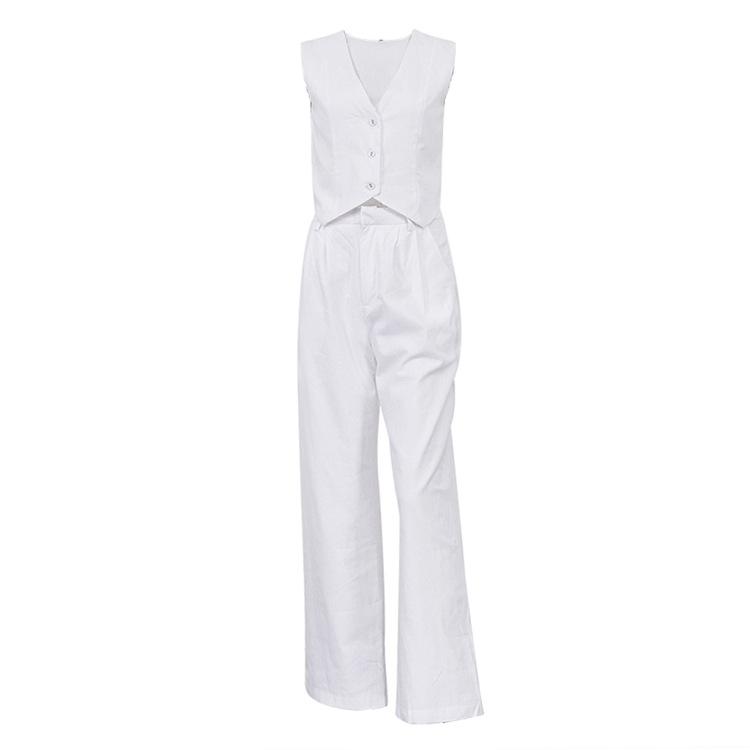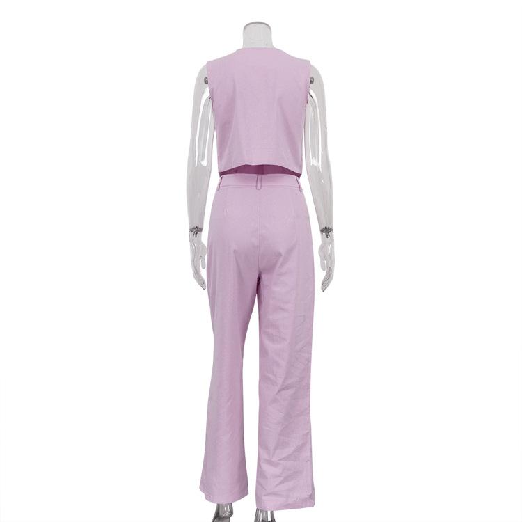 2024 Comercio Exterior Verano Nuevo Algodón y Lino Chaleco sin Mangas Chaleco Chaleco Pantalones Conjunto de Dos Piezas Traje de Moda Casual para Mujer