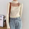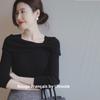 Suéter Nicho Retro Cuello Cuadrado con Volantes Invierno Manga Larga Ajustado Top Tejido Corto