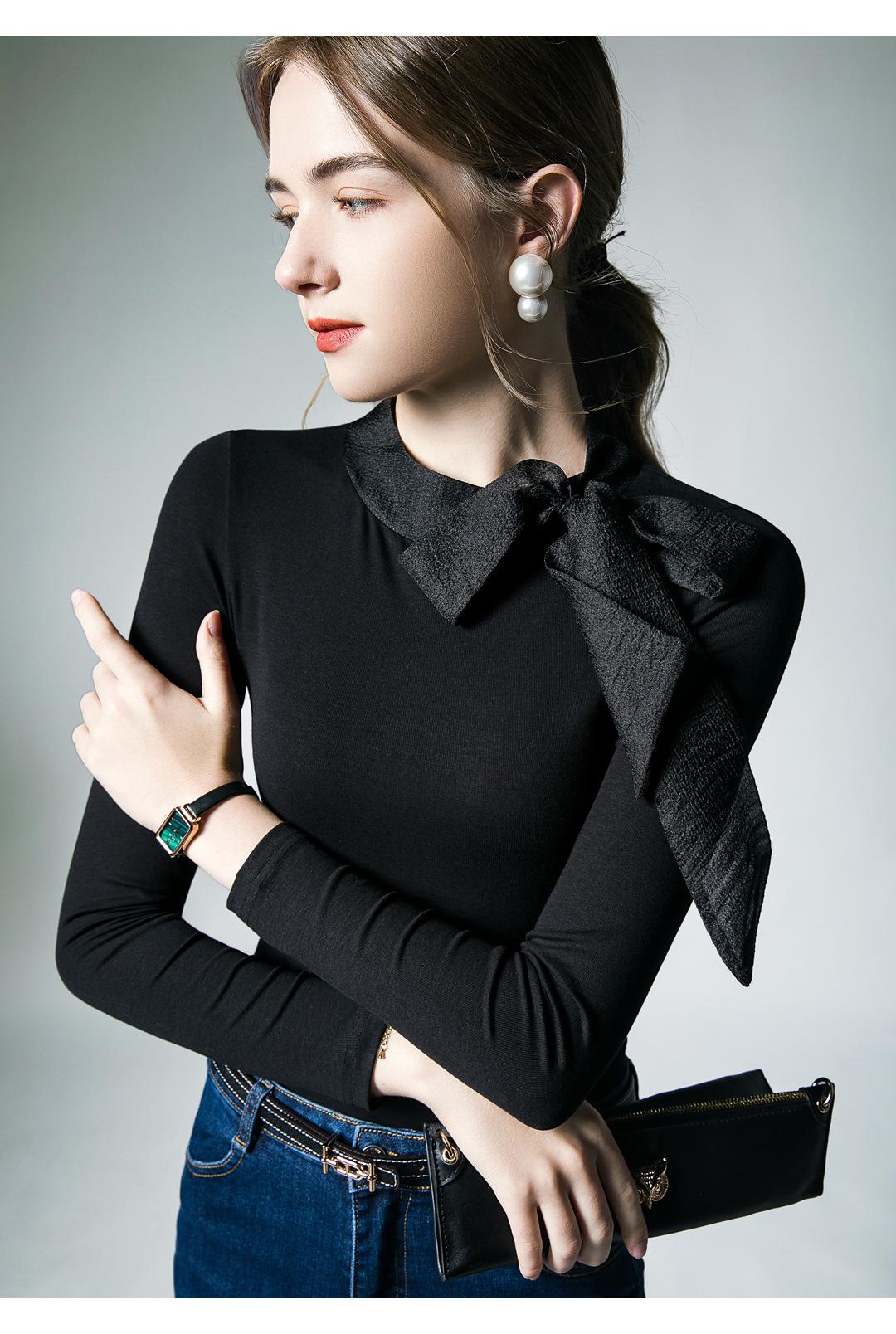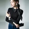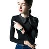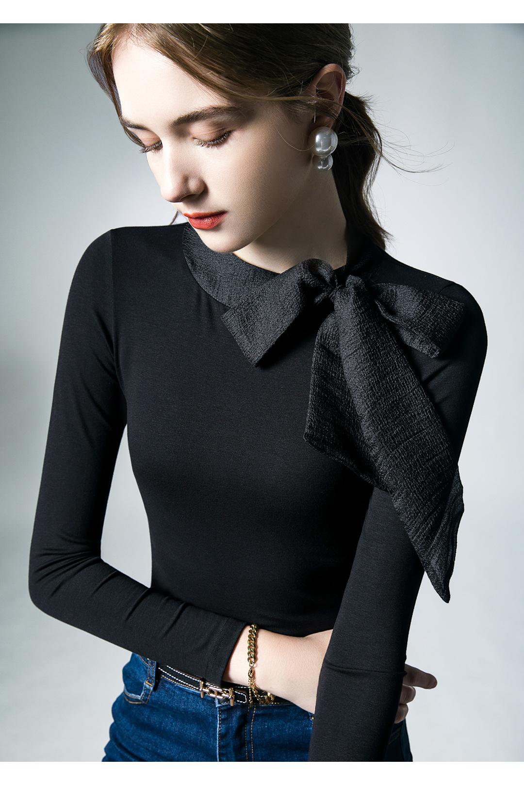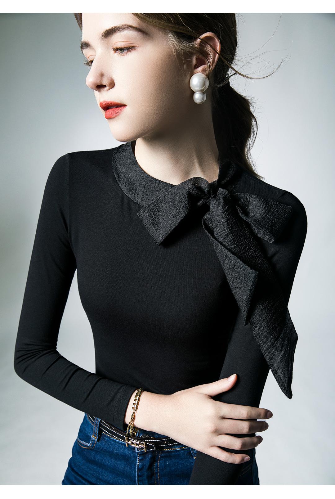 Camiseta con cordones de estilo francés de otoño, nueva camiseta de estilo occidental de color liso con un solo pecho, ideal para combinar con todo.
