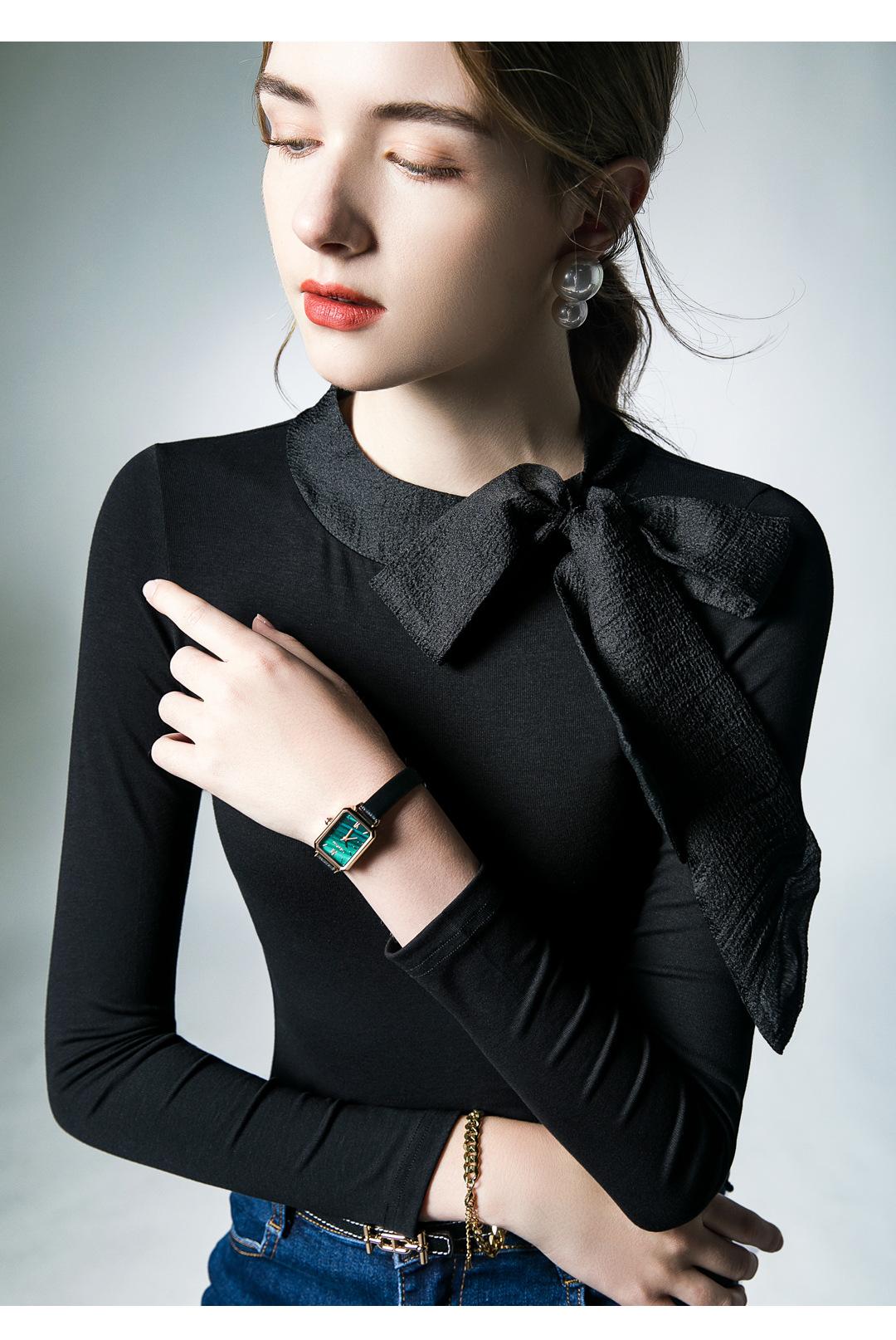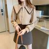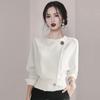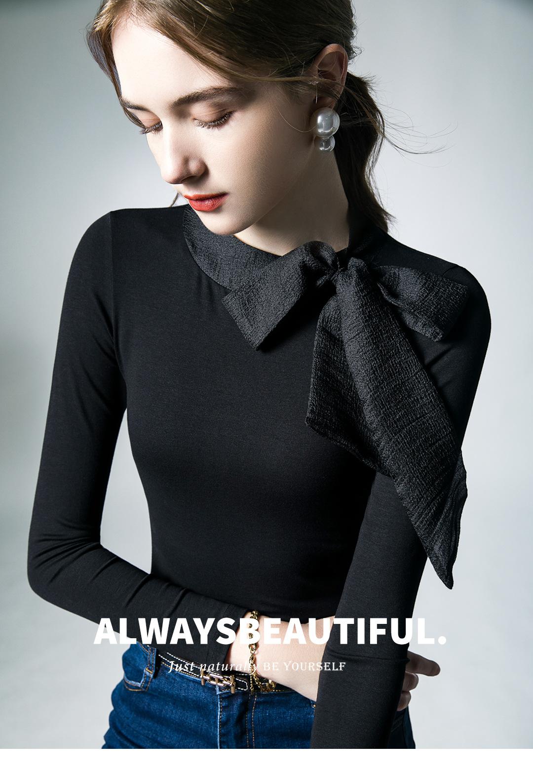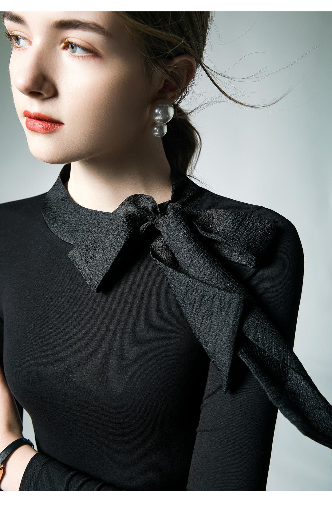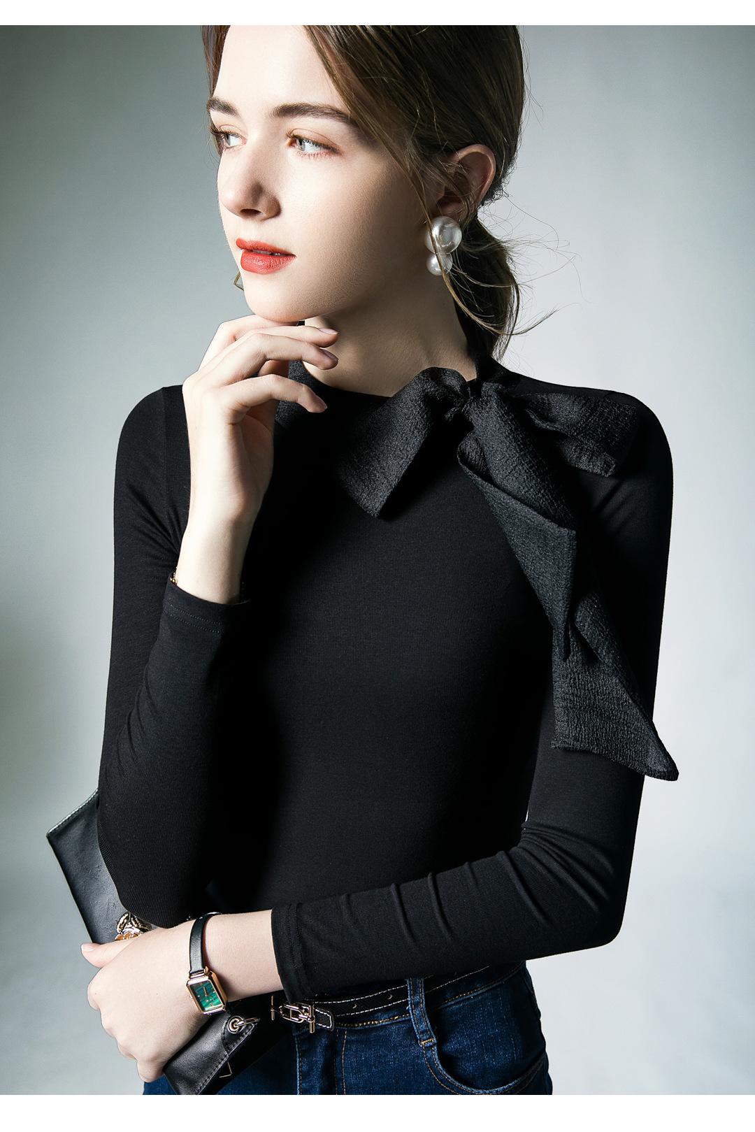 Camiseta con cordones de estilo francés de otoño, nueva camiseta de estilo occidental de color liso con un solo pecho, ideal para combinar con todo.