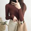 Suéter tipo camisa ajustado de manga larga, ajustado y cálido, estilo coreano 2023, con cuello redondo y hilado central para mujer