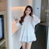 Camisa Morada Bordada Francesa de Manga Larga para Mujer Verano Delgada Diseño Nicho Holgada Cuello Redondo Manga Abullonada Top Protección Solar