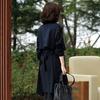 Gabardina para mujer de largo medio, abrigo elegante nuevo de primavera y otoño 2024, abrigo casual holgado con drapeado pequeño