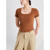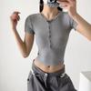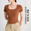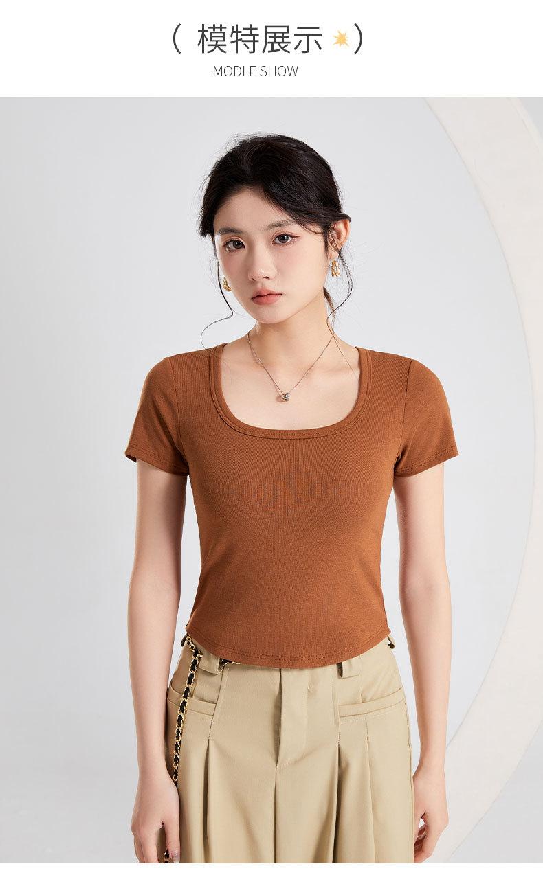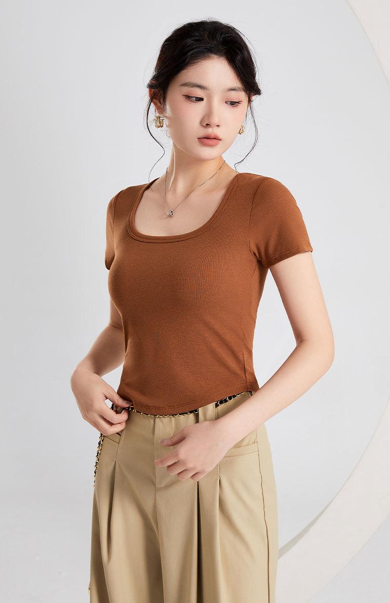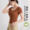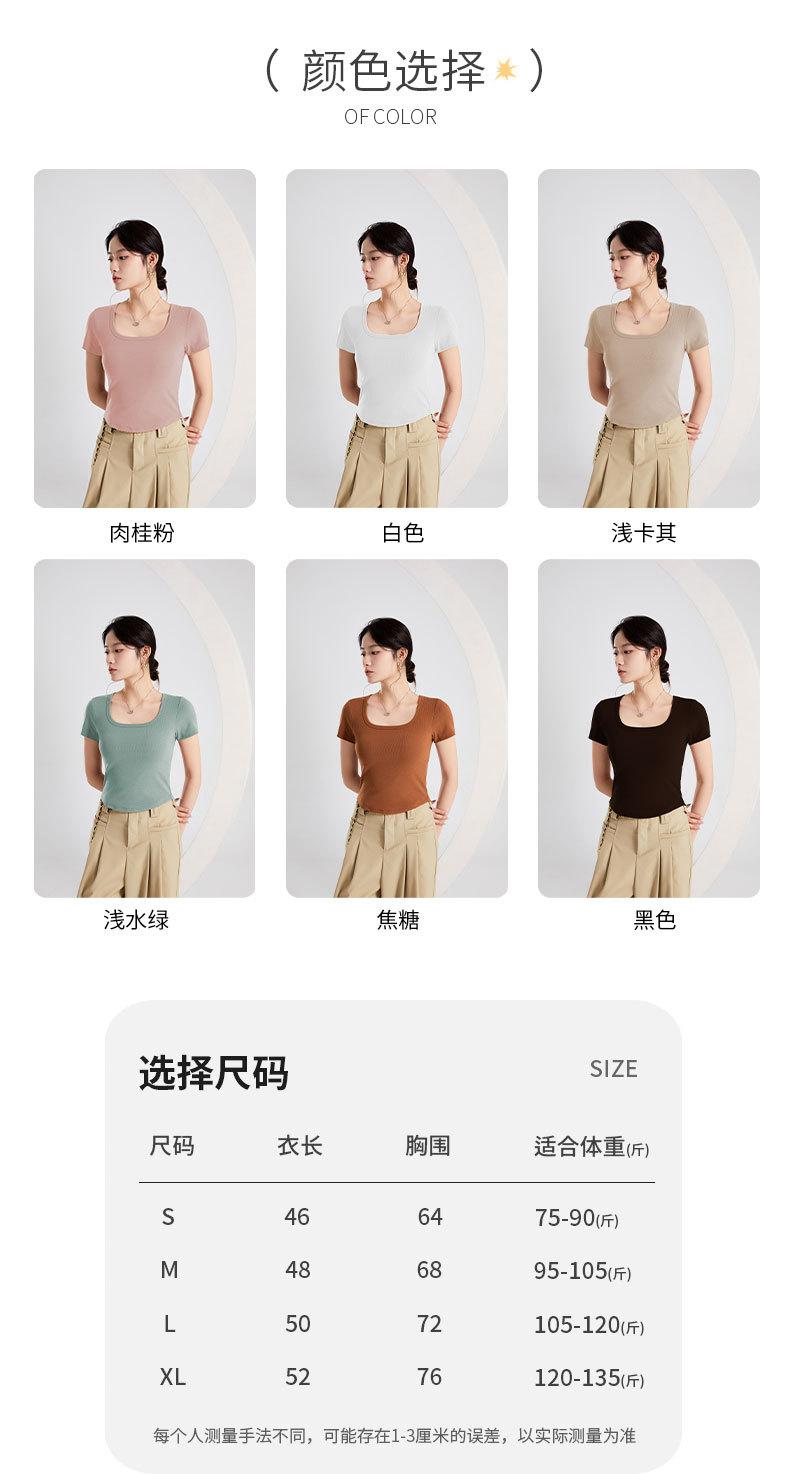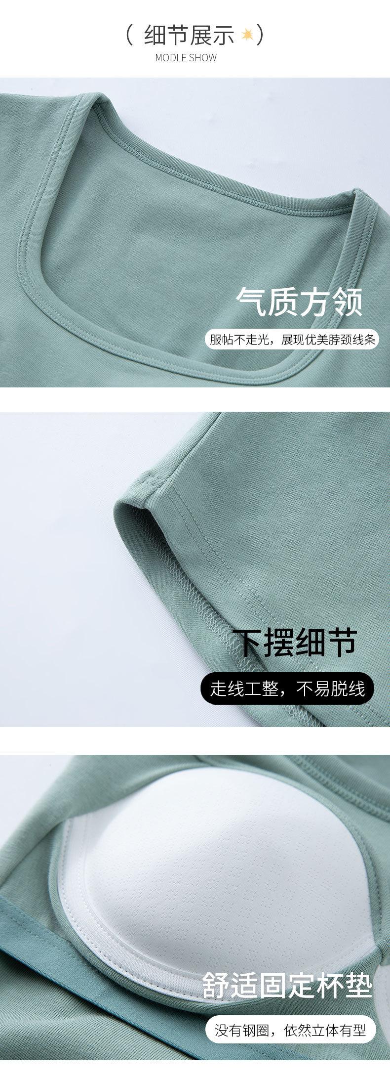 Primavera y Verano Nuevo Estilo Cuello Cuadrado con Almohadilla en el Pecho Camiseta de Manga Corta para Mujer Copa Todo en Uno Ajustada y Cómoda Top Casual