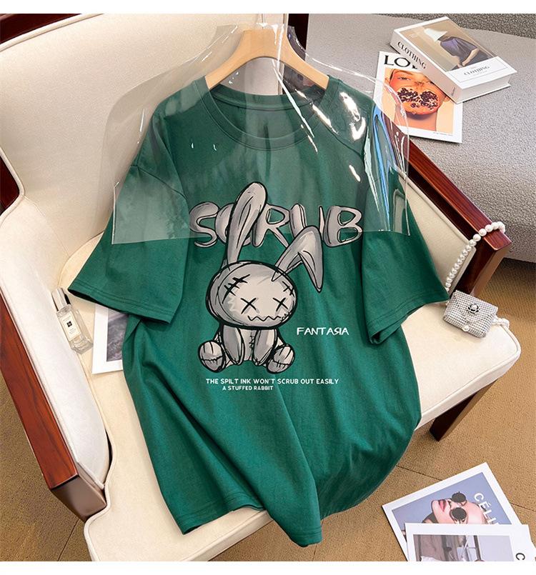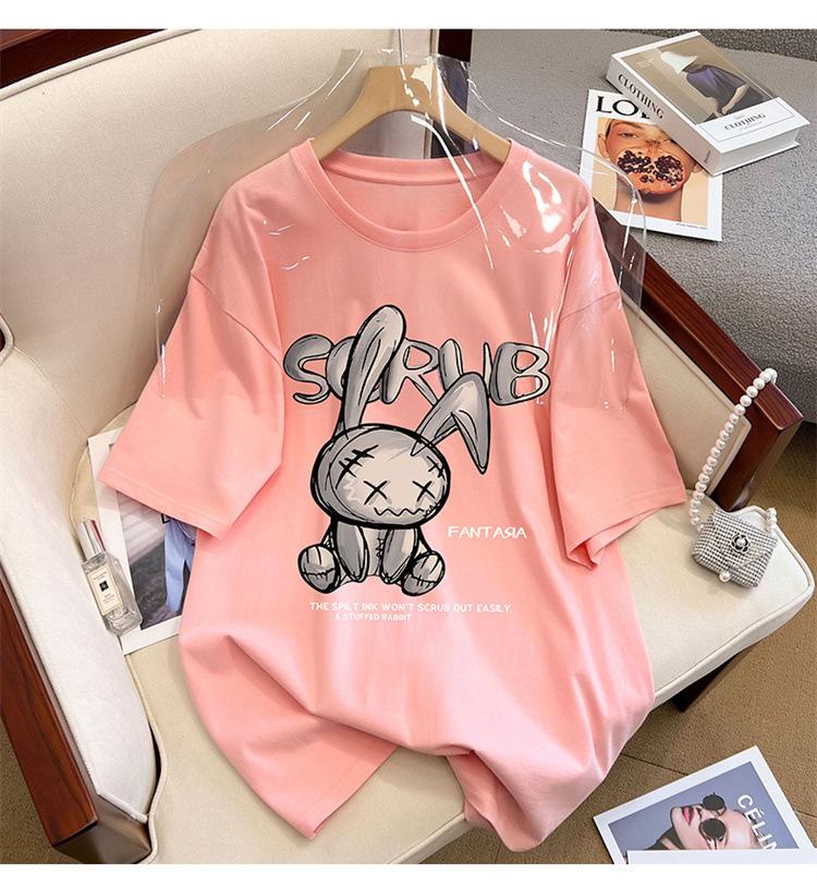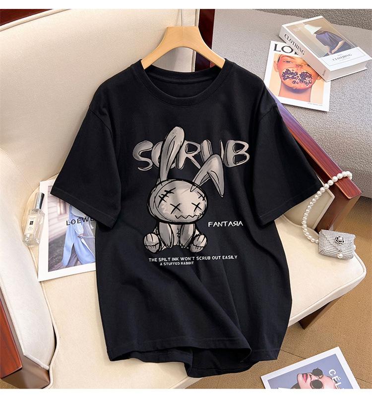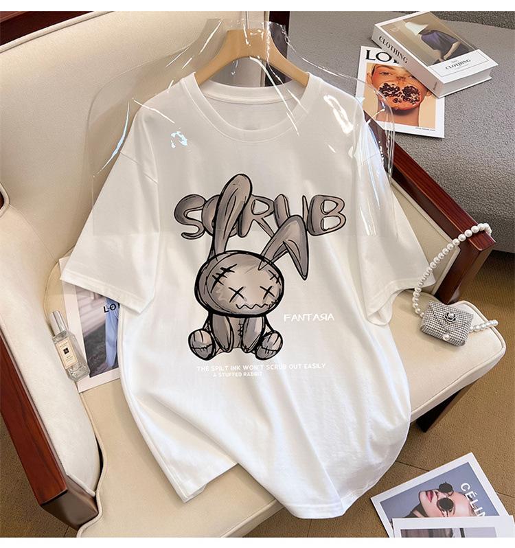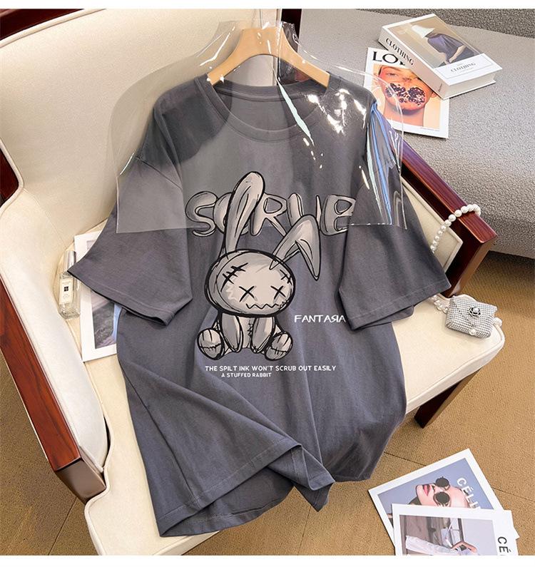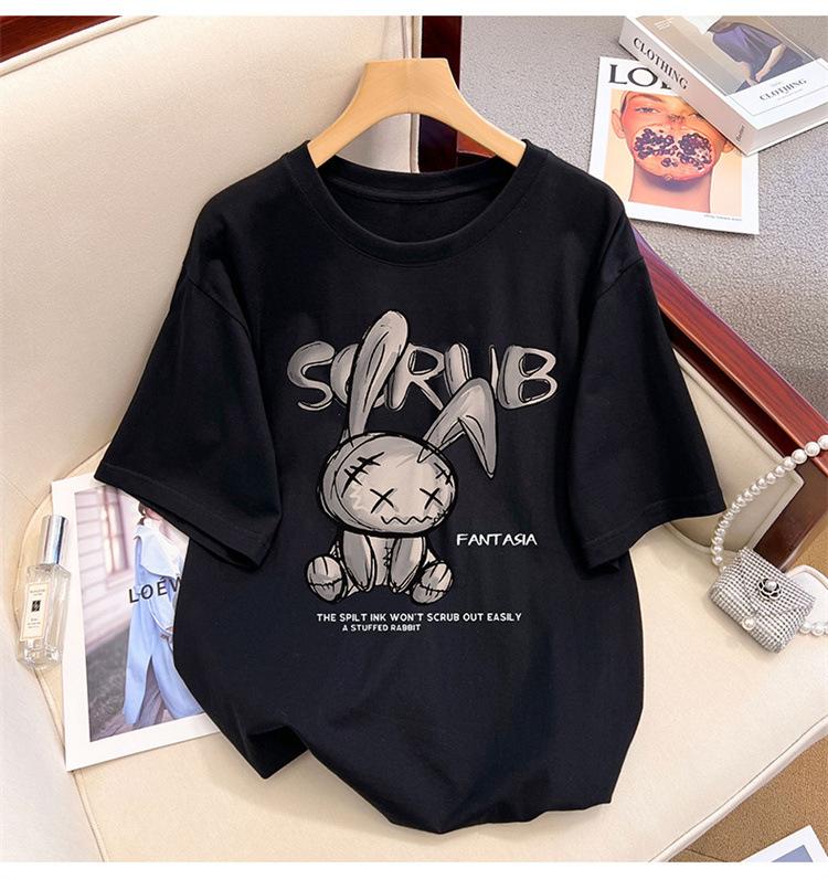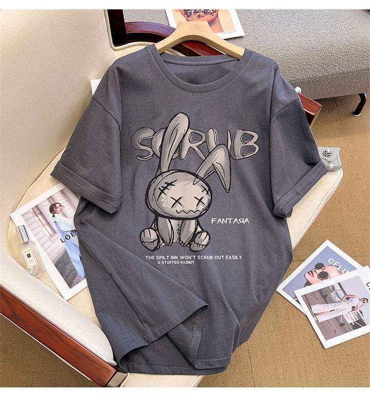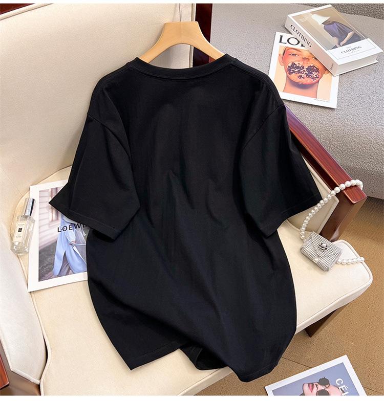 Camiseta de manga corta de algodón de verano 2024 para mujer, estilo europeo, estilo Hong Kong, elegante, talla grande, informal, holgada, marca de moda