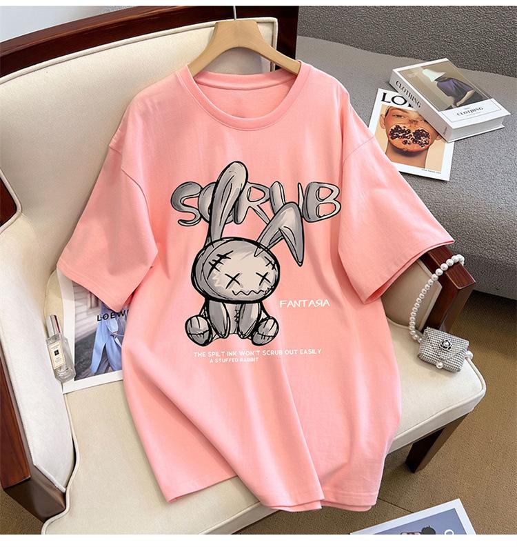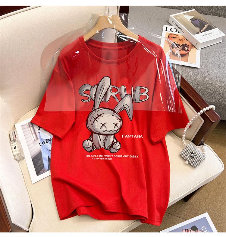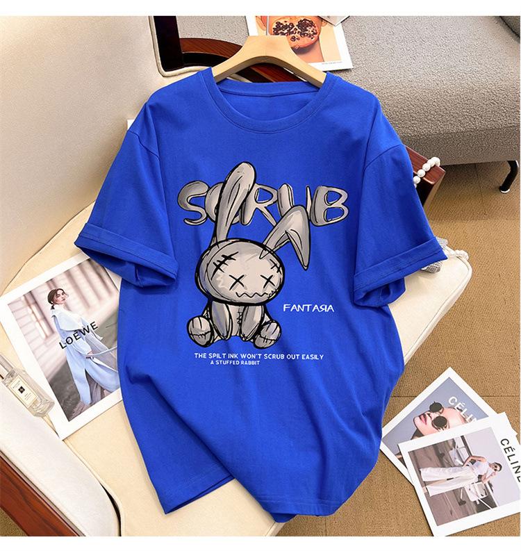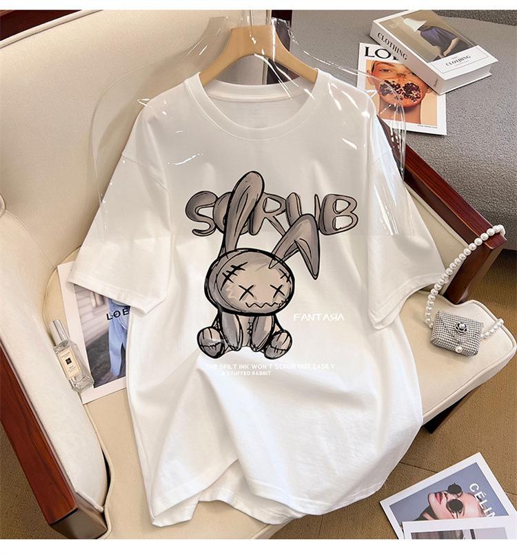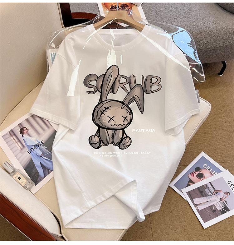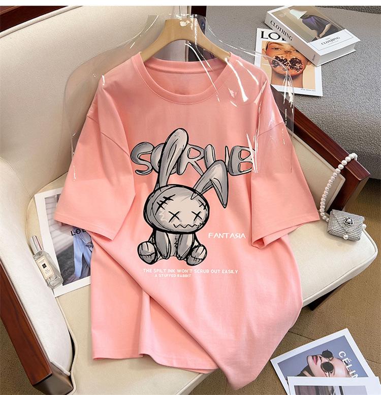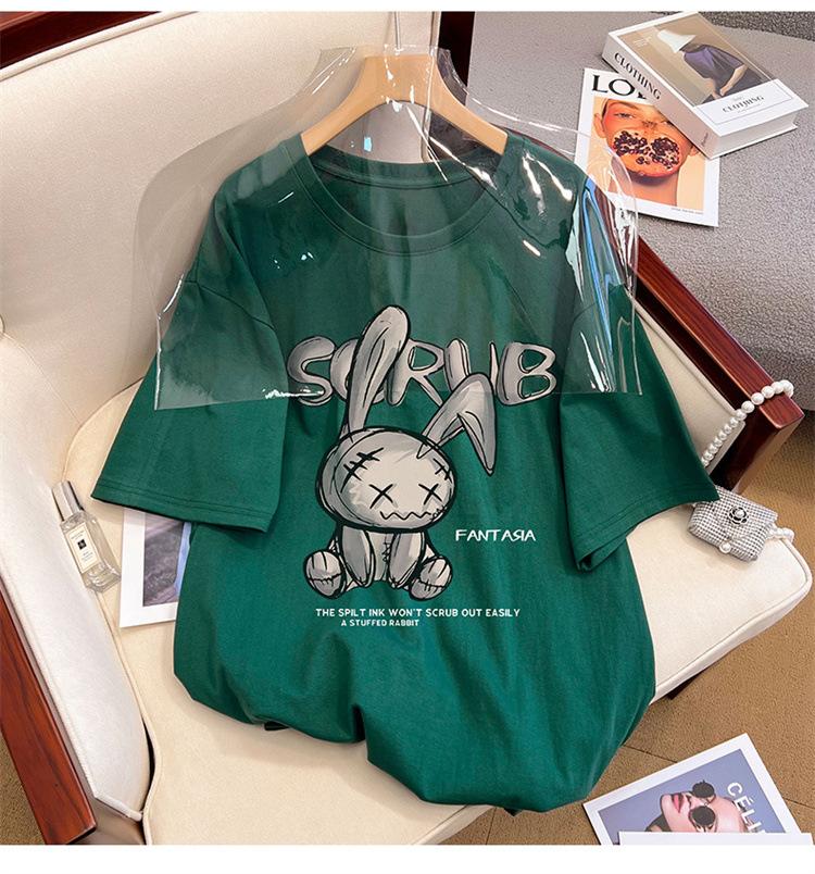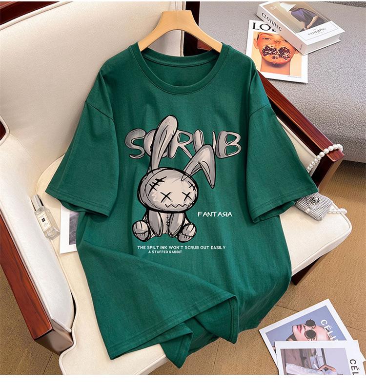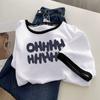 Camiseta de manga corta de algodón de verano 2024 para mujer, estilo europeo, estilo Hong Kong, elegante, talla grande, informal, holgada, marca de moda