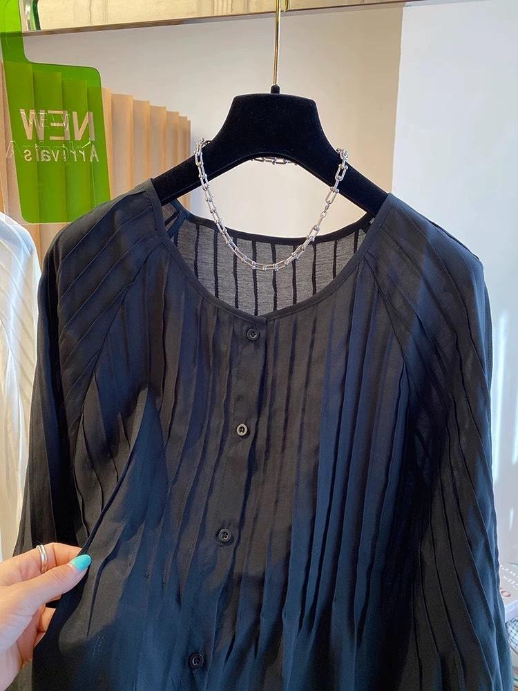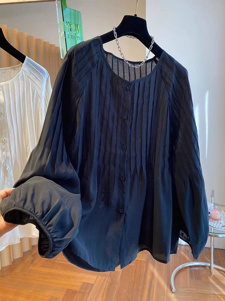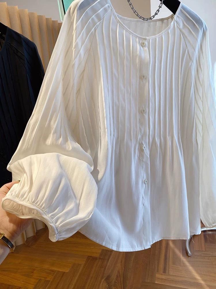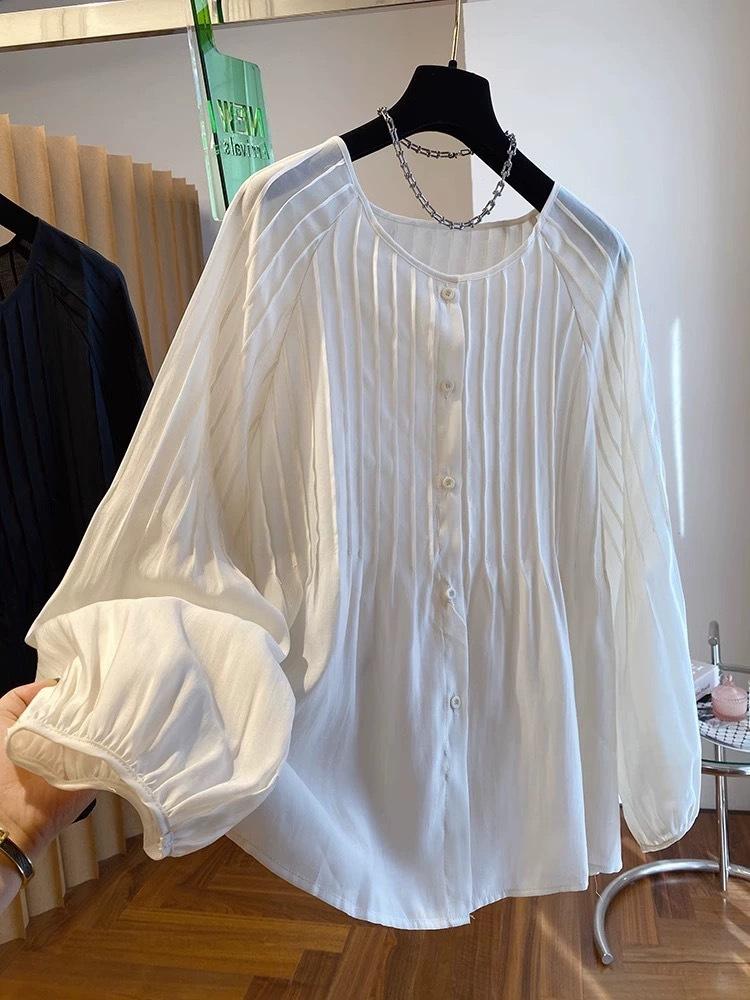 Camisa de Manga Larga Plisada de Diseño Nicho Chic Francés para Mujer 2024 Principios de Primavera Holgada y Elegante Hermosa Camisa Top