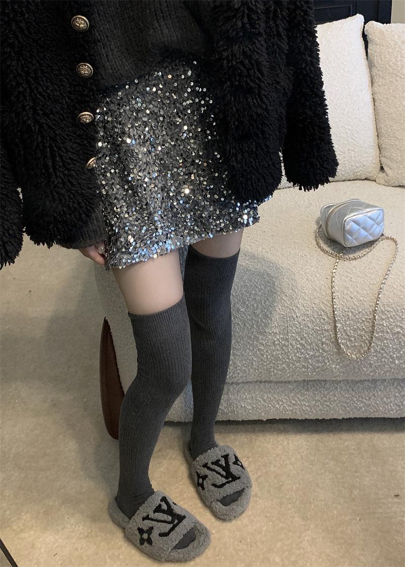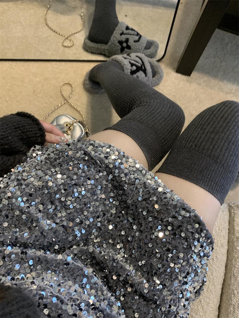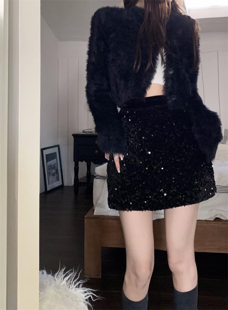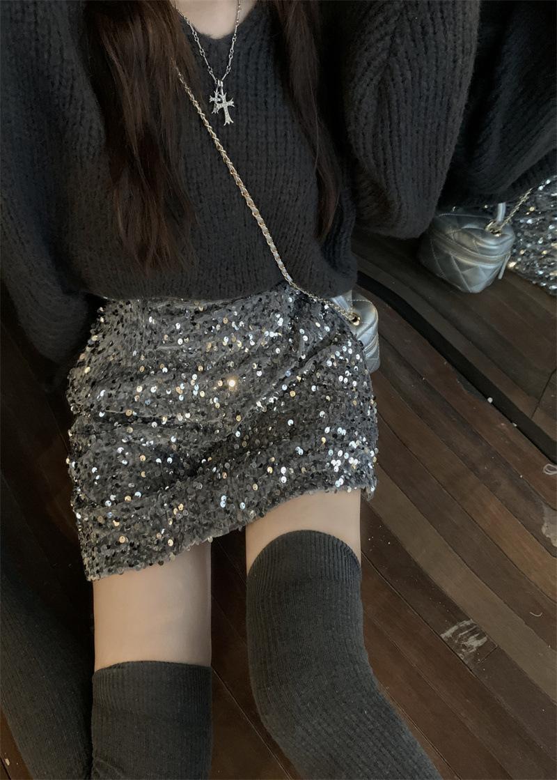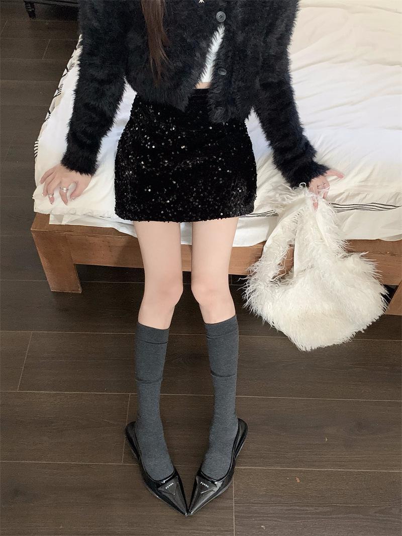 Falda de Lentejuelas Otoño e Invierno para Mujer Estilo Coreano 2025 Nuevo Estilo Cintura Alta Aspecto Adelgazante Falda Corta Ajustada a las Caderas