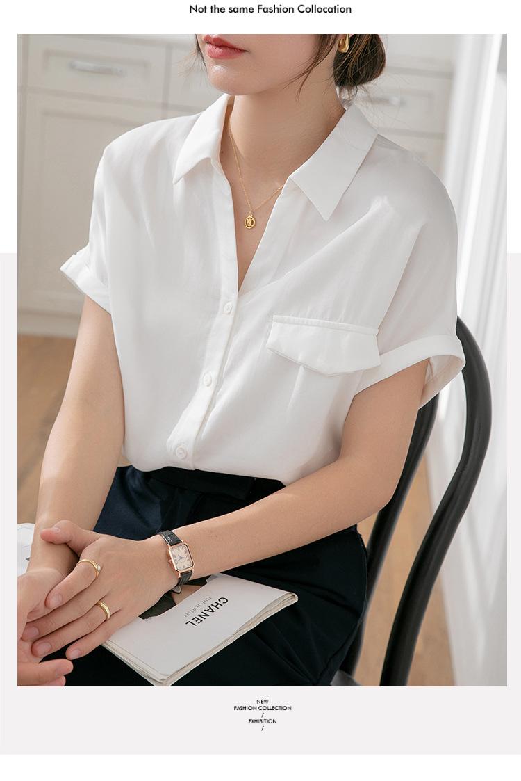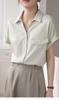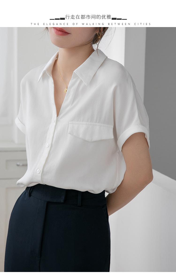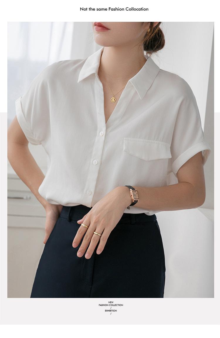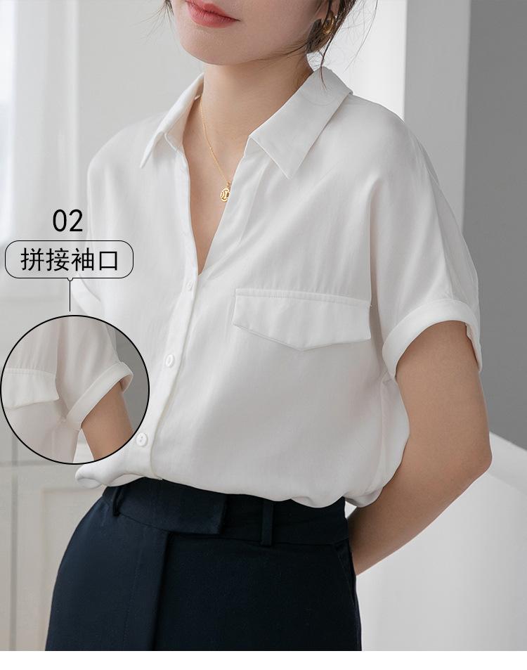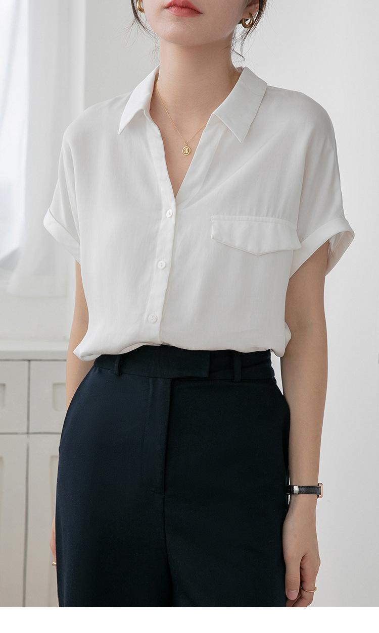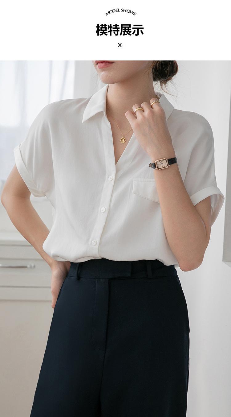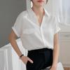 Lugar Toma Real 2024 Verano Camisa Blanca de Manga Corta para Mujer Delgada Cuello en V Pequeño Camisa Holgada Drapeada Top Profesional