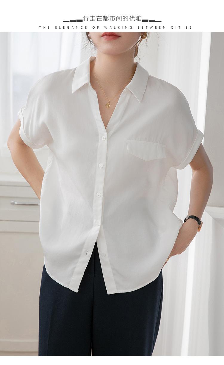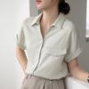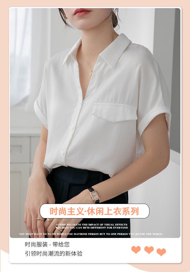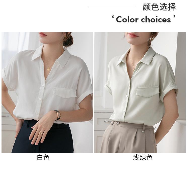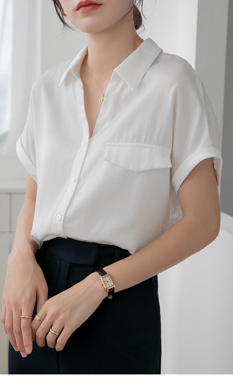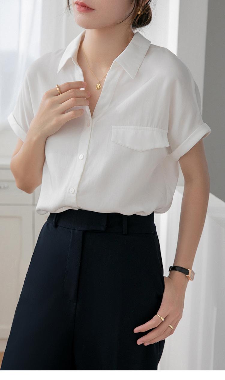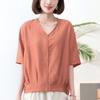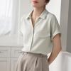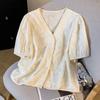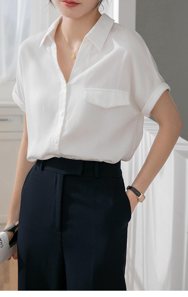 Lugar Toma Real 2024 Verano Camisa Blanca de Manga Corta para Mujer Delgada Cuello en V Pequeño Camisa Holgada Drapeada Top Profesional