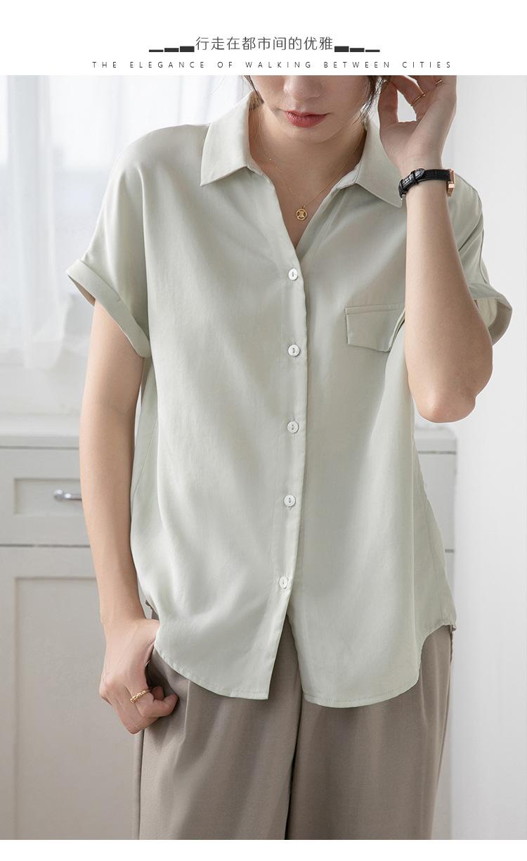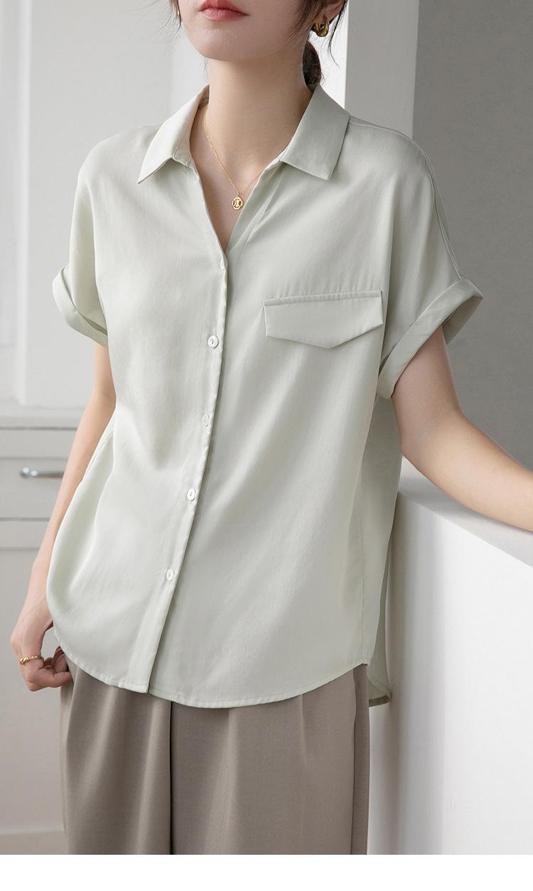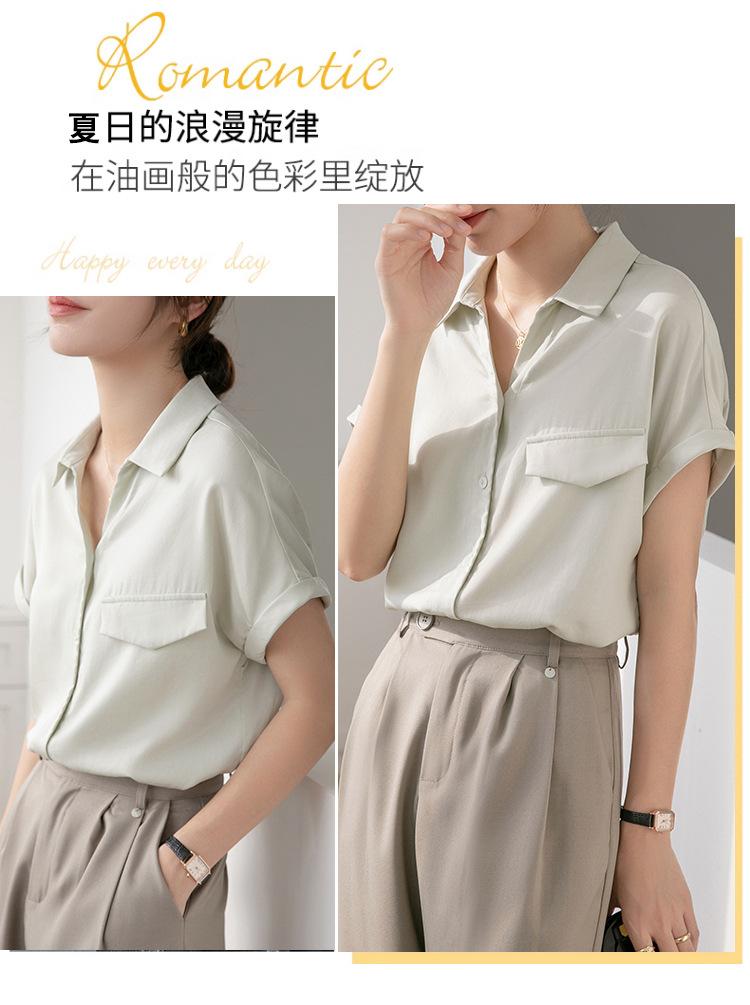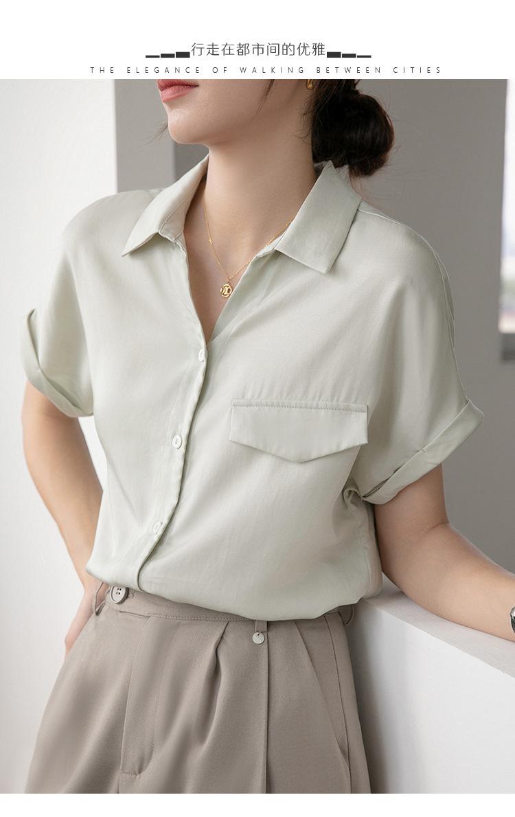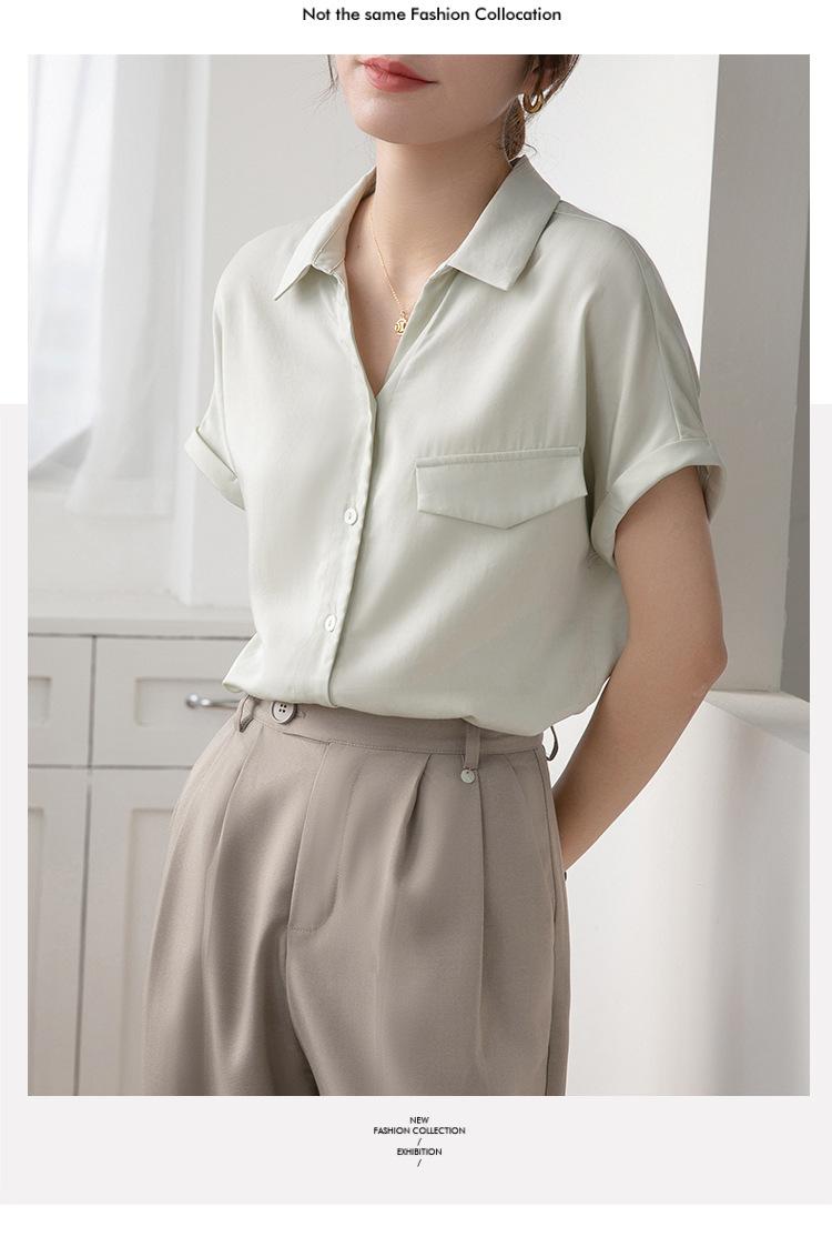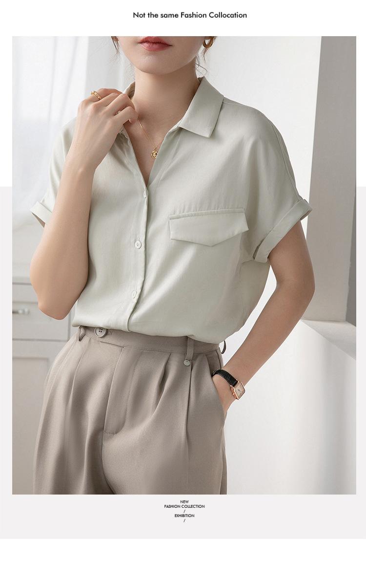 Lugar Toma Real 2024 Verano Camisa Blanca de Manga Corta para Mujer Delgada Cuello en V Pequeño Camisa Holgada Drapeada Top Profesional