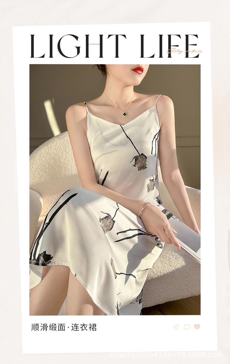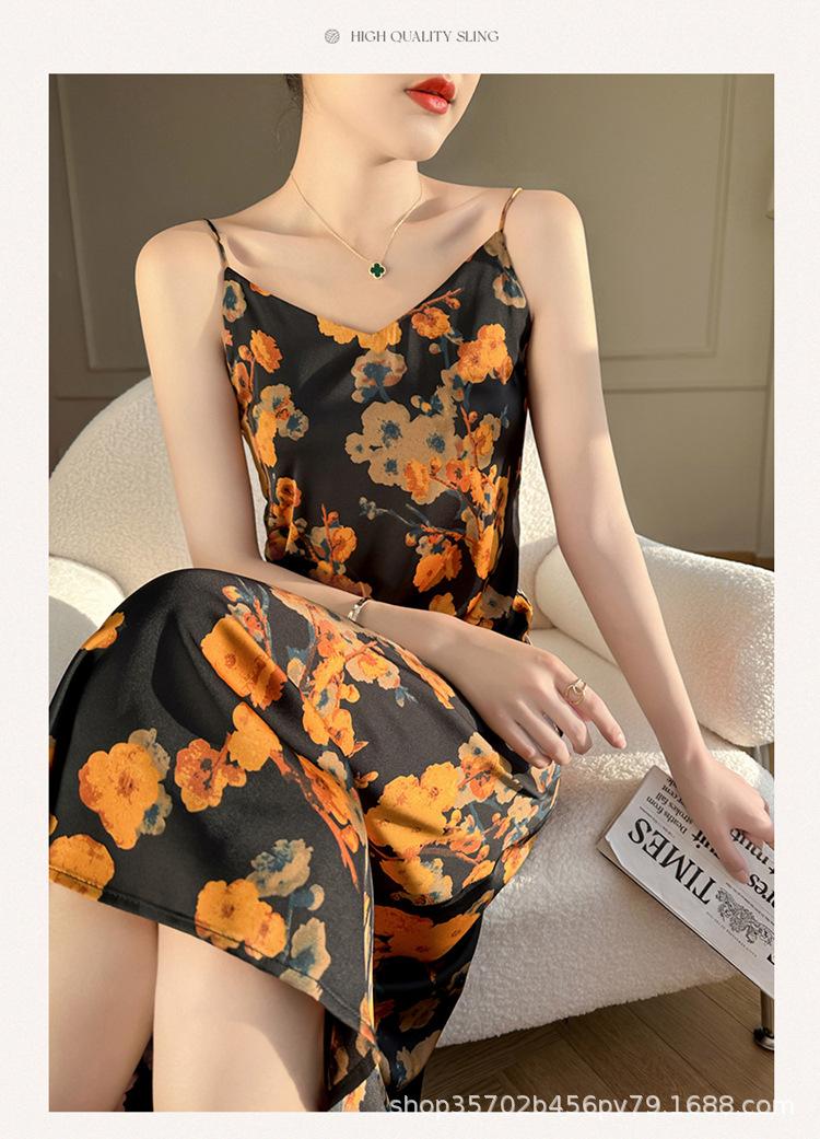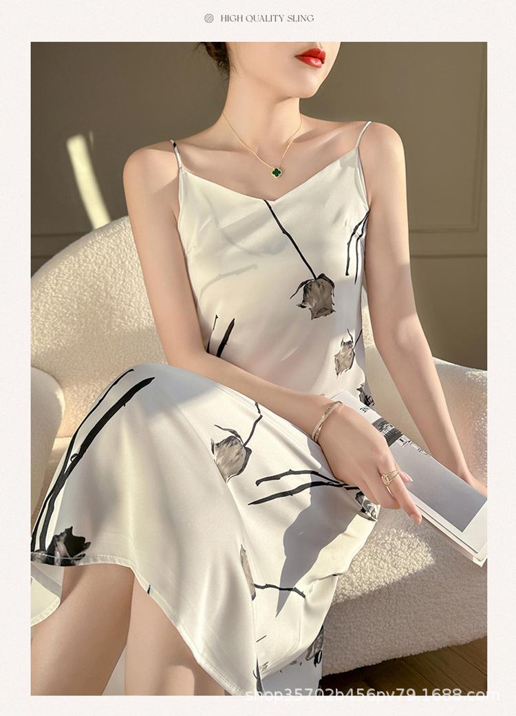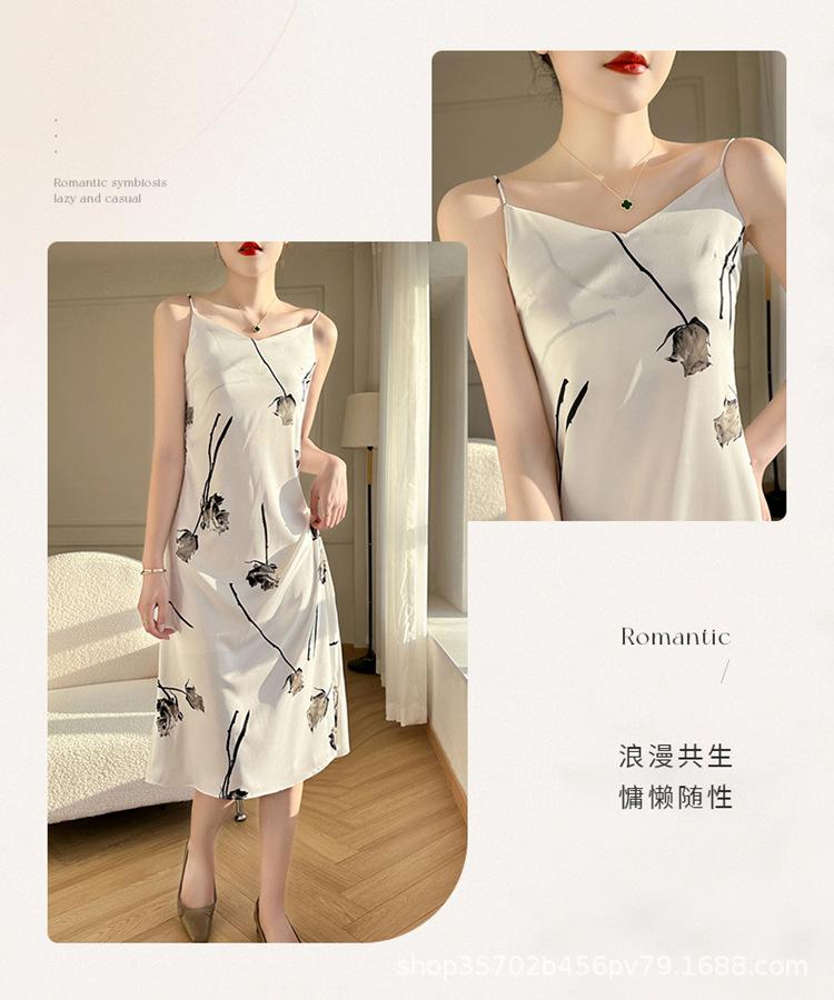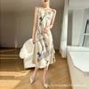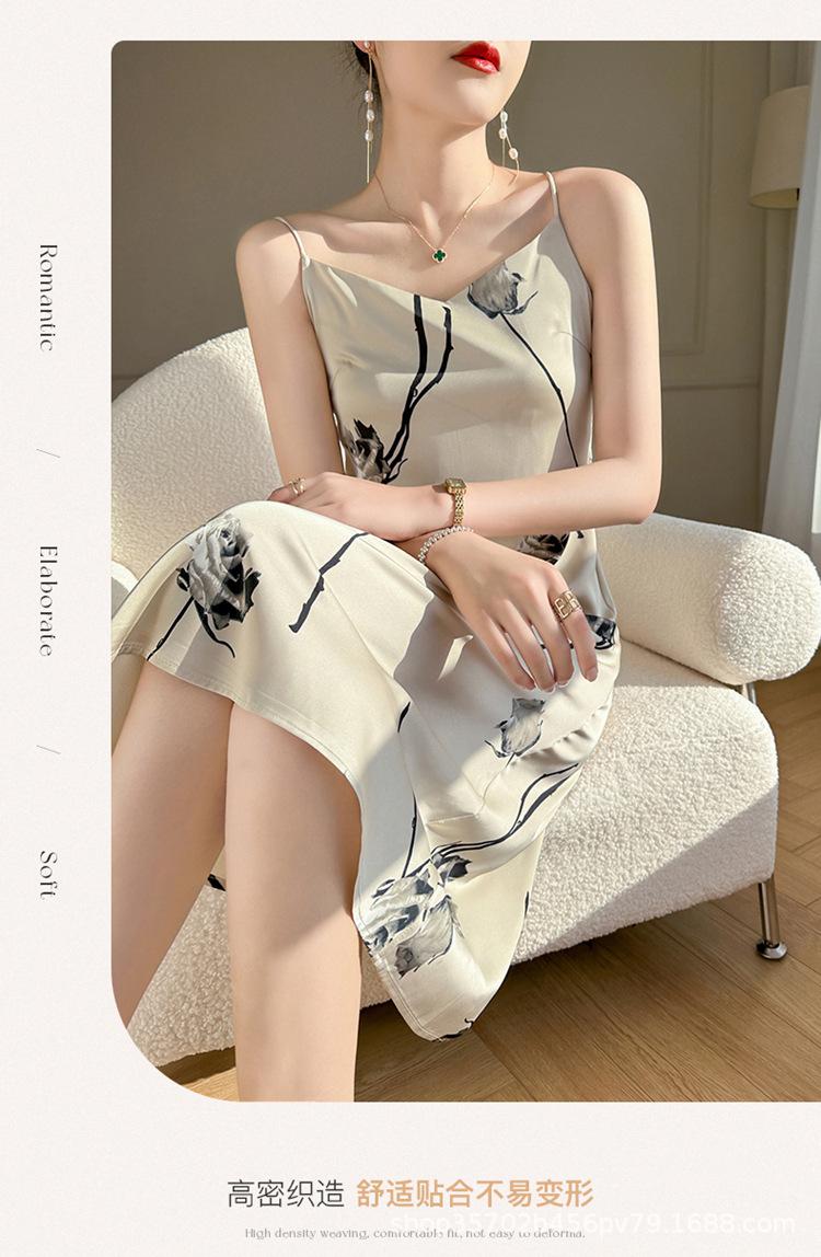 Vestido de Tirantes Floral Francés Transfronterizo para Mujer con Cuello en V Holgado hasta la Rodilla Estampado Vestido Interior de Chaleco Primavera y Verano 2025 Hielo