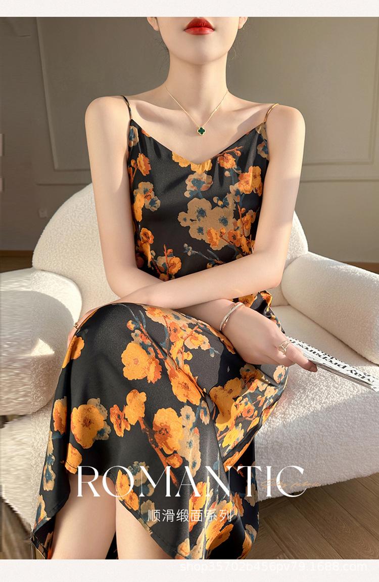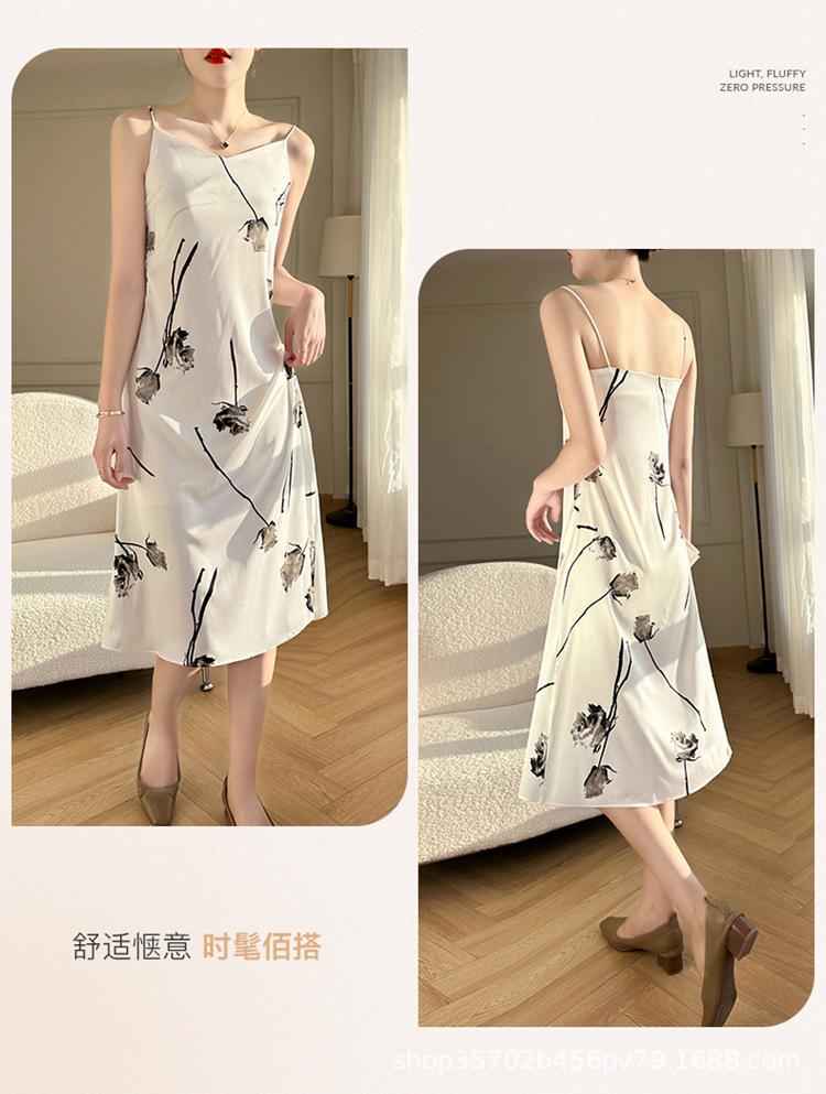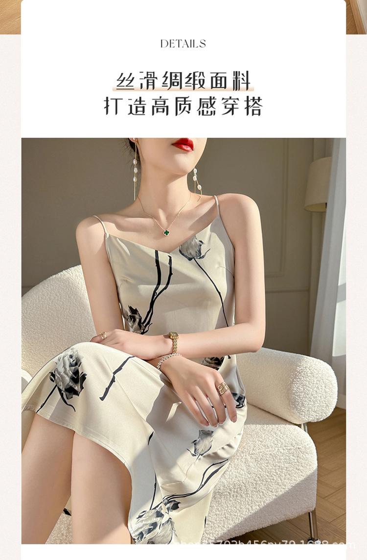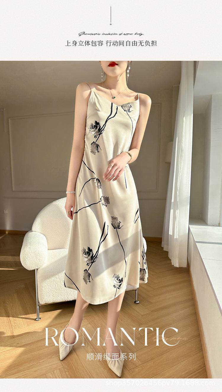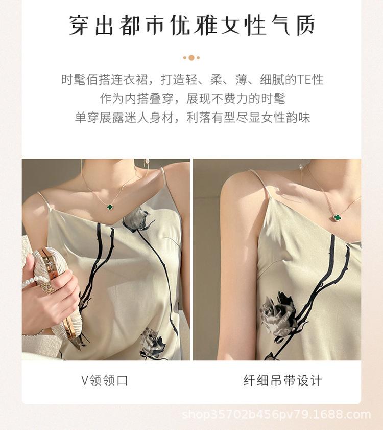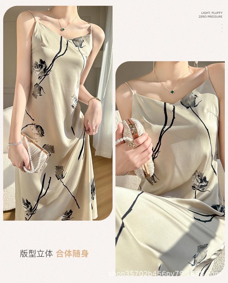 Vestido de Tirantes Floral Francés Transfronterizo para Mujer con Cuello en V Holgado hasta la Rodilla Estampado Vestido Interior de Chaleco Primavera y Verano 2025 Hielo