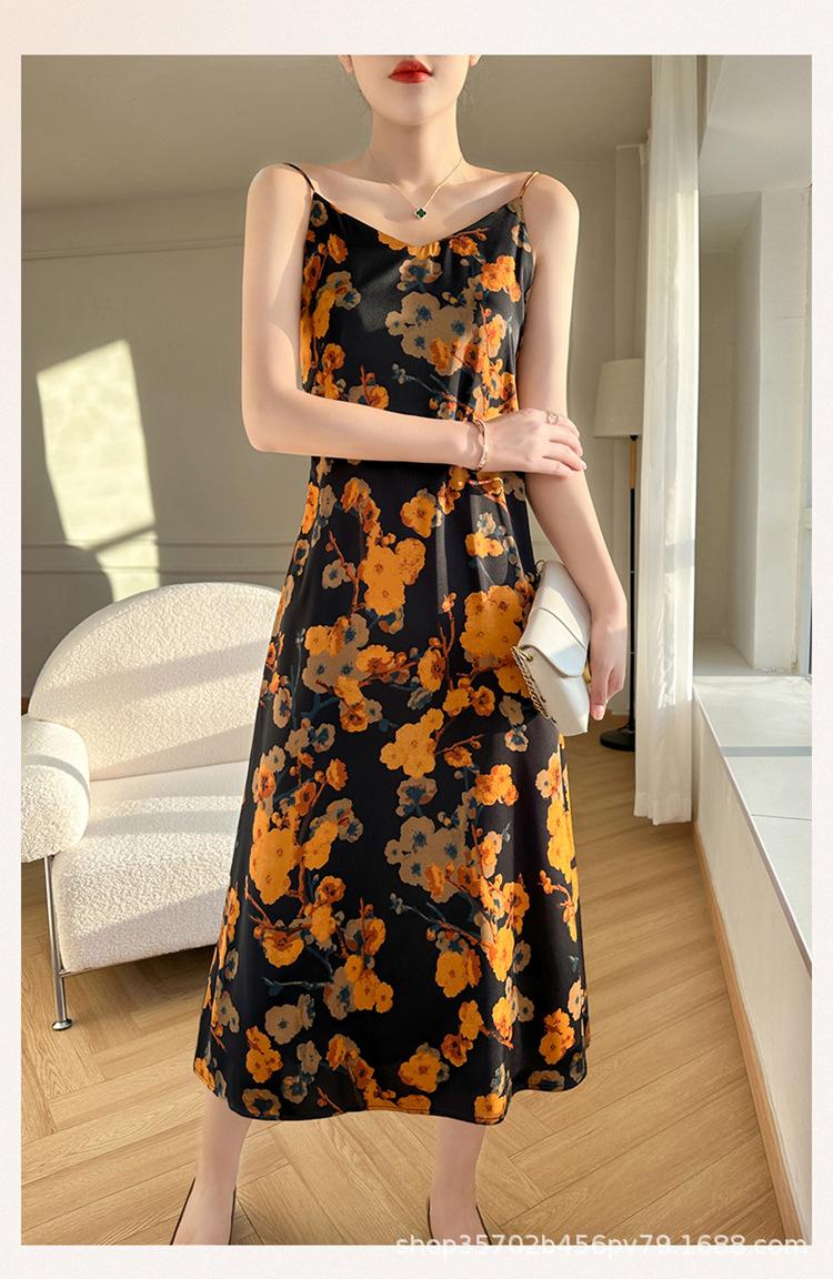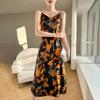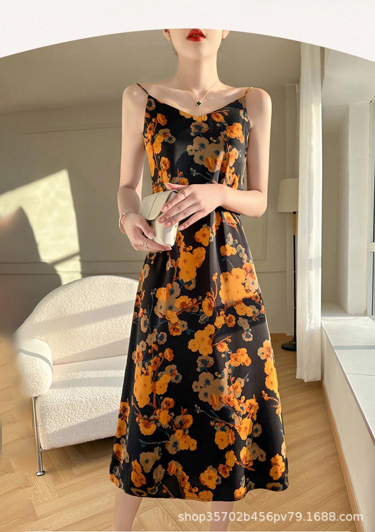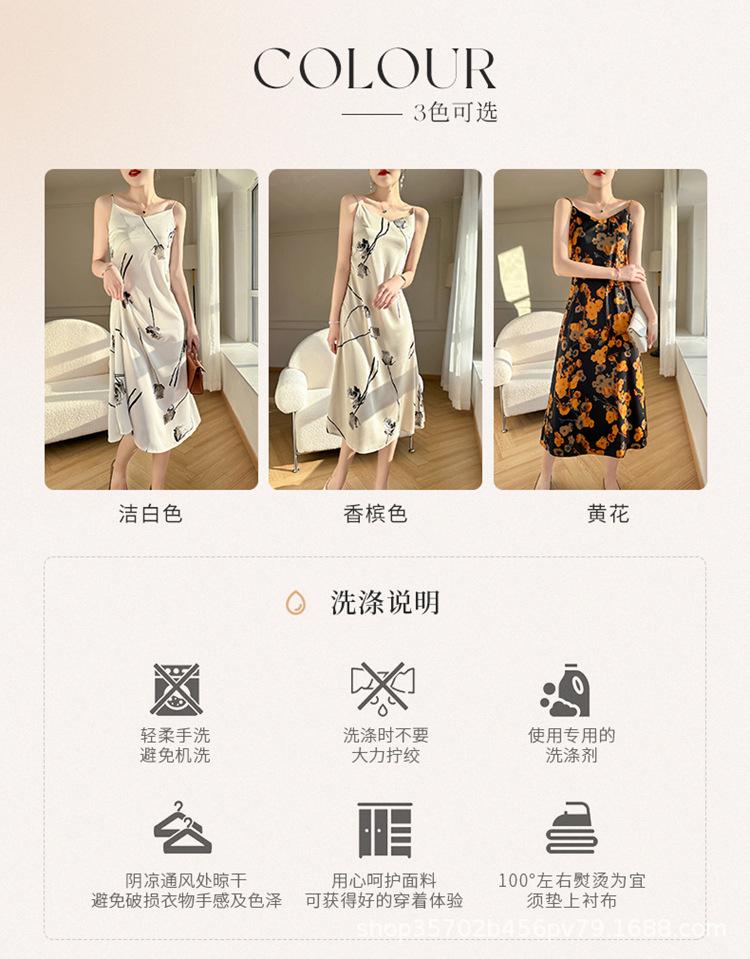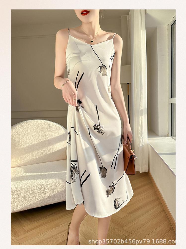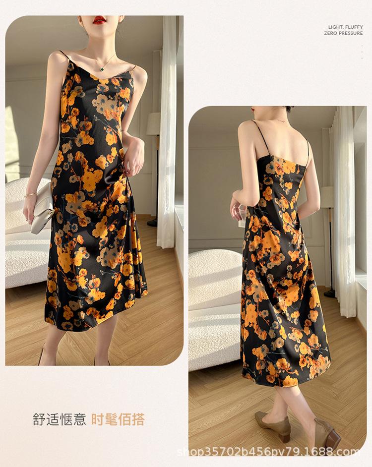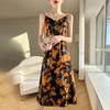 Vestido de Tirantes Floral Francés Transfronterizo para Mujer con Cuello en V Holgado hasta la Rodilla Estampado Vestido Interior de Chaleco Primavera y Verano 2025 Hielo