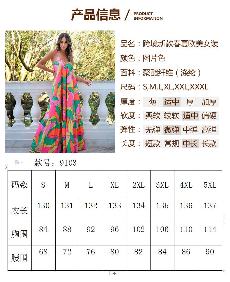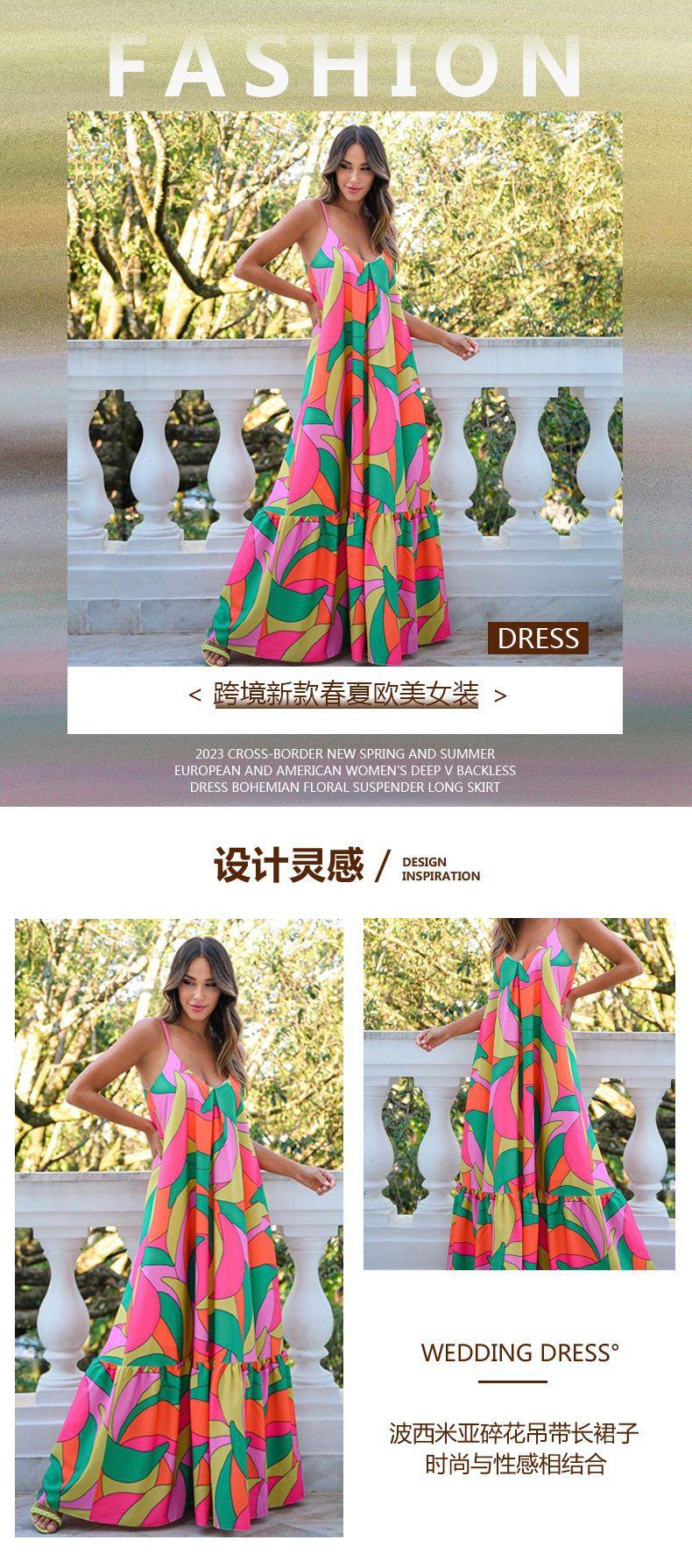2025 Nuevo Primavera Verano Ropa Europea y Americana Transfronteriza Vestido Escote Profundo en V Espalda Descubierta Bohemio Floral Tirantes Falda Larga