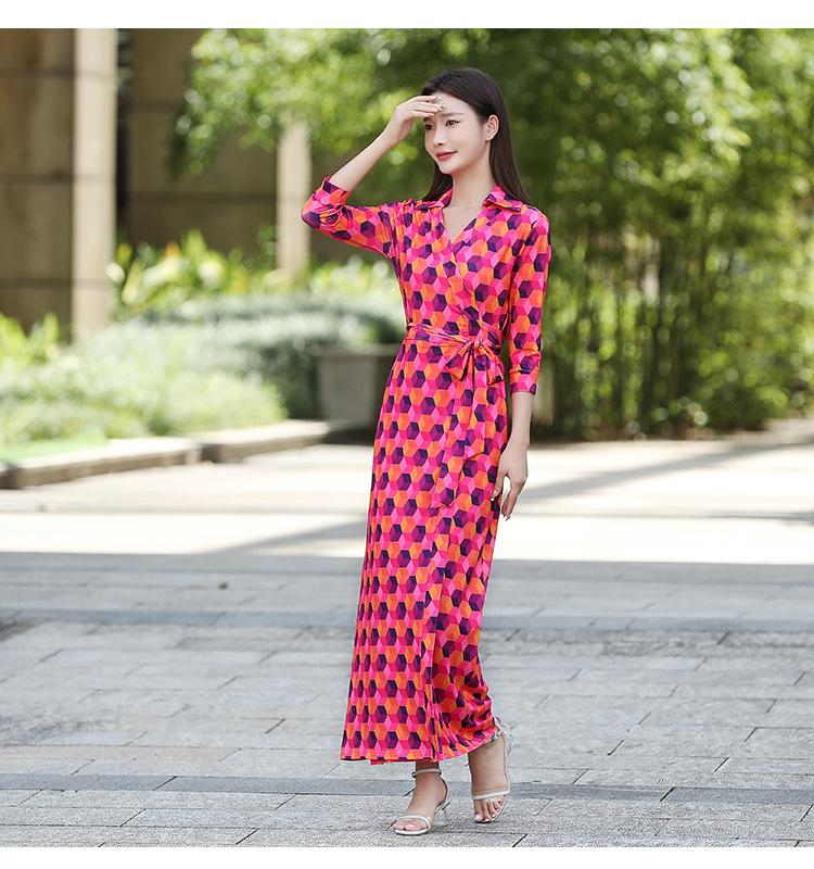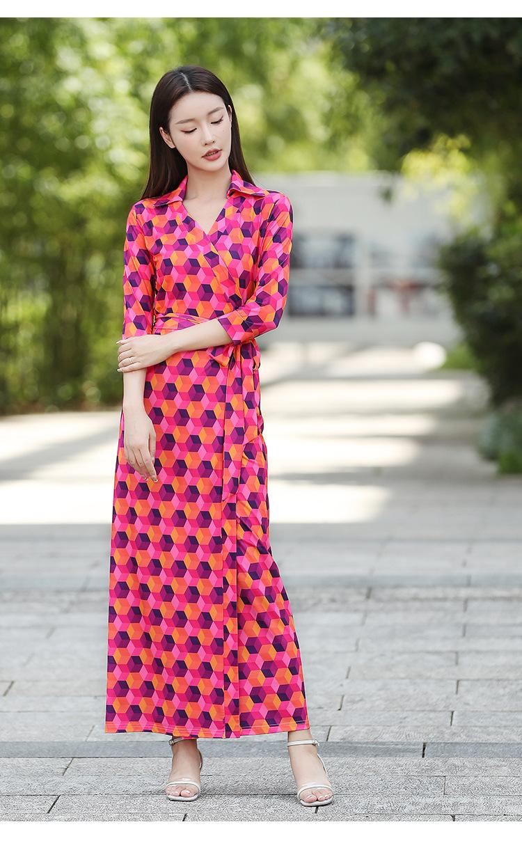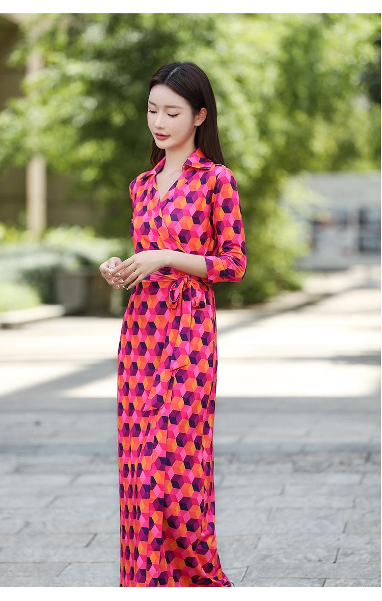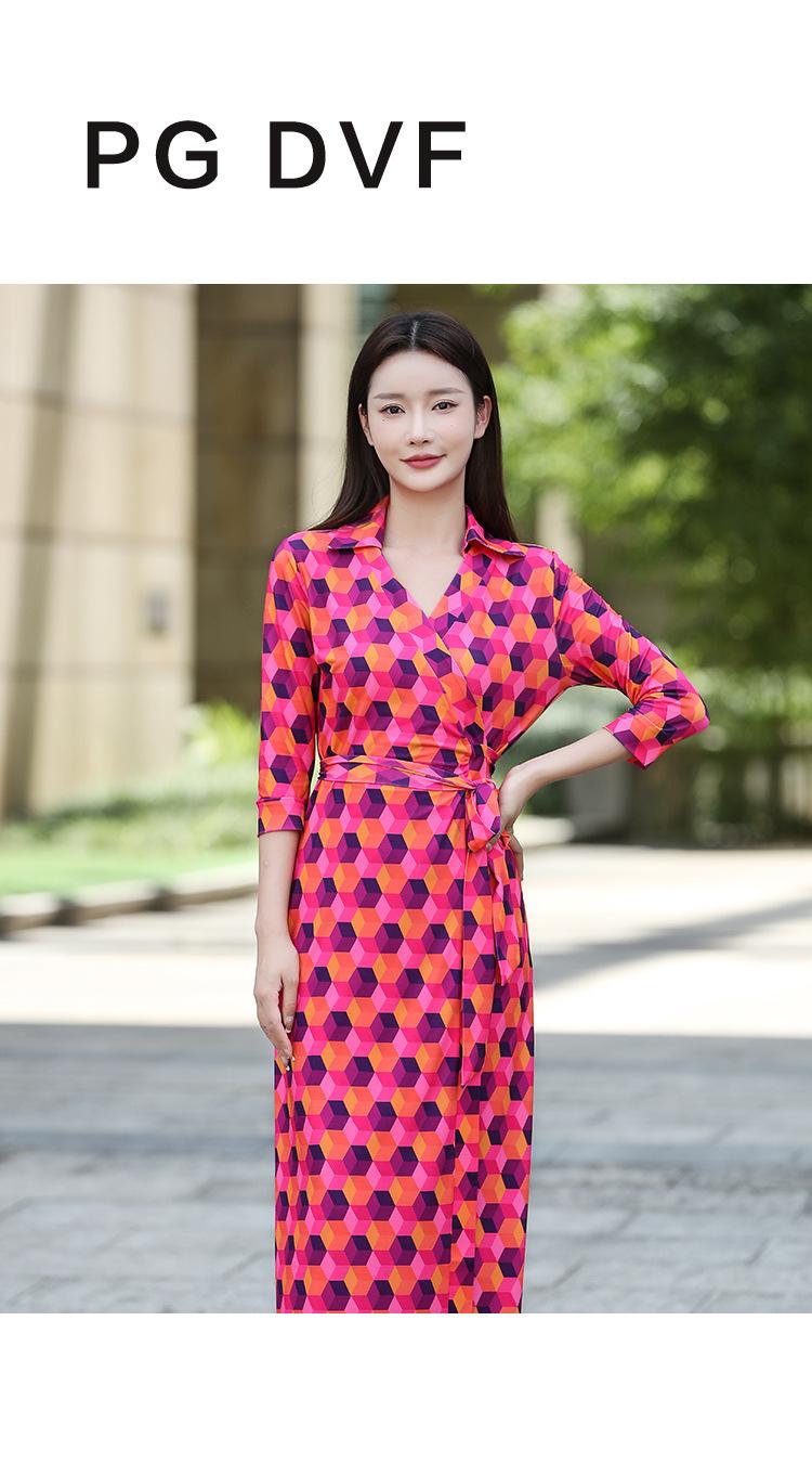 Vestido Largo Elegante Estampado con Cuello en V y Corte Ajustado para Mujer Pg Dvf Vestido Cruzado 2025 Verano Nuevo Modelo
