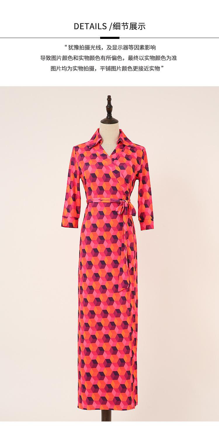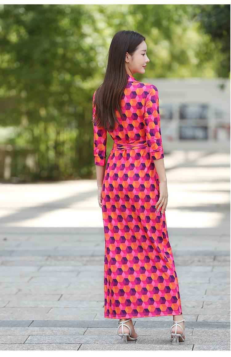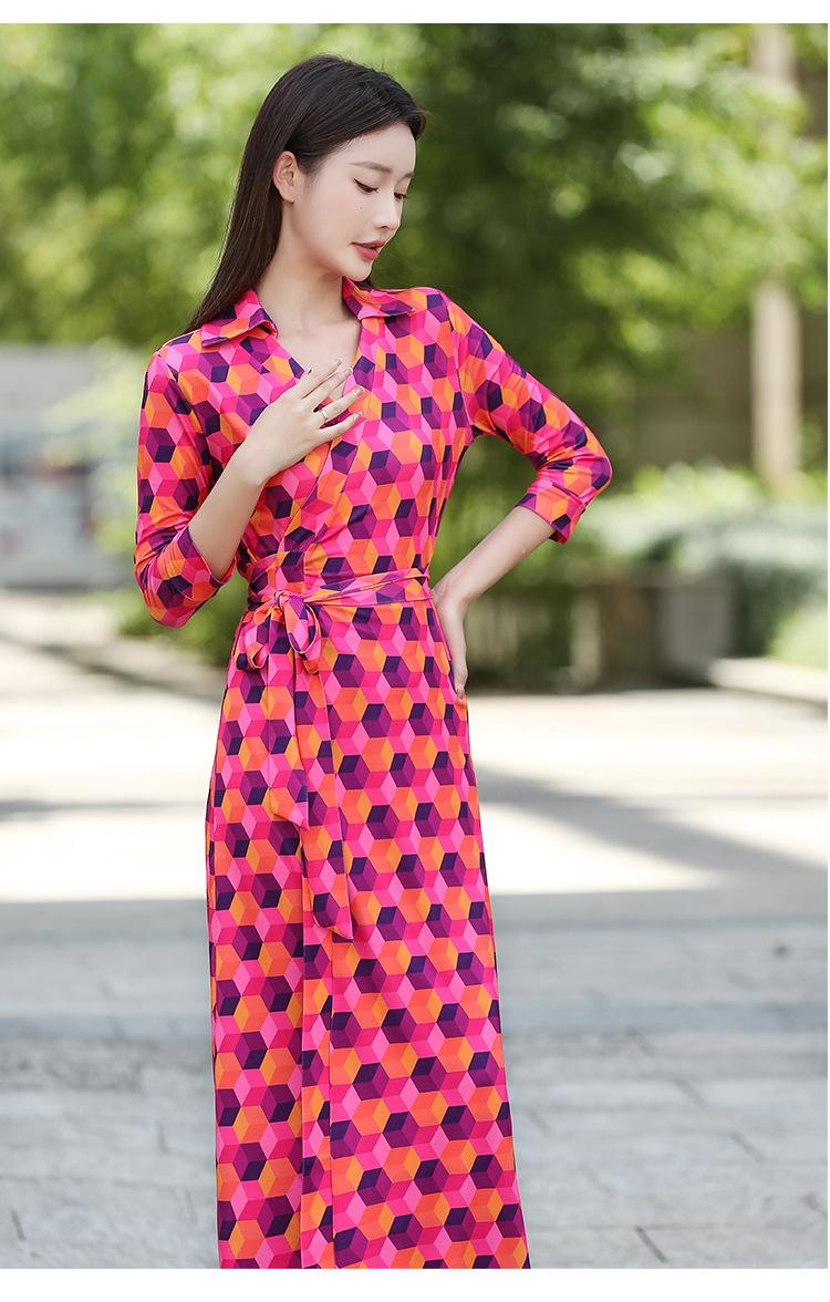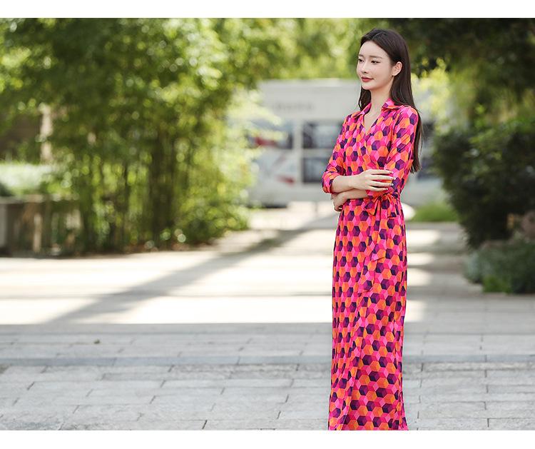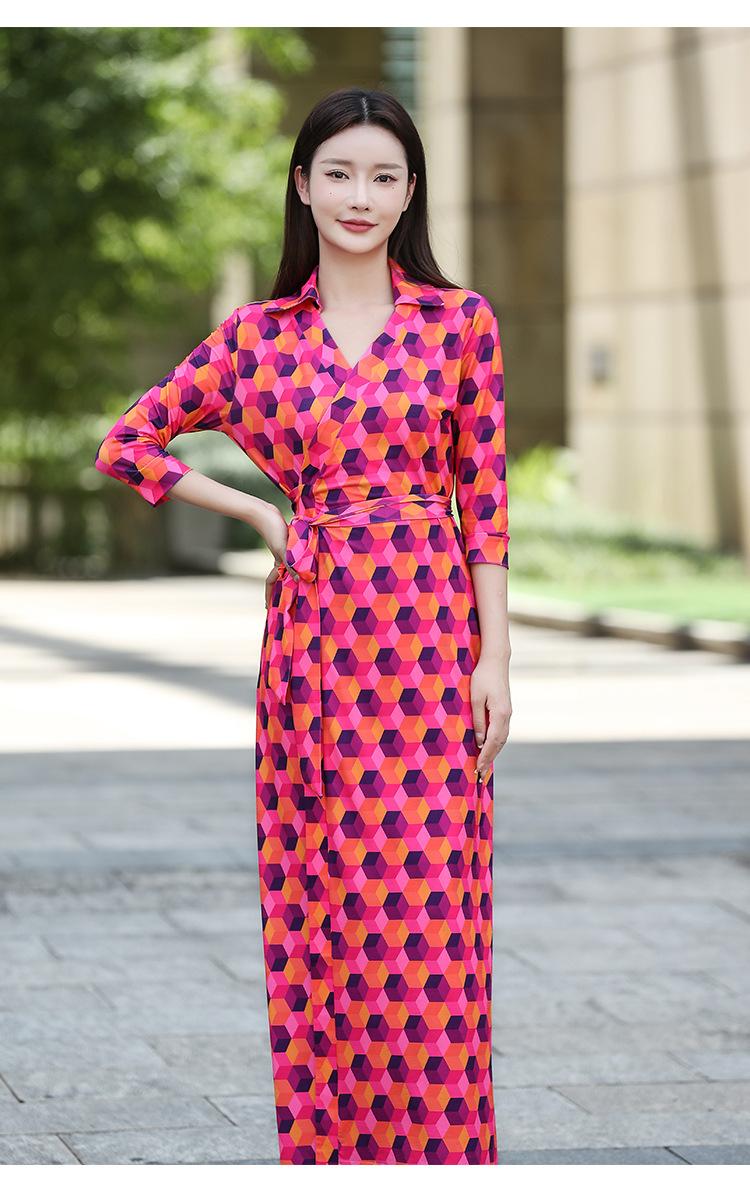 Vestido Largo Elegante Estampado con Cuello en V y Corte Ajustado para Mujer Pg Dvf Vestido Cruzado 2025 Verano Nuevo Modelo