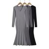 Vestido largo sexy sin forro polar para mujer, primavera y verano 2024, nuevo, escote en V profundo, cintura ajustada, adelgazante, línea A, manga larga