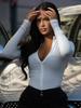 Europa y los Estados Unidos transfronterizos nueva mujer sexy caliente chica caliente diamante perspectiva hueco espalda descubierta mono de manga larga ajustado mono de verano