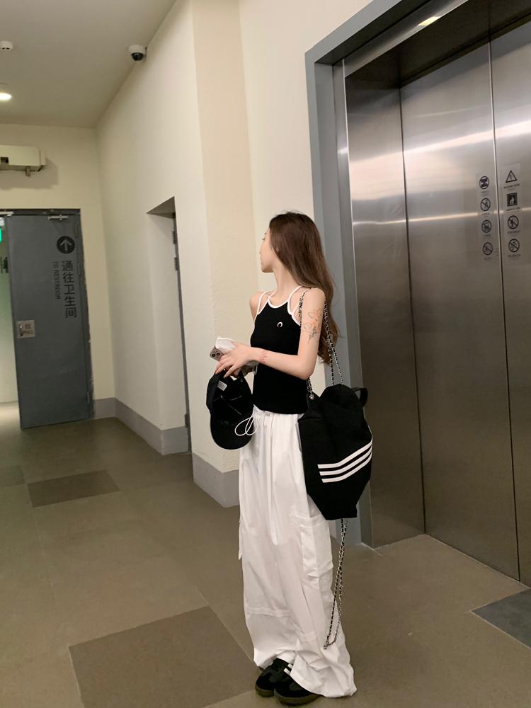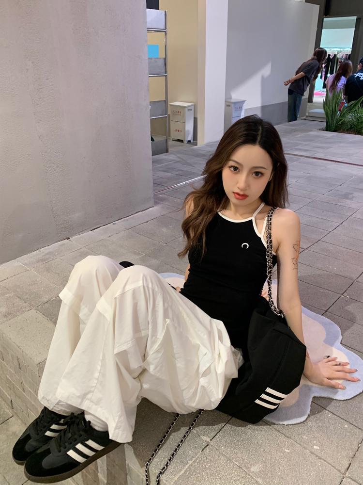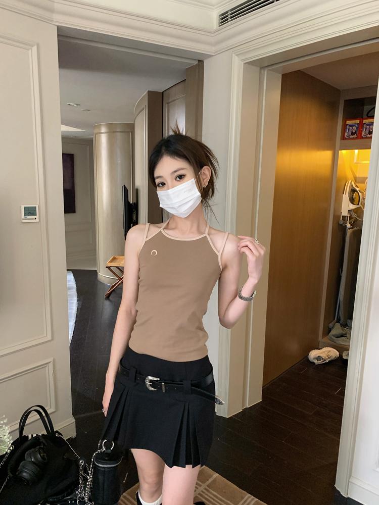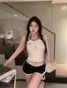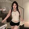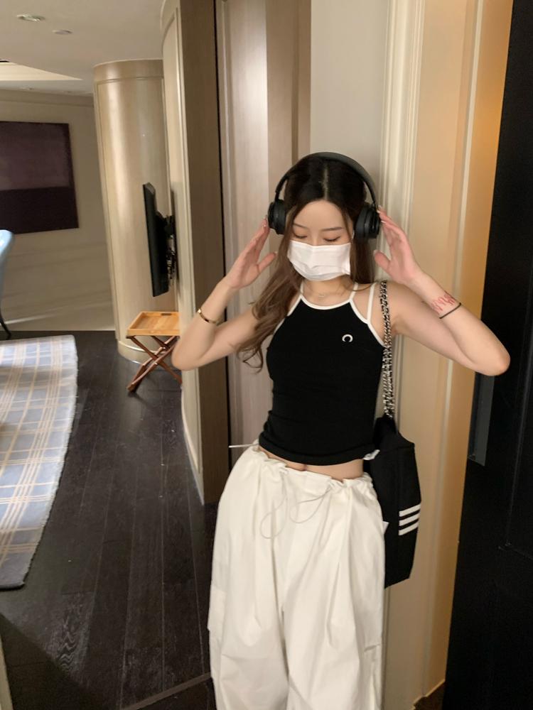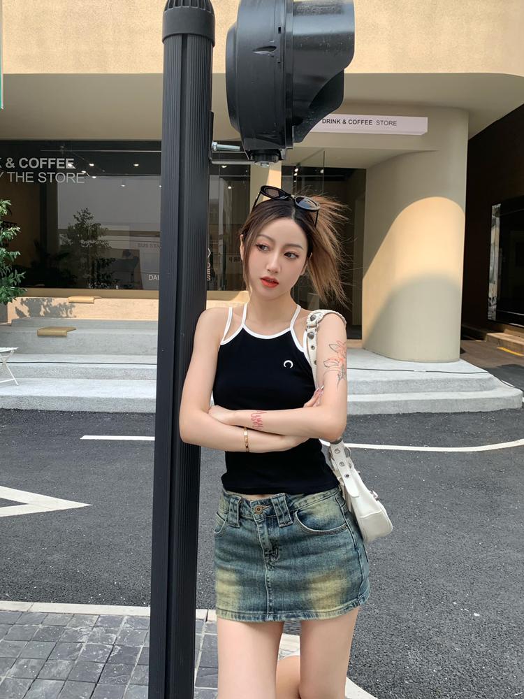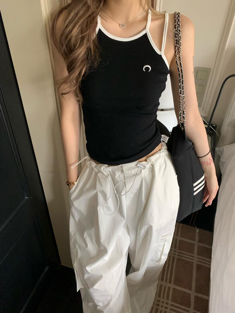 Camisola bordada con luna para mujer verano 2023, fina, nicho, sexy, elástica, ajustada, para chica sexy, top corto sin mangas