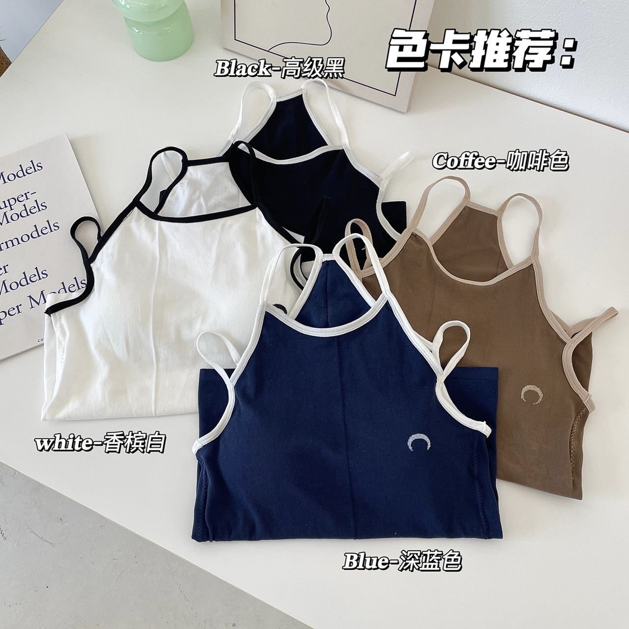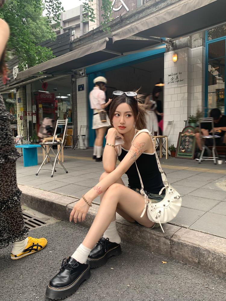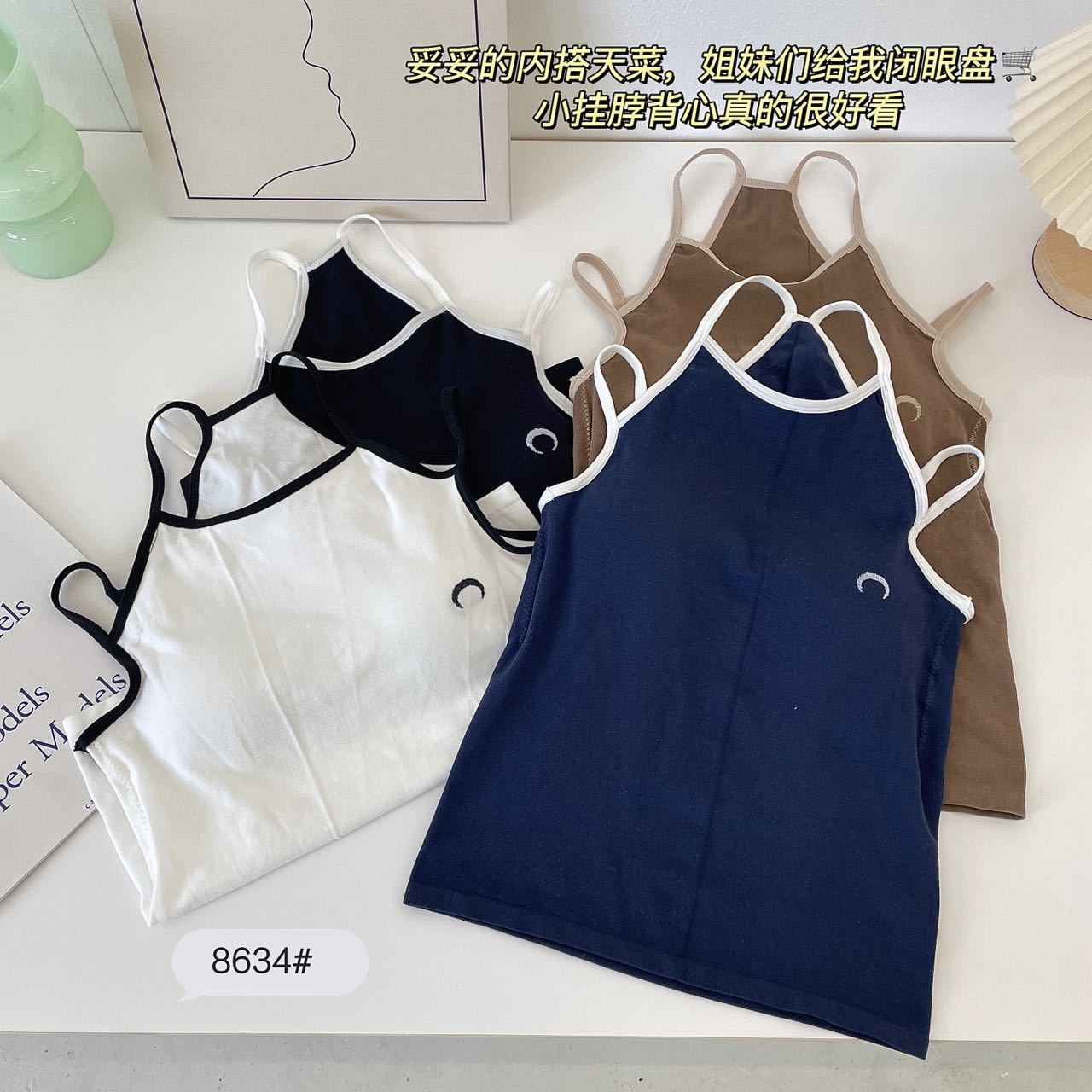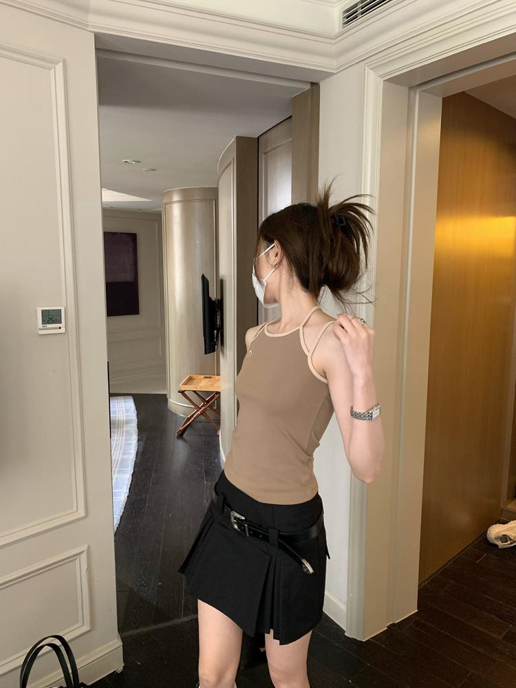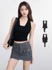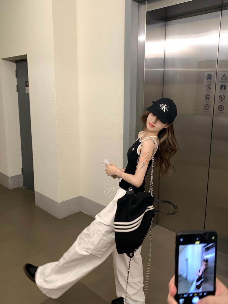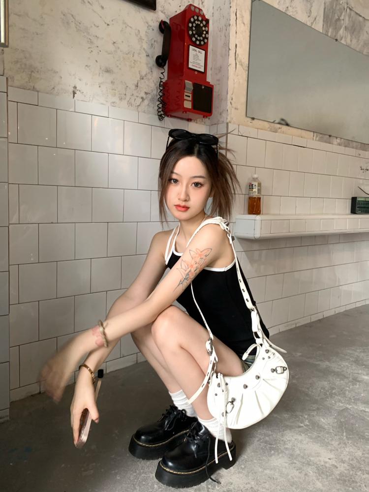 Camisola bordada con luna para mujer verano 2023, fina, nicho, sexy, elástica, ajustada, para chica sexy, top corto sin mangas
