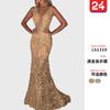 Vestido de Lentejuelas Estilo Retro Europeo y Americano para Mujer 2025 de un Hombro con Cuello en V y Manga de Plumas Vestido de Noche