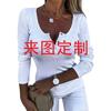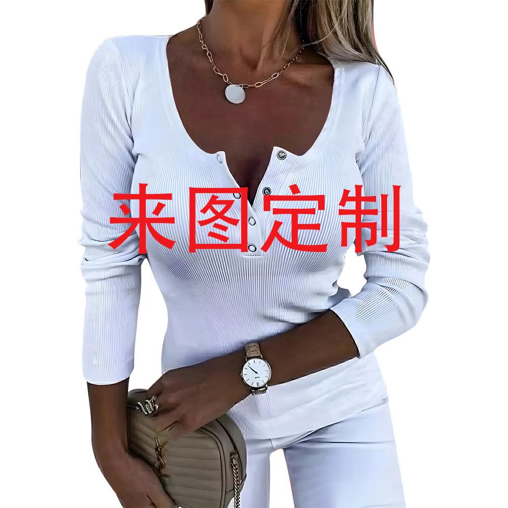 Amazon Europa y Estados Unidos transfronterizo primavera y otoño nuevo de mujer impresión 3D manga larga jersey ajustado botón camiseta chaqueta para figura