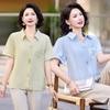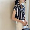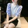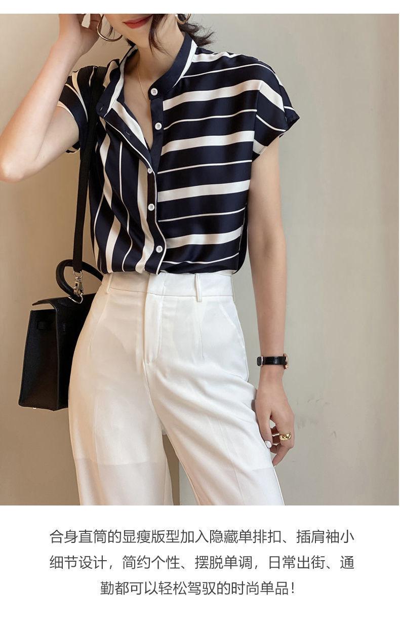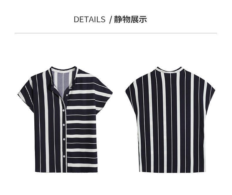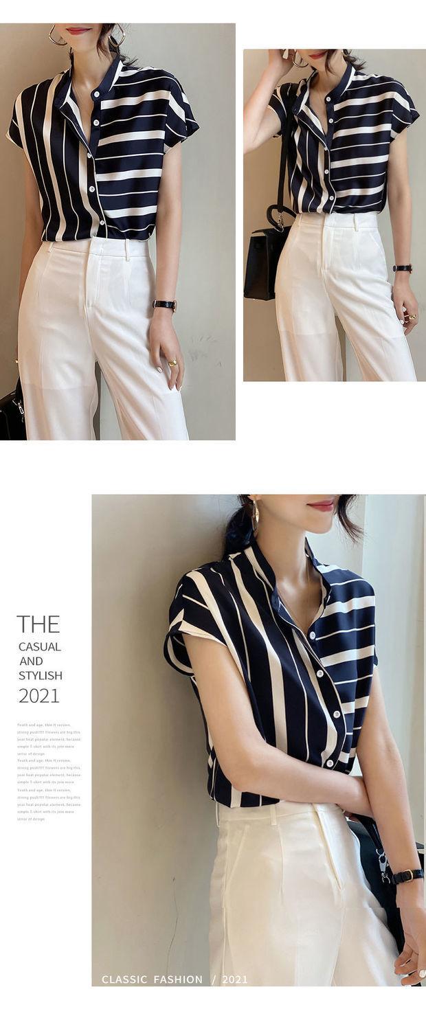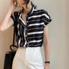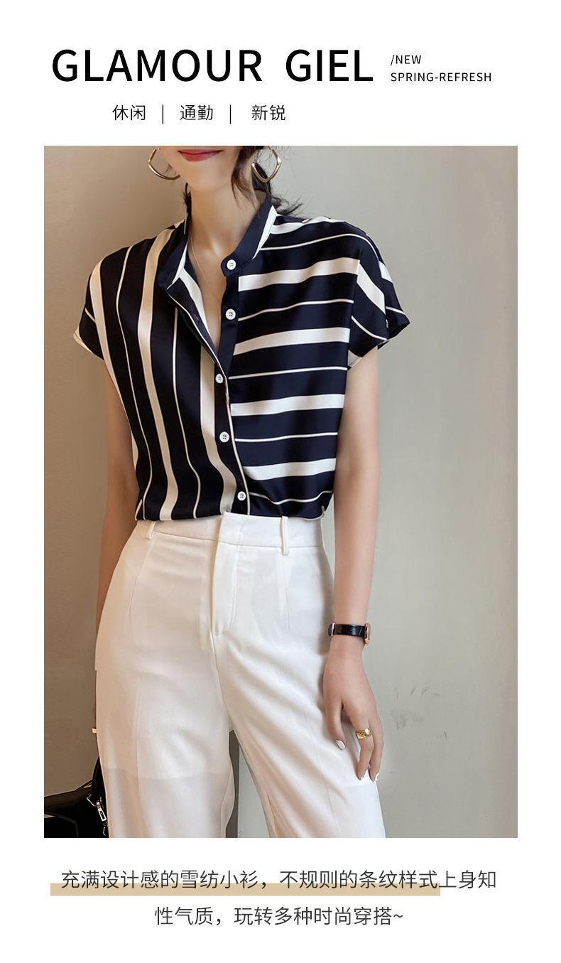 Camisa antiedad de gasa de manga corta para mujer, elegante, combinable con todo, estilo occidental, con rayas irregulares.