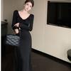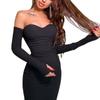 CC22282 Primavera Nueva Moda Mujer Estilo Sexy Fuera del Hombro Tejido Manga Larga Vestido Tubo Top Mujer