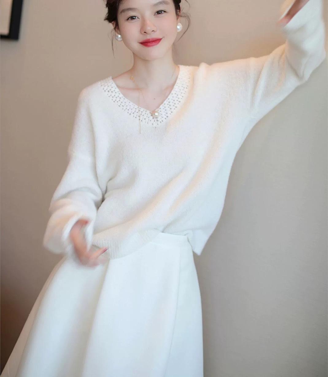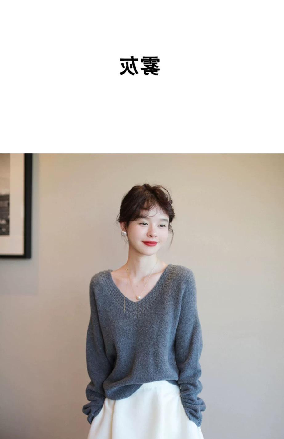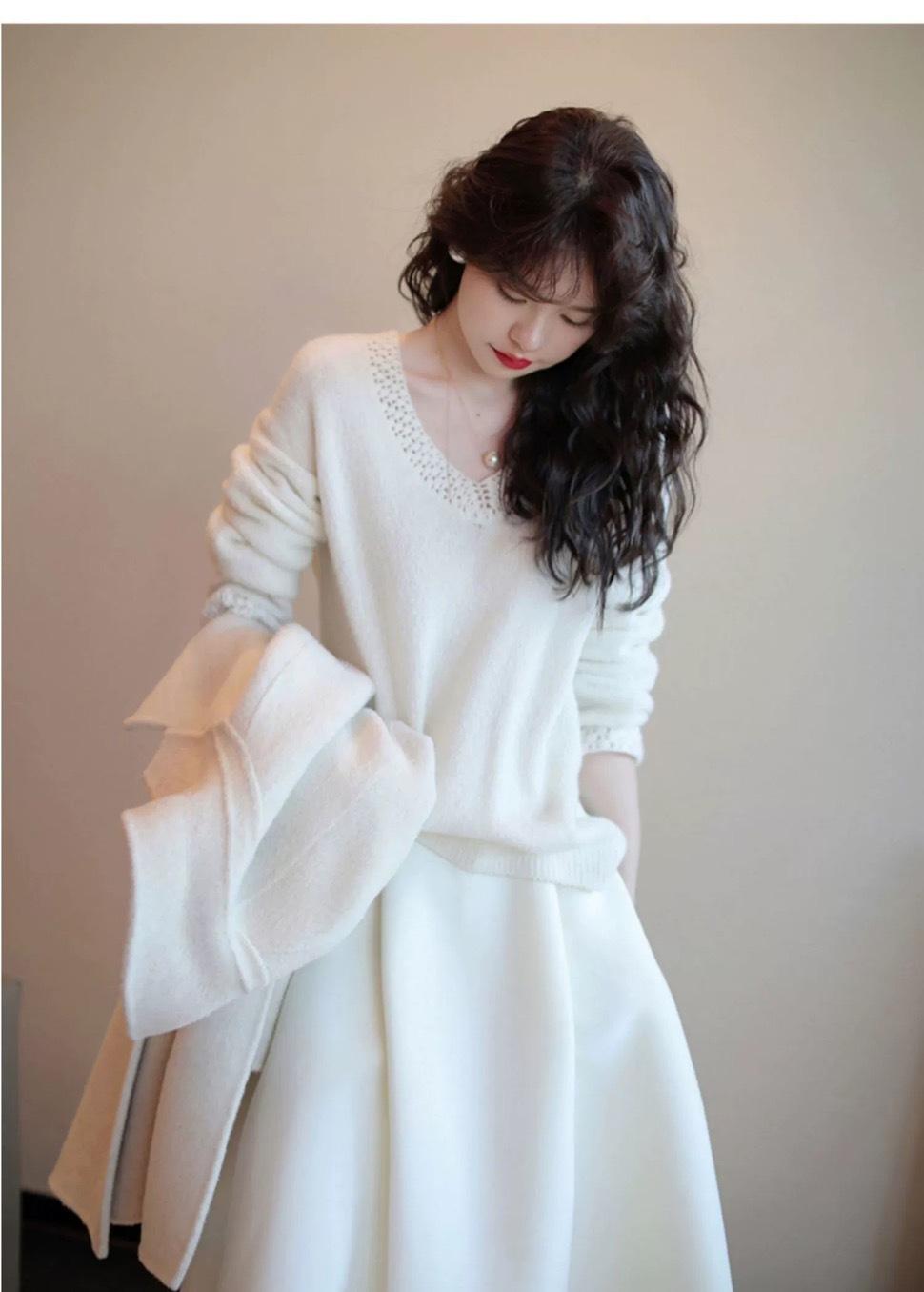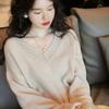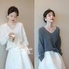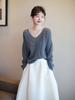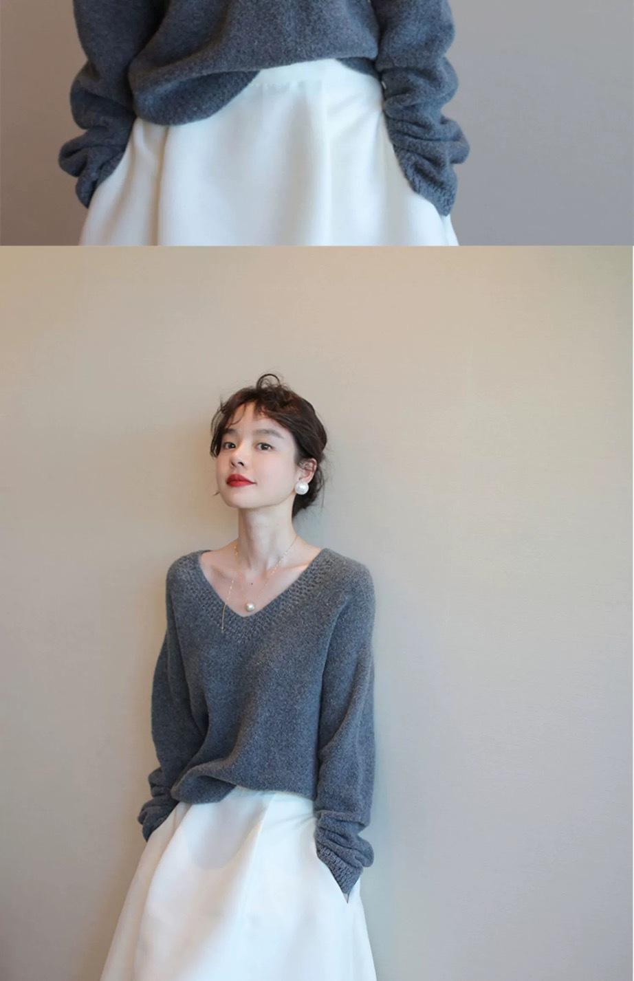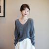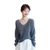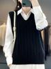 Suéter ajustado de lana pura con cuello en V y manga larga para mujer, estilo coreano, otoño e invierno, 2023