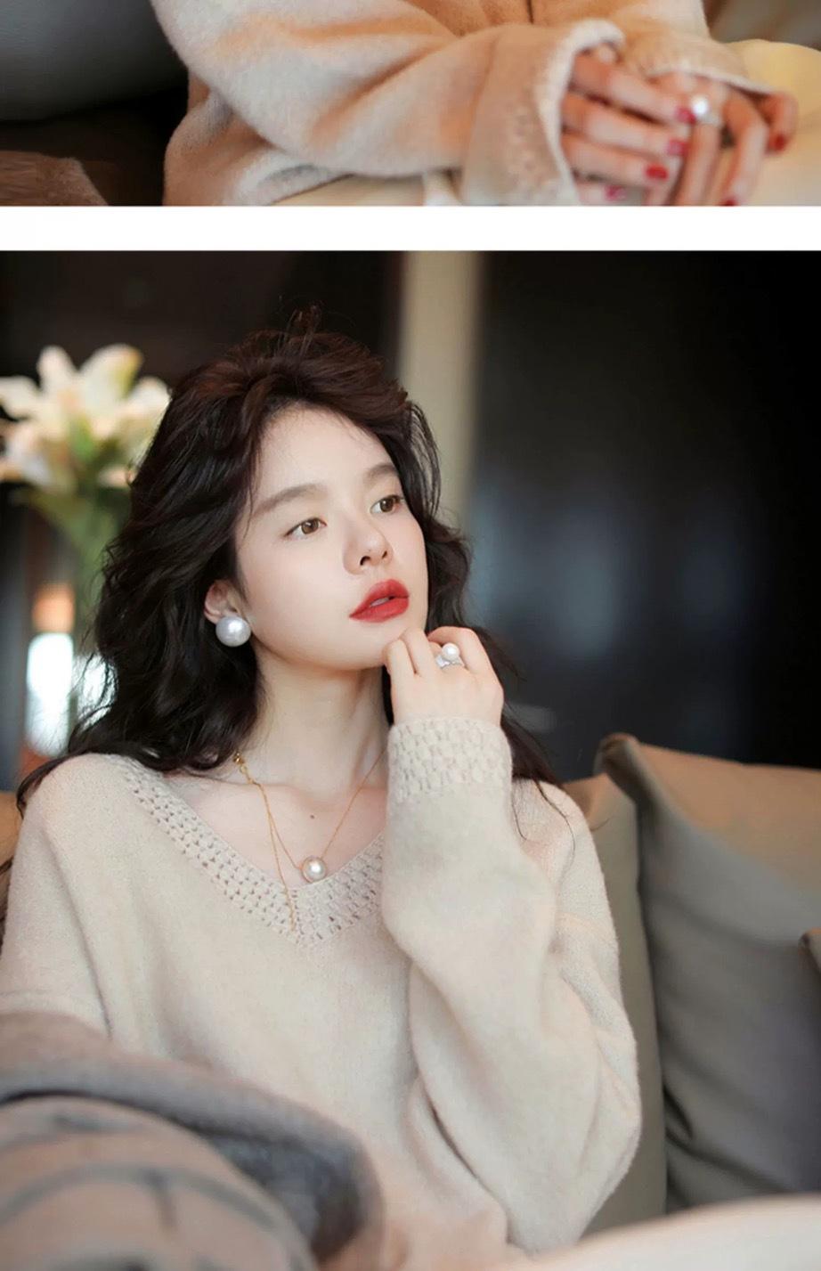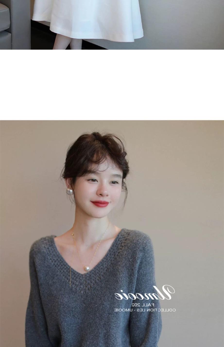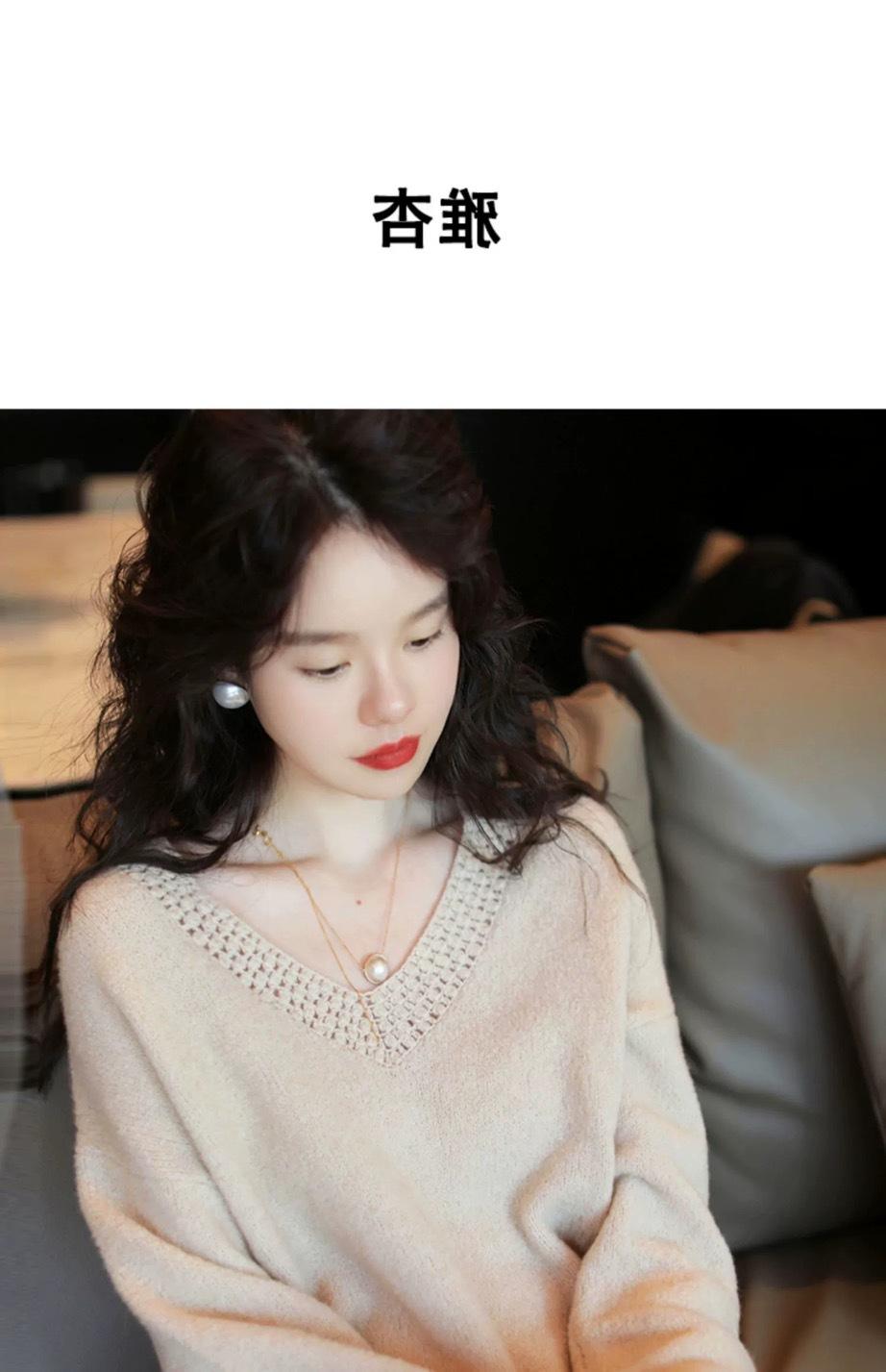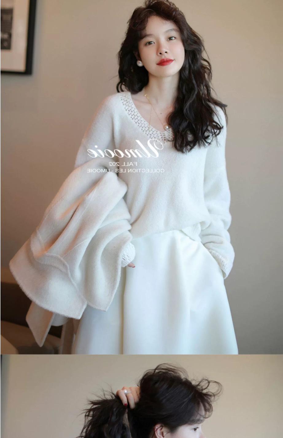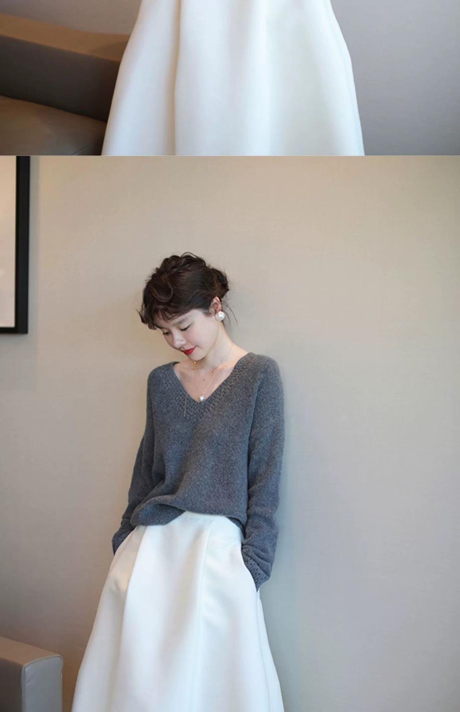 Suéter ajustado de lana pura con cuello en V y manga larga para mujer, estilo coreano, otoño e invierno, 2023