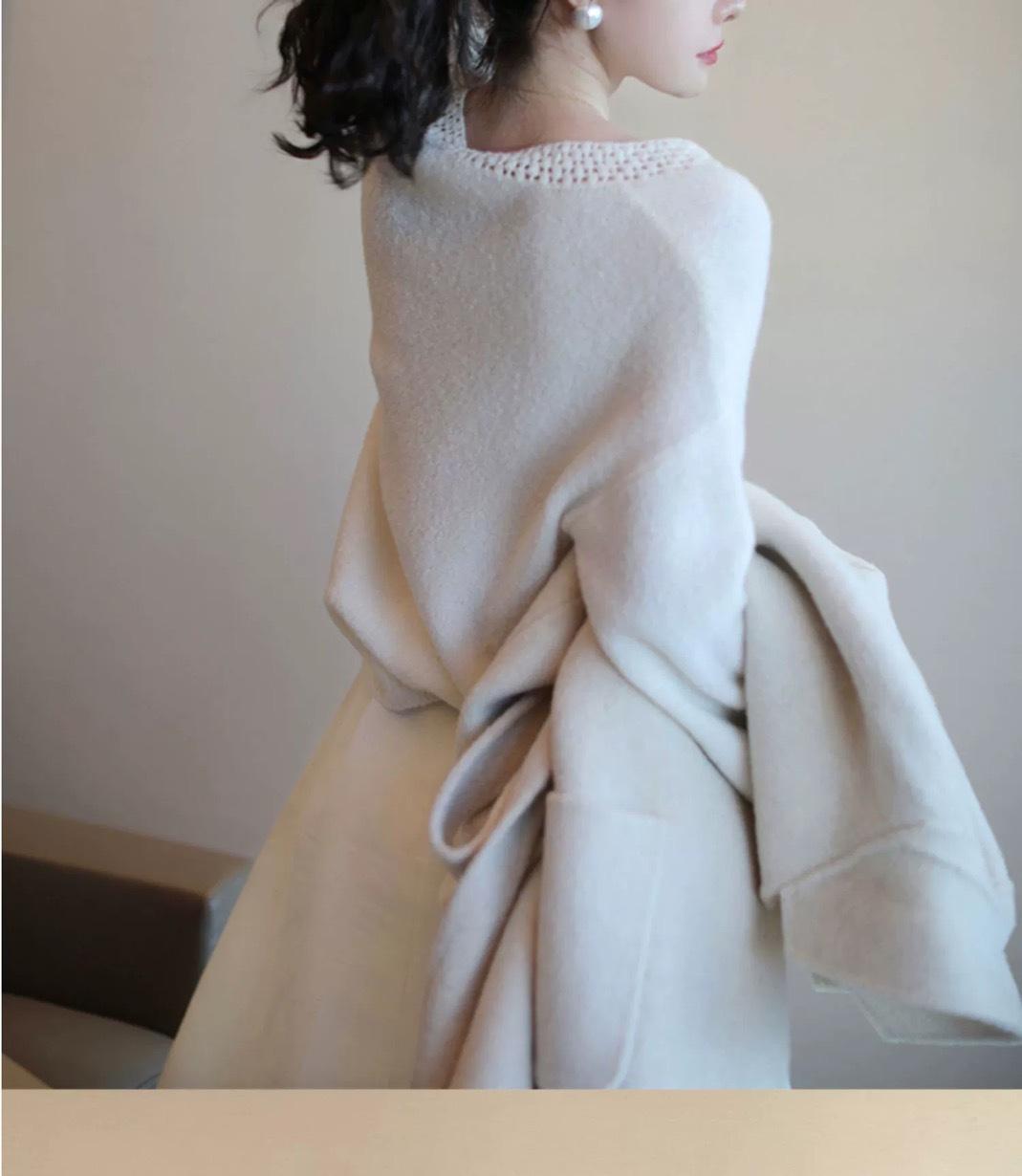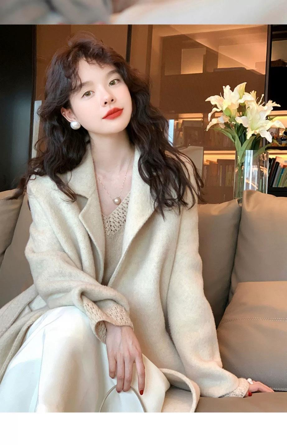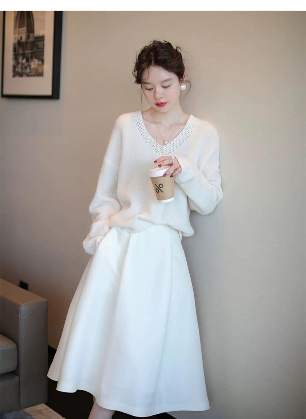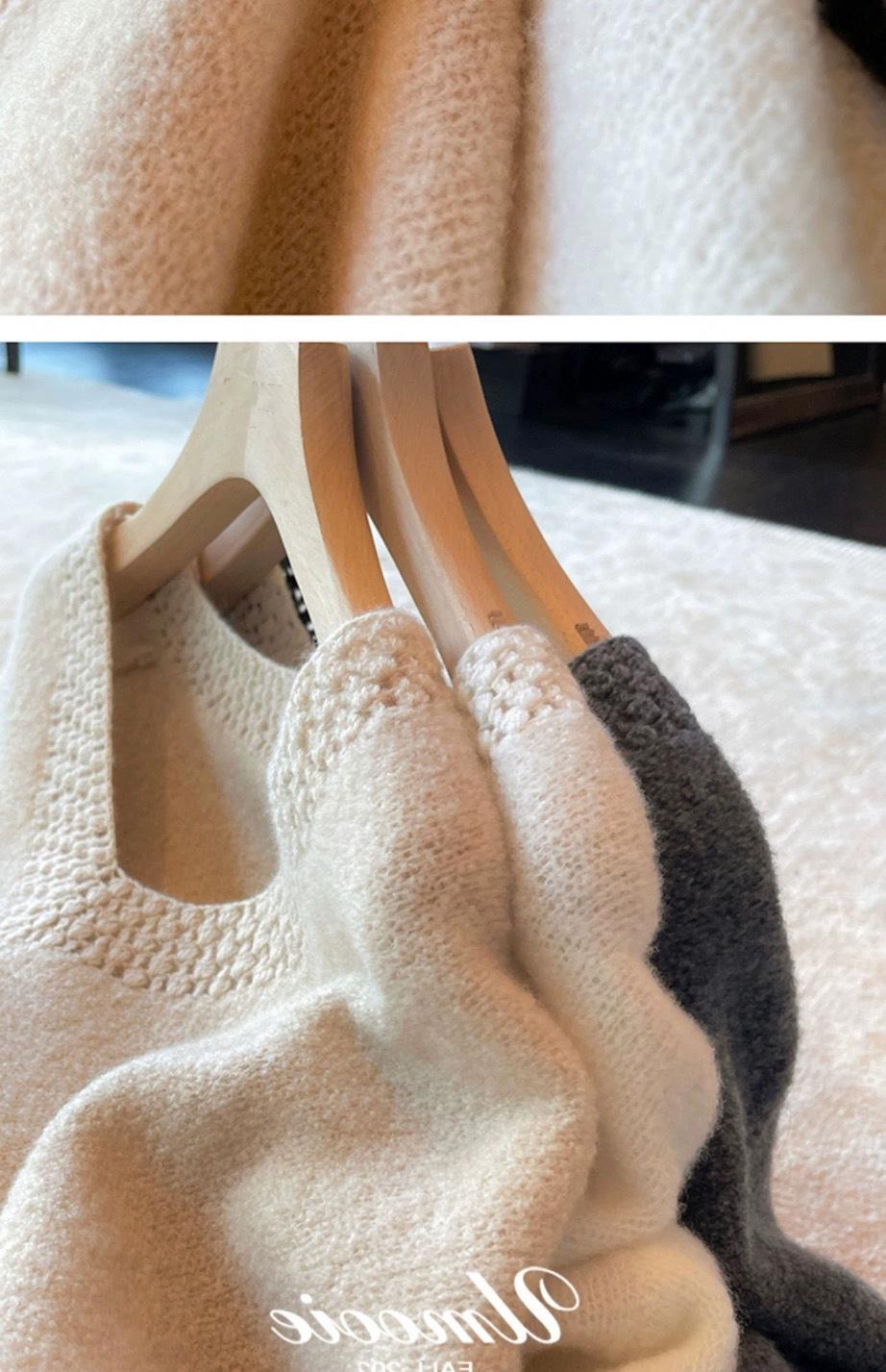Suéter ajustado de lana pura con cuello en V y manga larga para mujer, estilo coreano, otoño e invierno, 2023