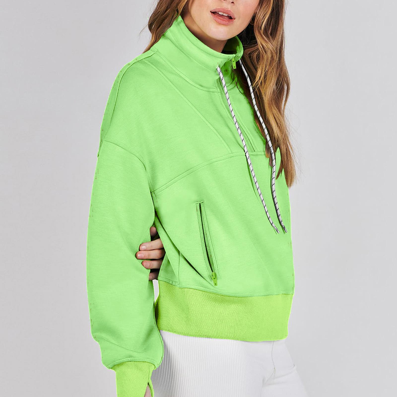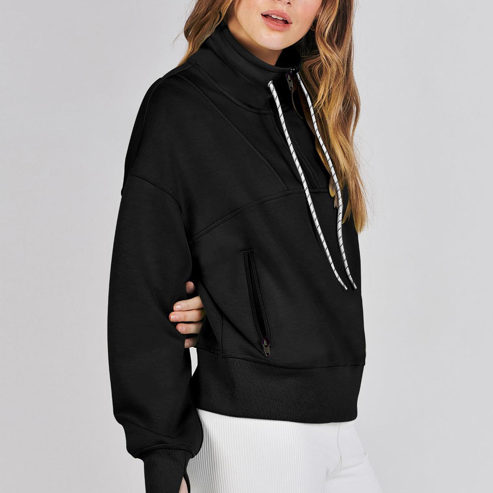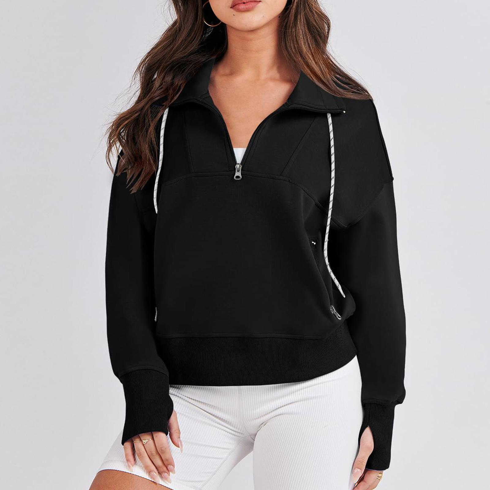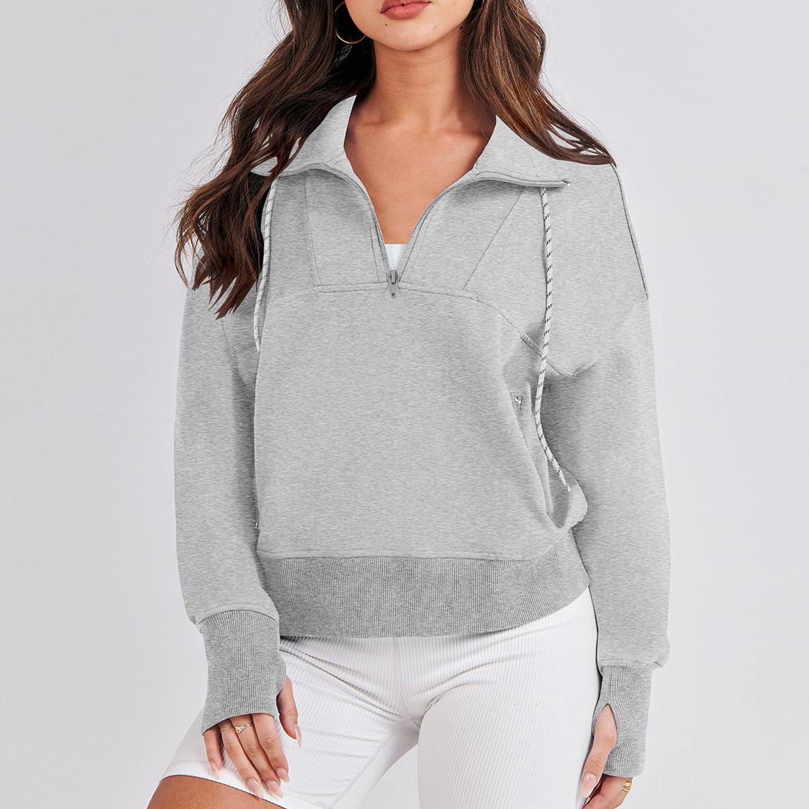 Suéter de color sólido con cuello de otoño e invierno de 2023, con bolsillo y cremallera, informal, de manga larga y corta con agujero para el pulgar para mujer